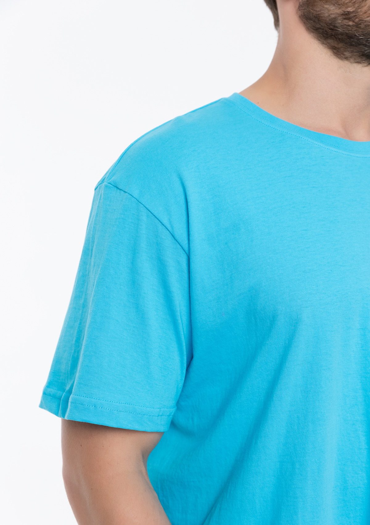 Футболка выполнена из гладкого трикотажного полотна – кулирная гладь. Материал обладает хорошей эластичностью и прочностью, отлично пропускает воздух и впитывает влагу.