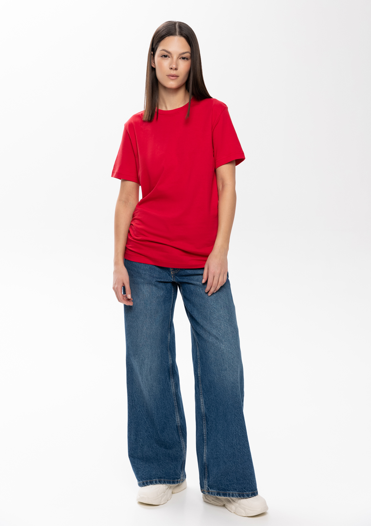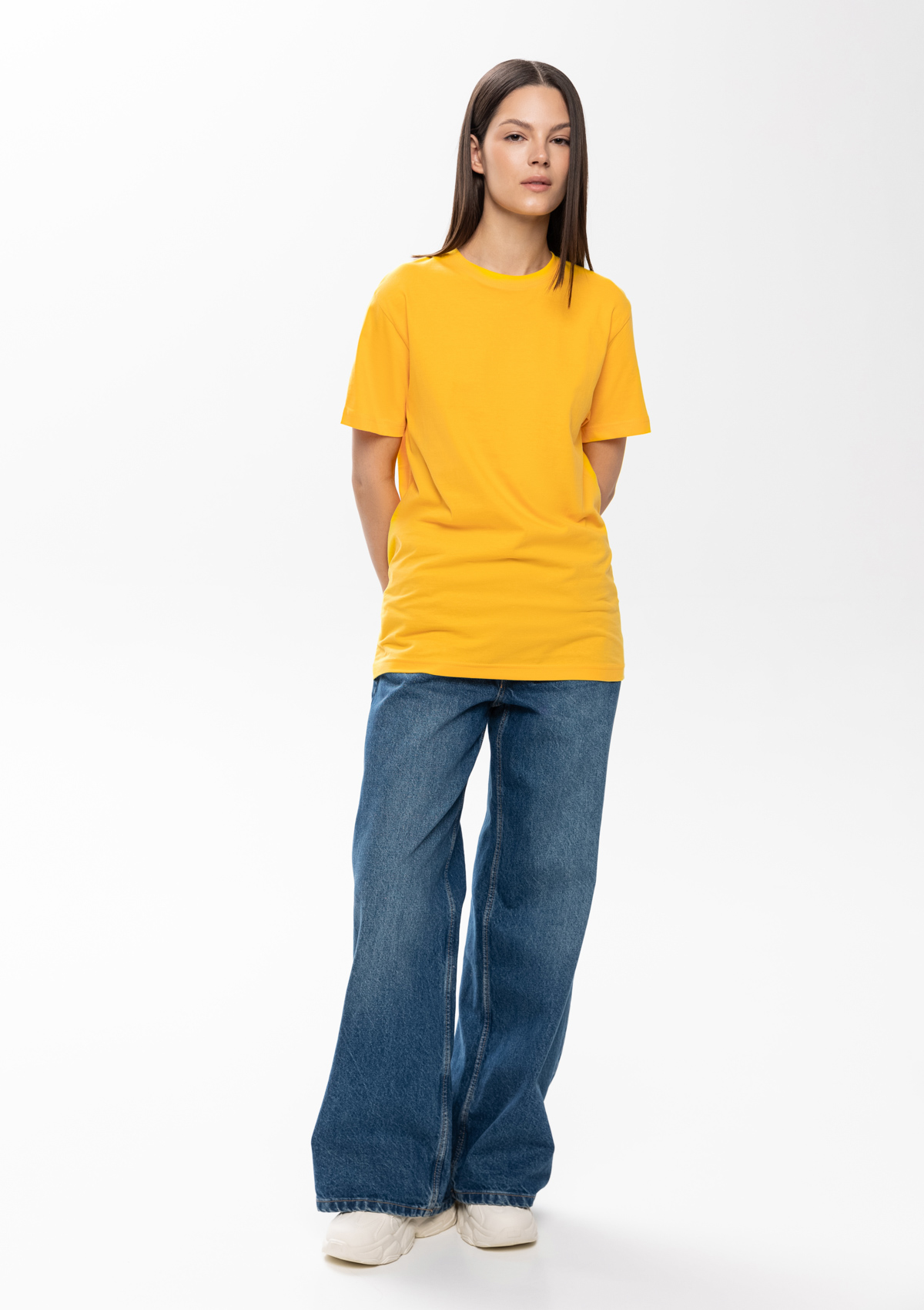 Классическая футболка прямого кроя с округлым воротом и втачным рукавом. Изделие не имеет бокового шва, что открывает новые возможности для реализации ваших креативных решений.