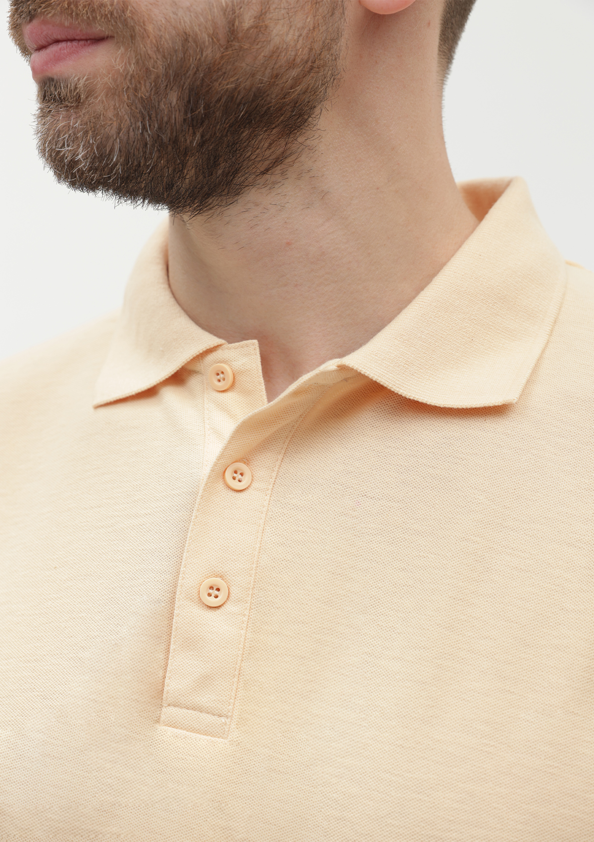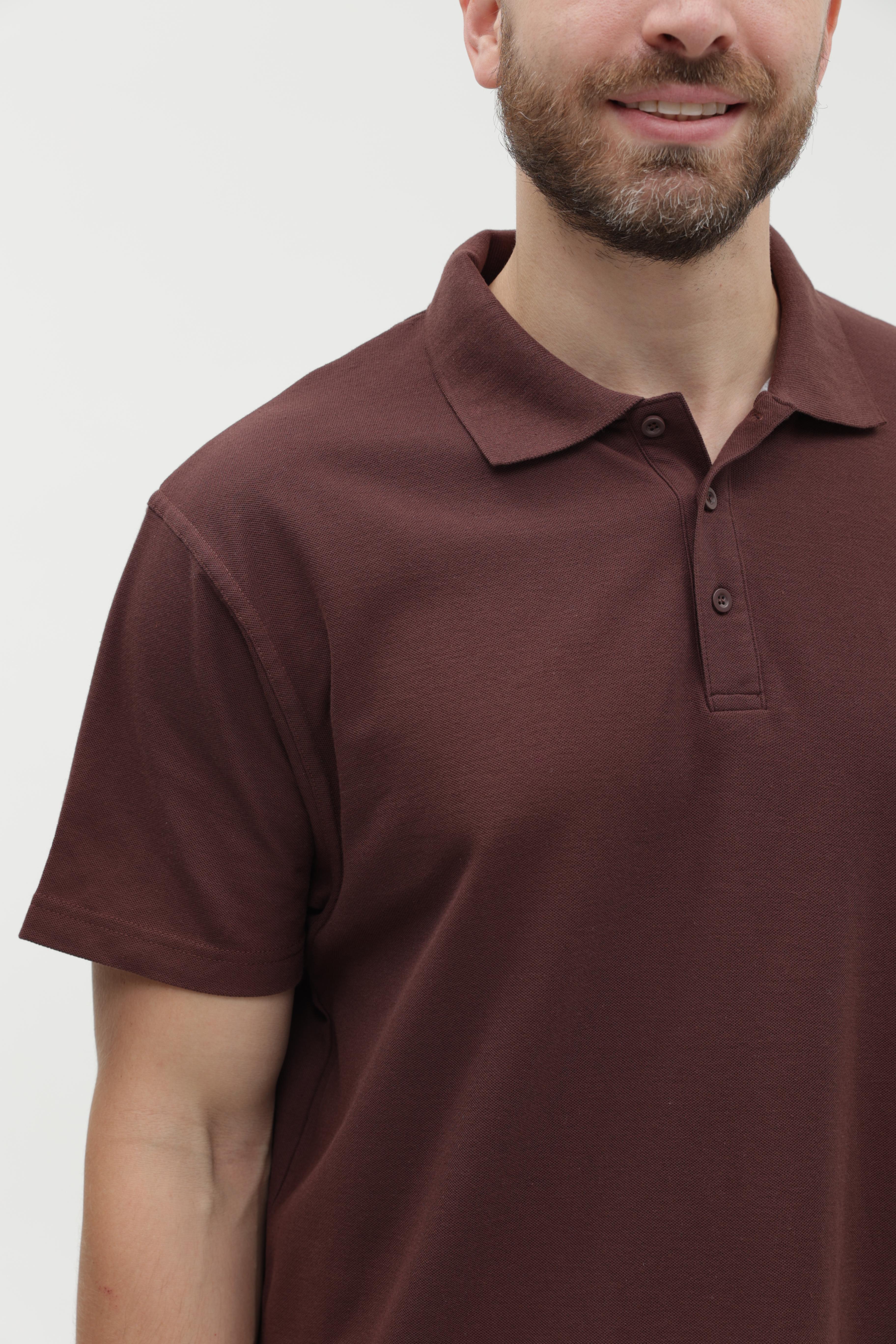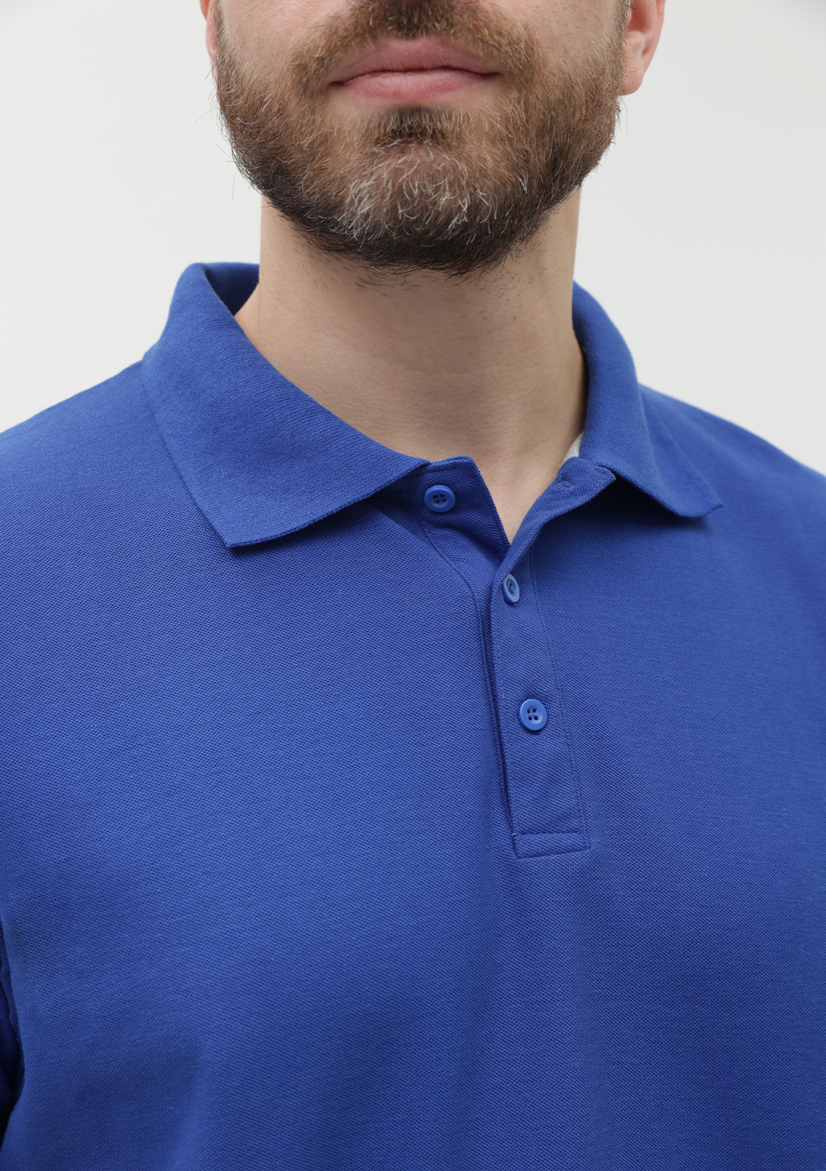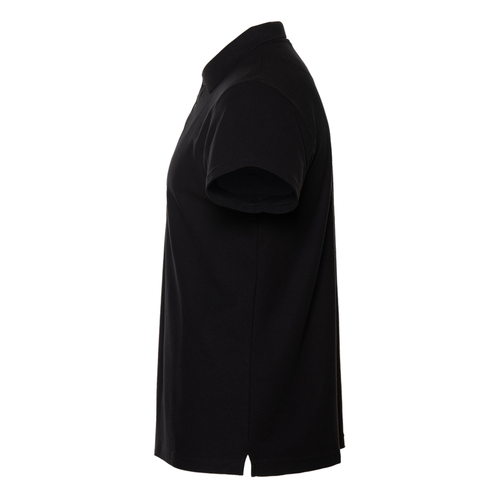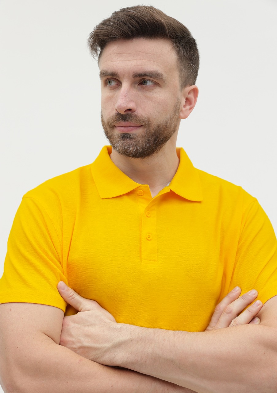 Поло выполнено из фактурной смесового ткани (65% хлопок, 35% полиэстер), благодаря чему изделие хорошо пропускает воздух и практически не мнется.