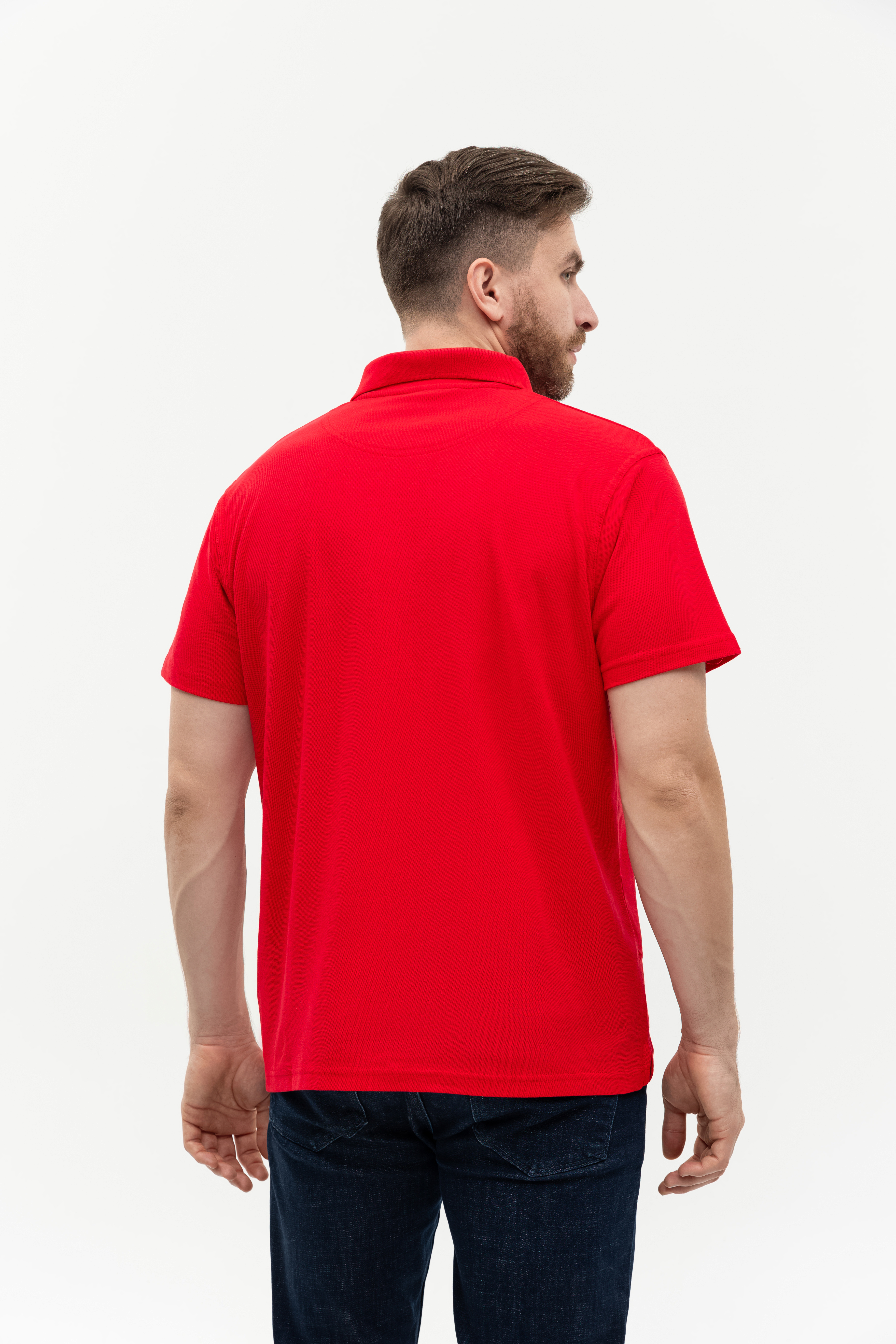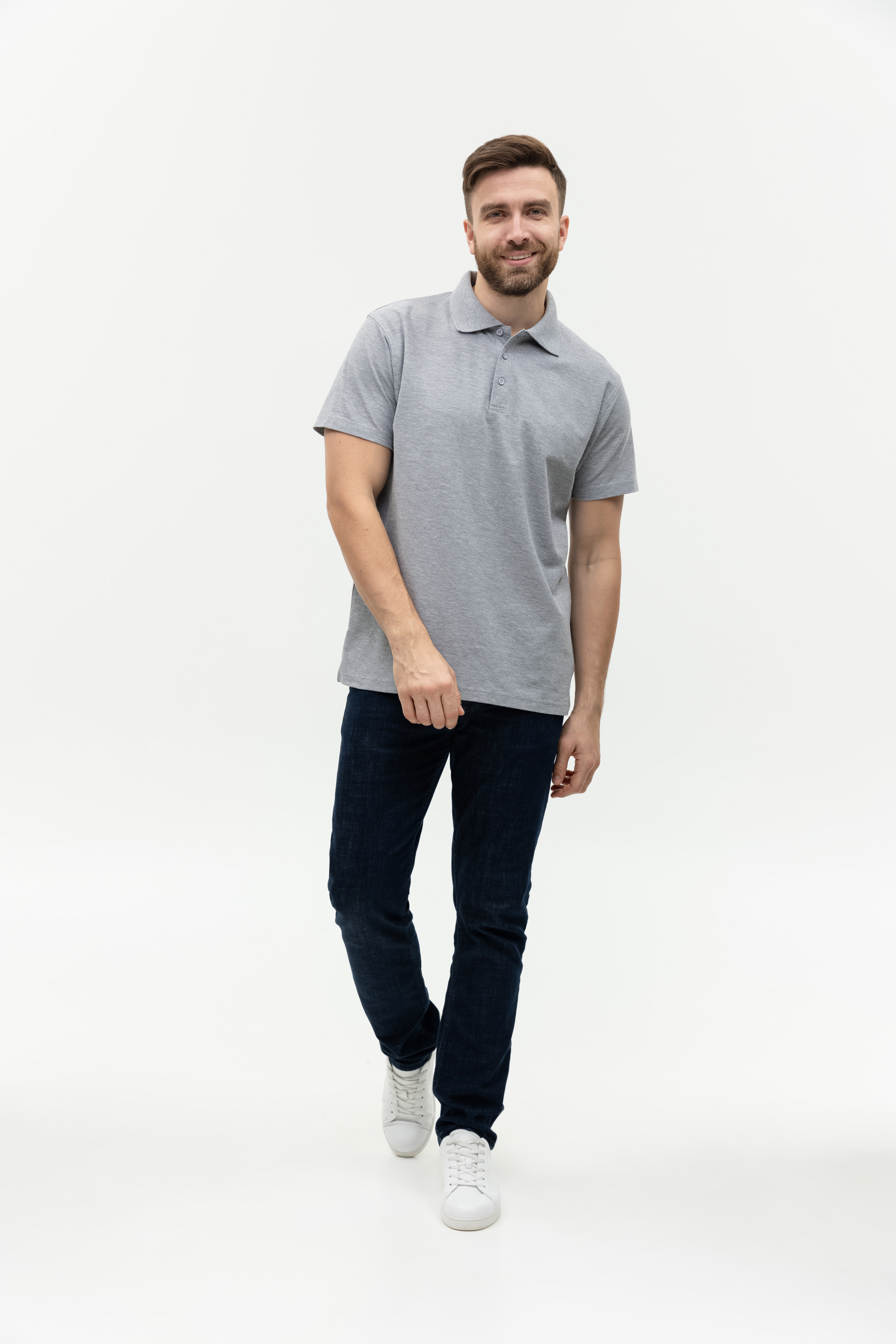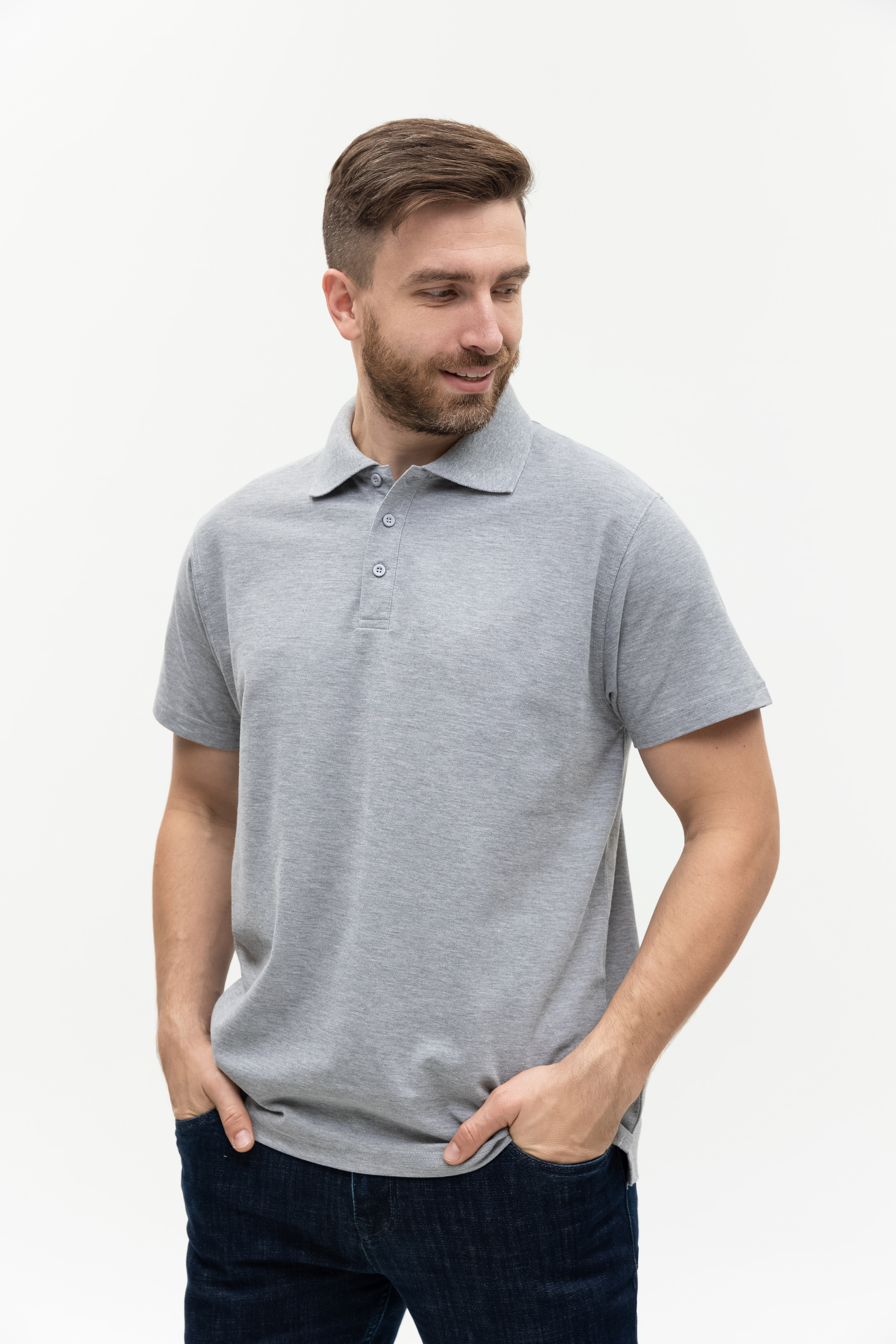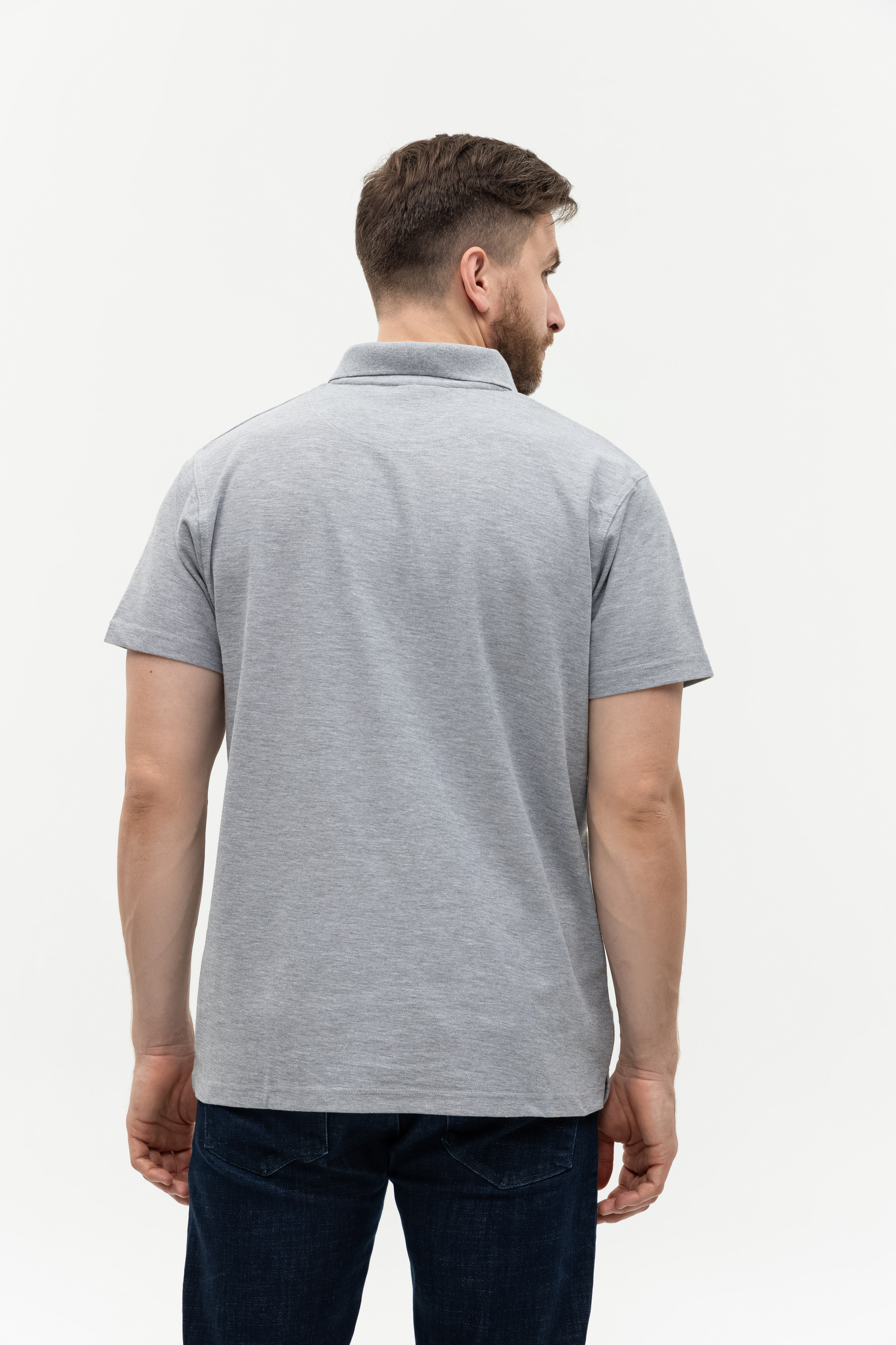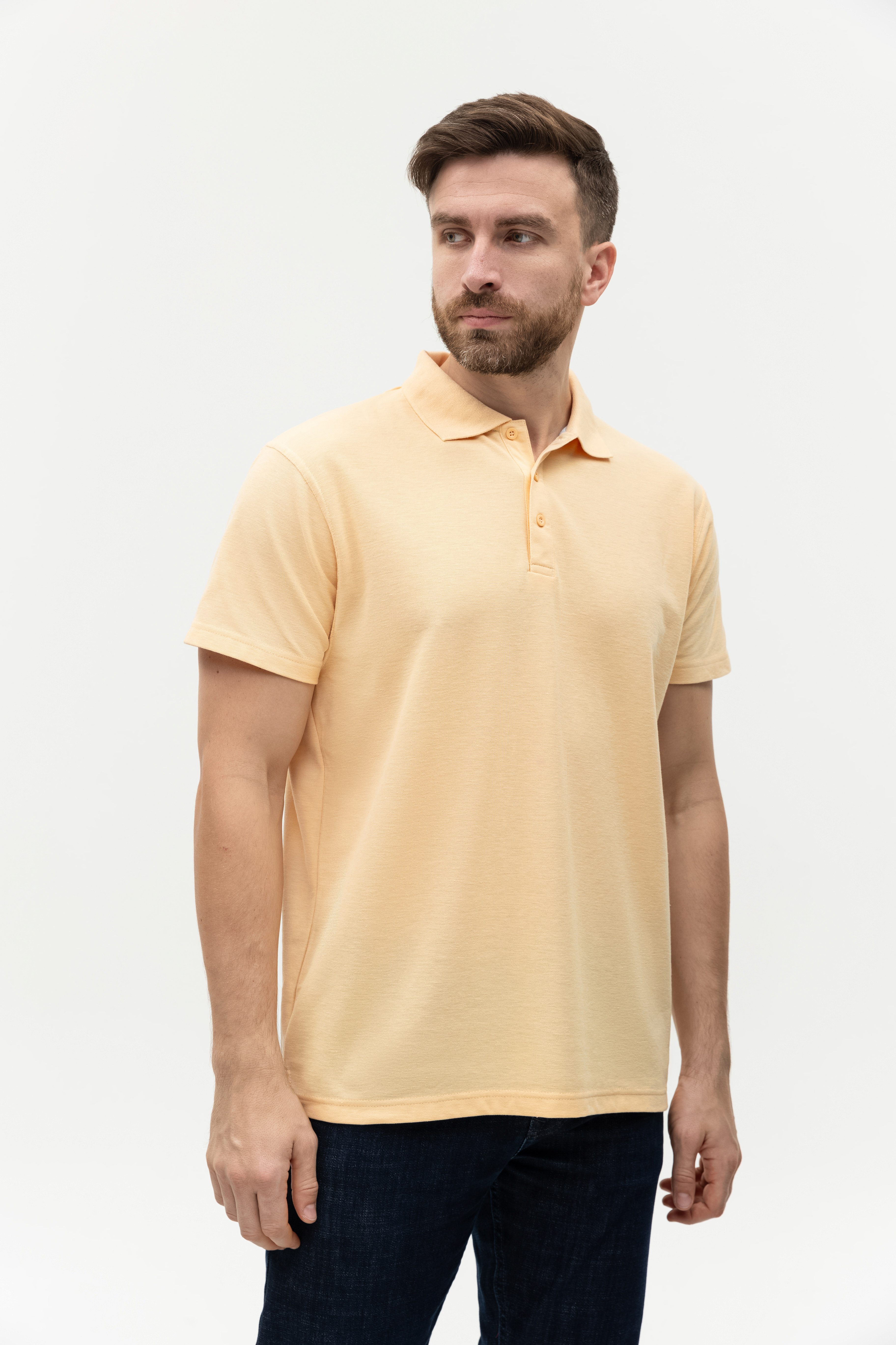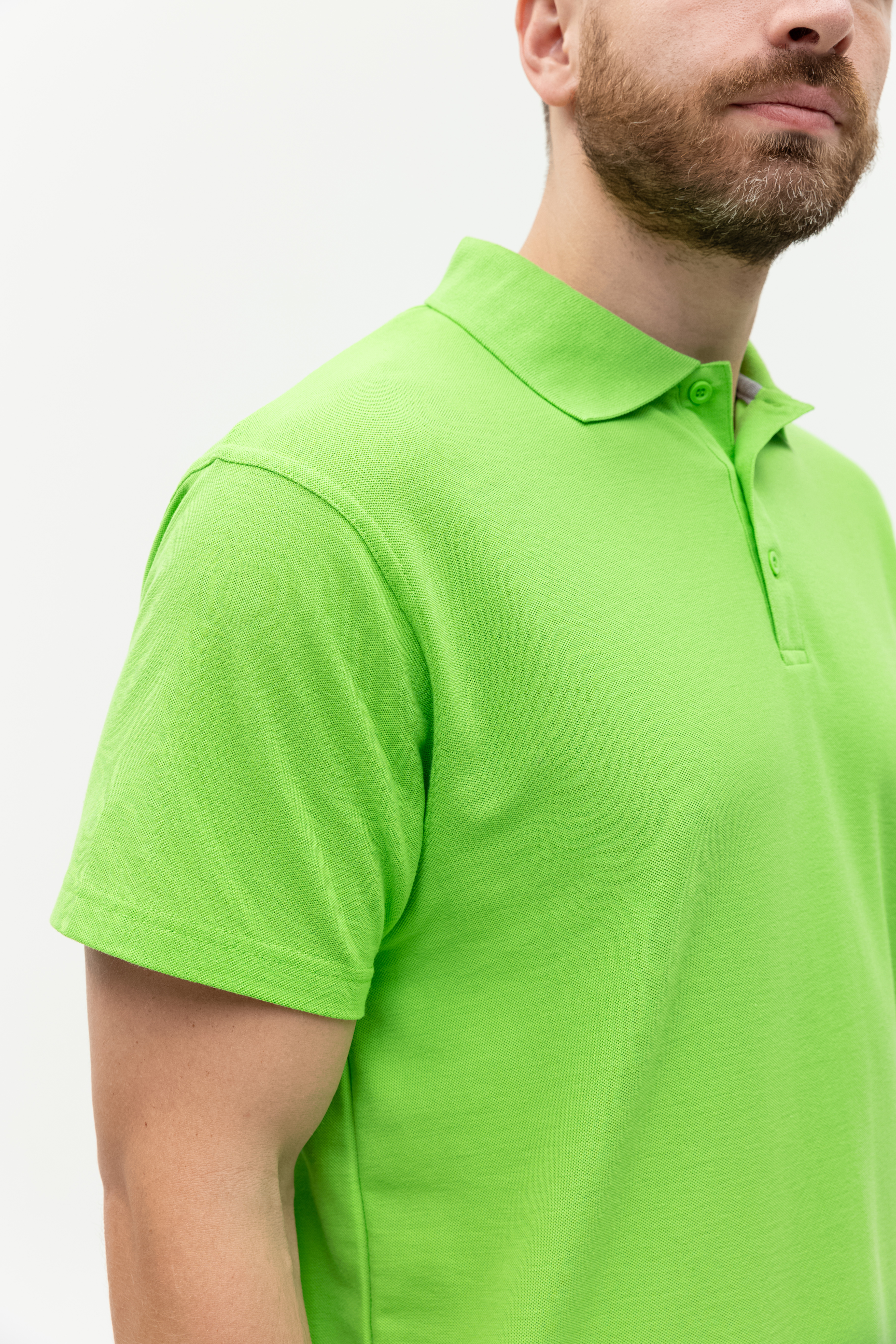 Поло выполнено из фактурной смесового ткани (65% хлопок, 35% полиэстер), благодаря чему изделие хорошо пропускает воздух и практически не мнется.