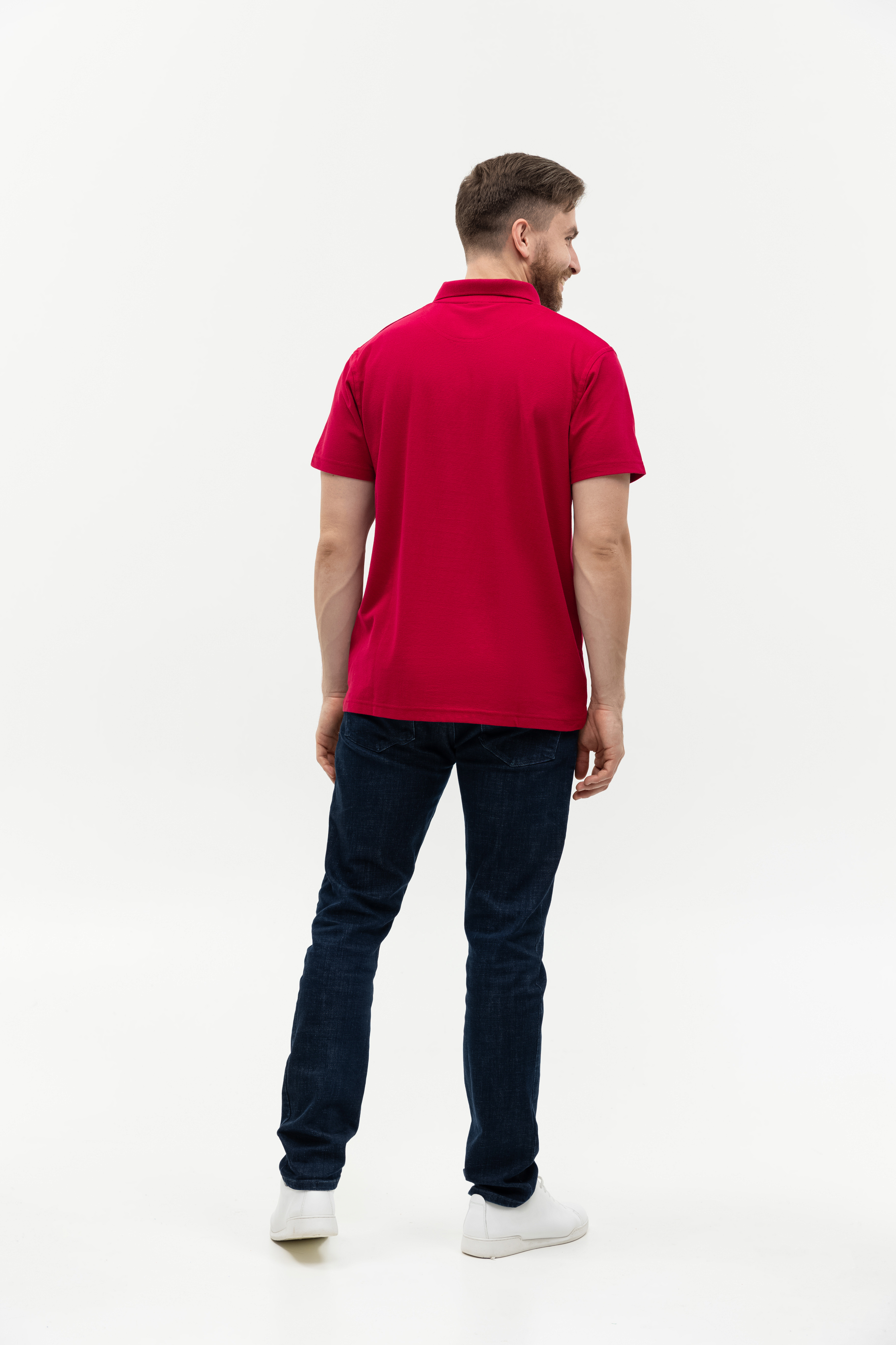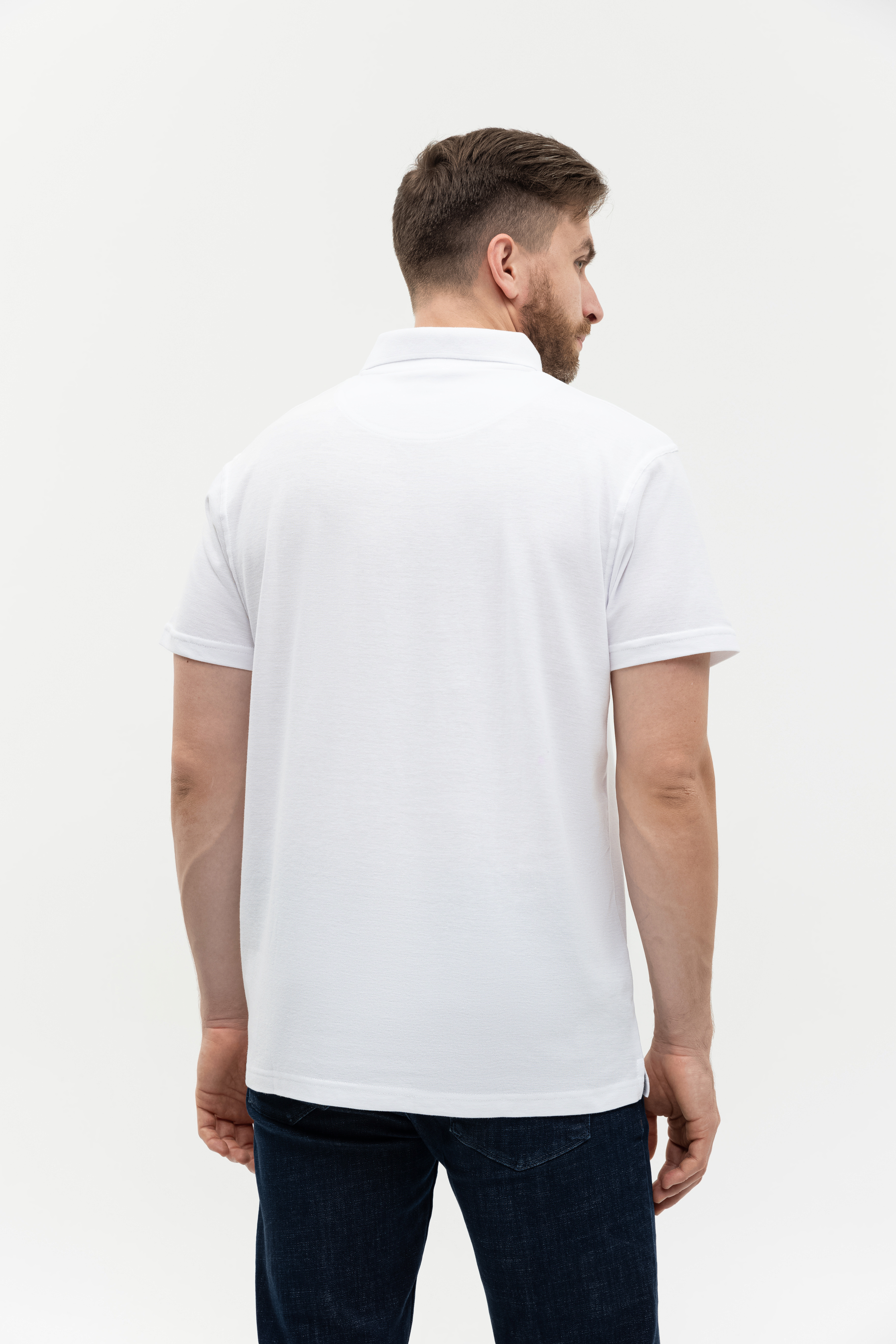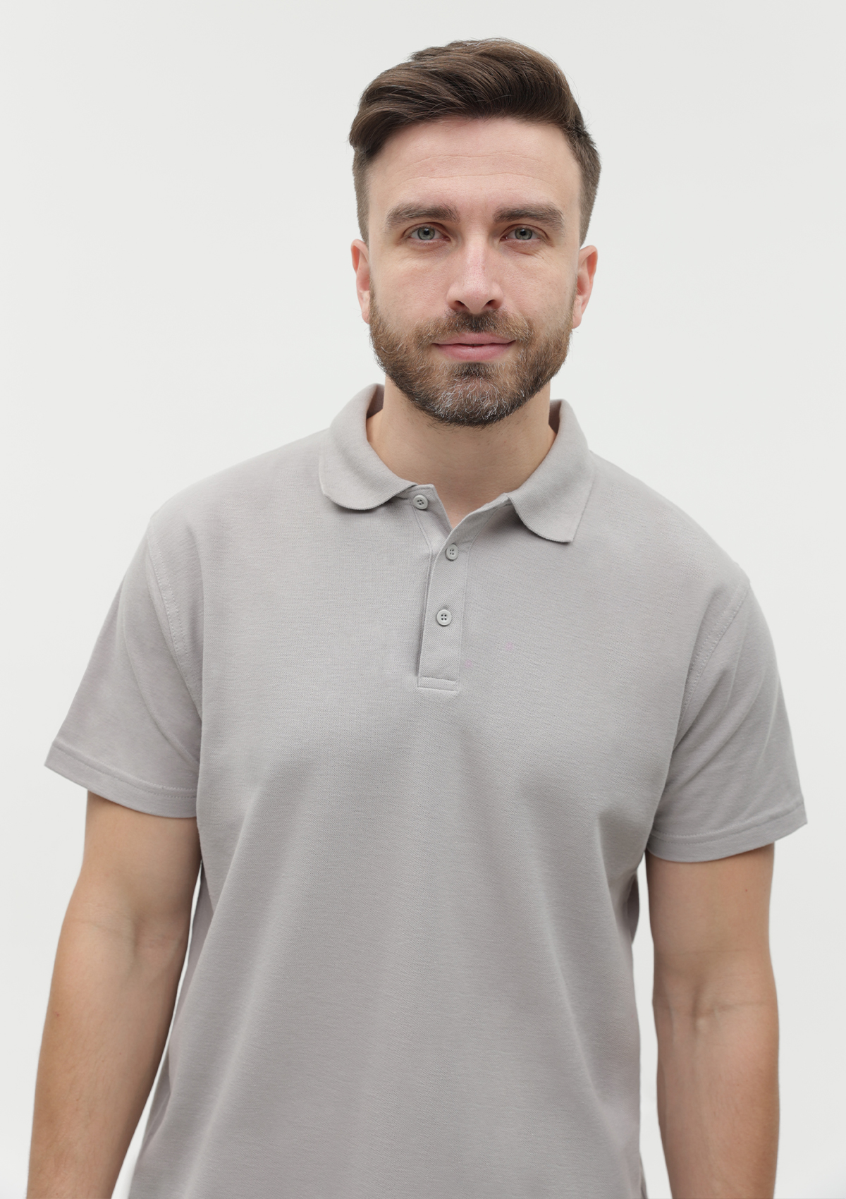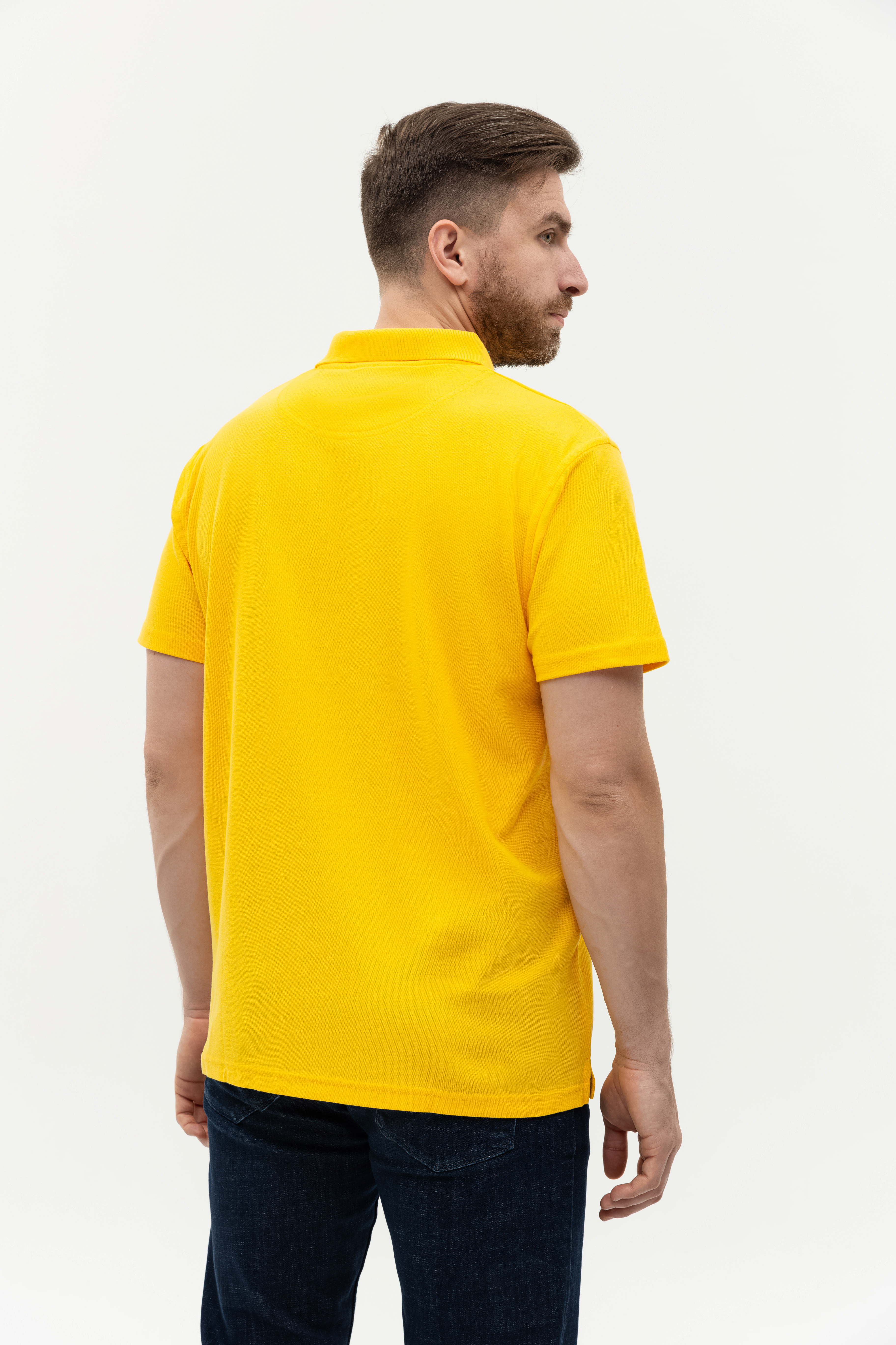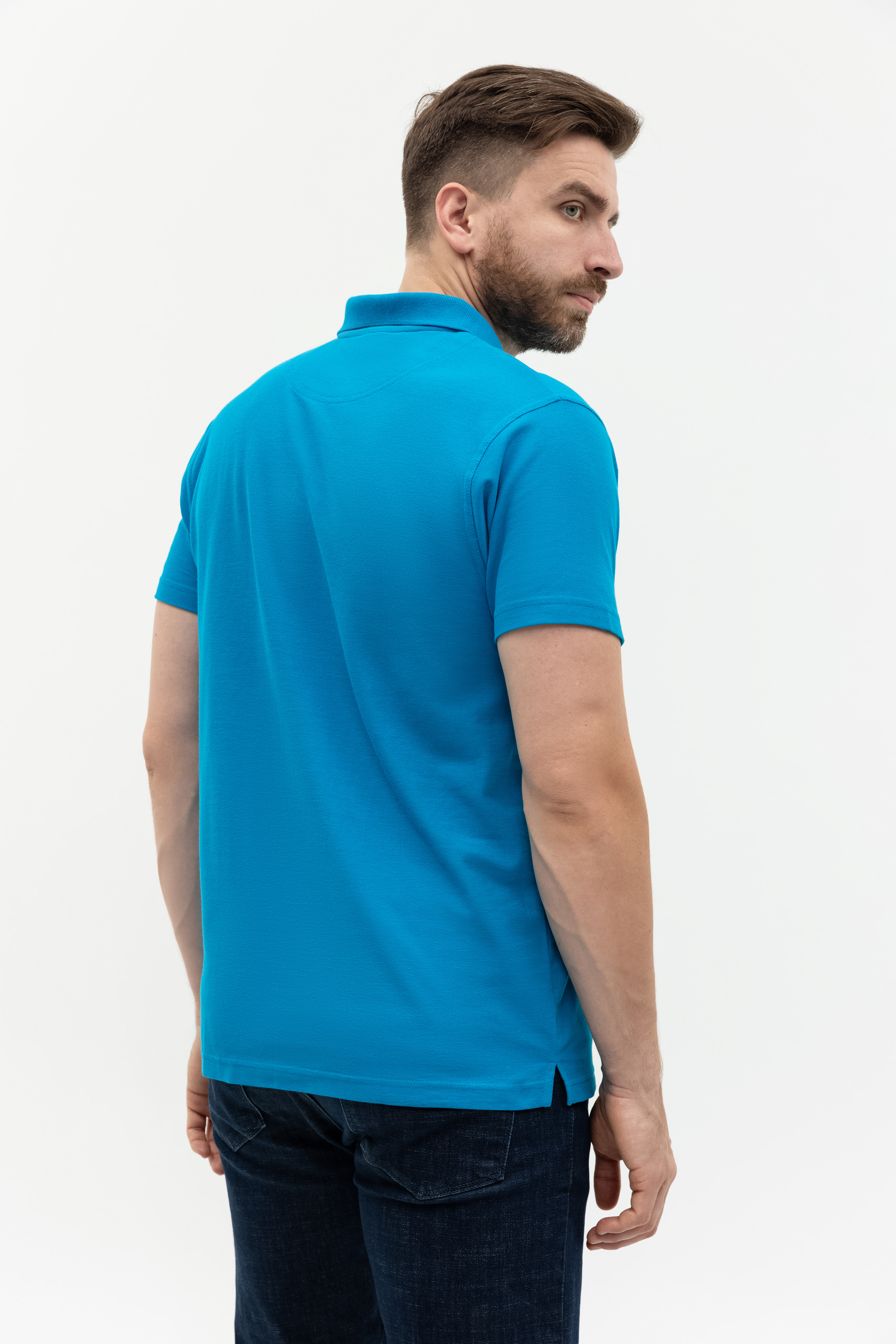 Поло выполнено из фактурной смесового ткани (65% хлопок, 35% полиэстер), благодаря чему изделие хорошо пропускает воздух и практически не мнется.