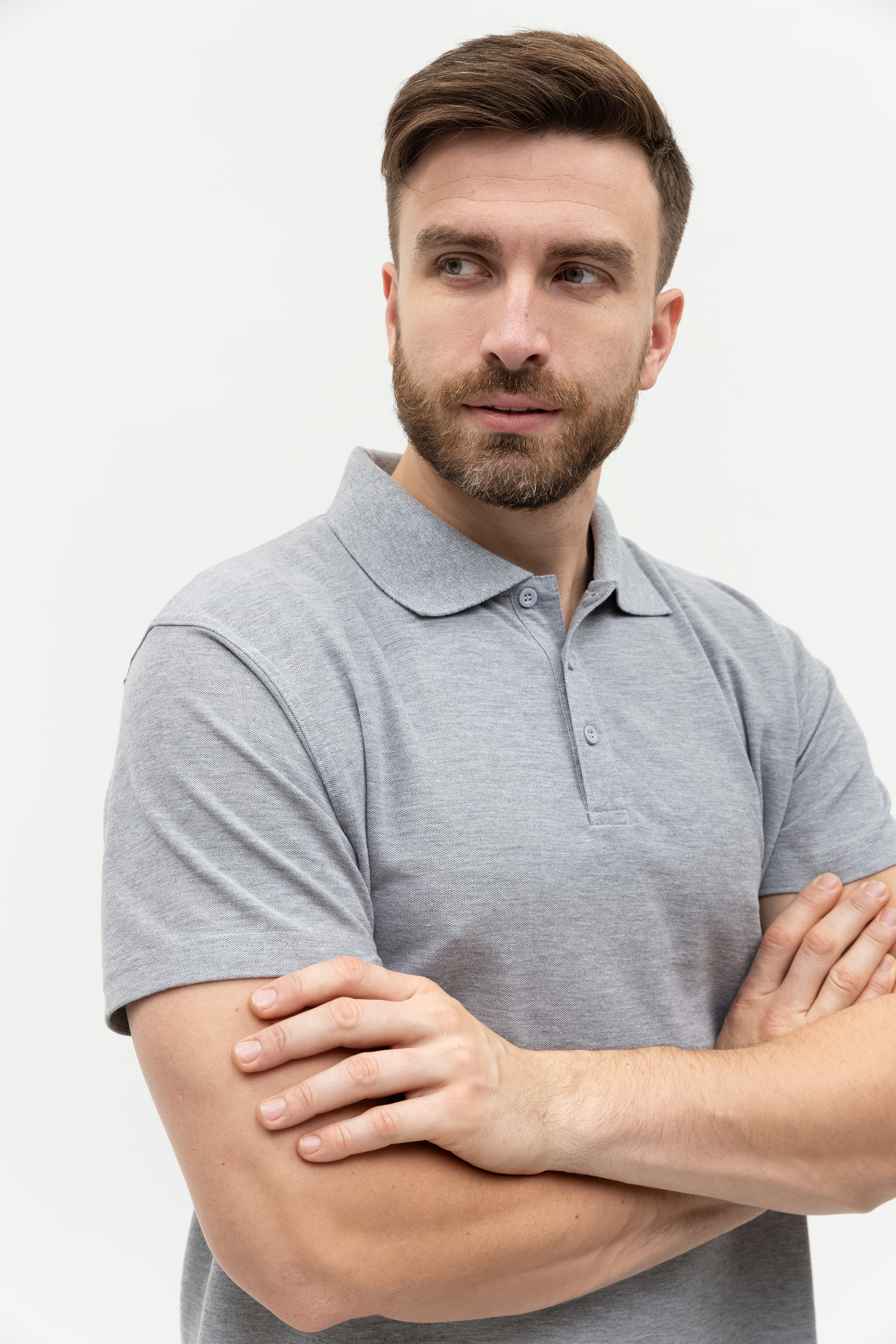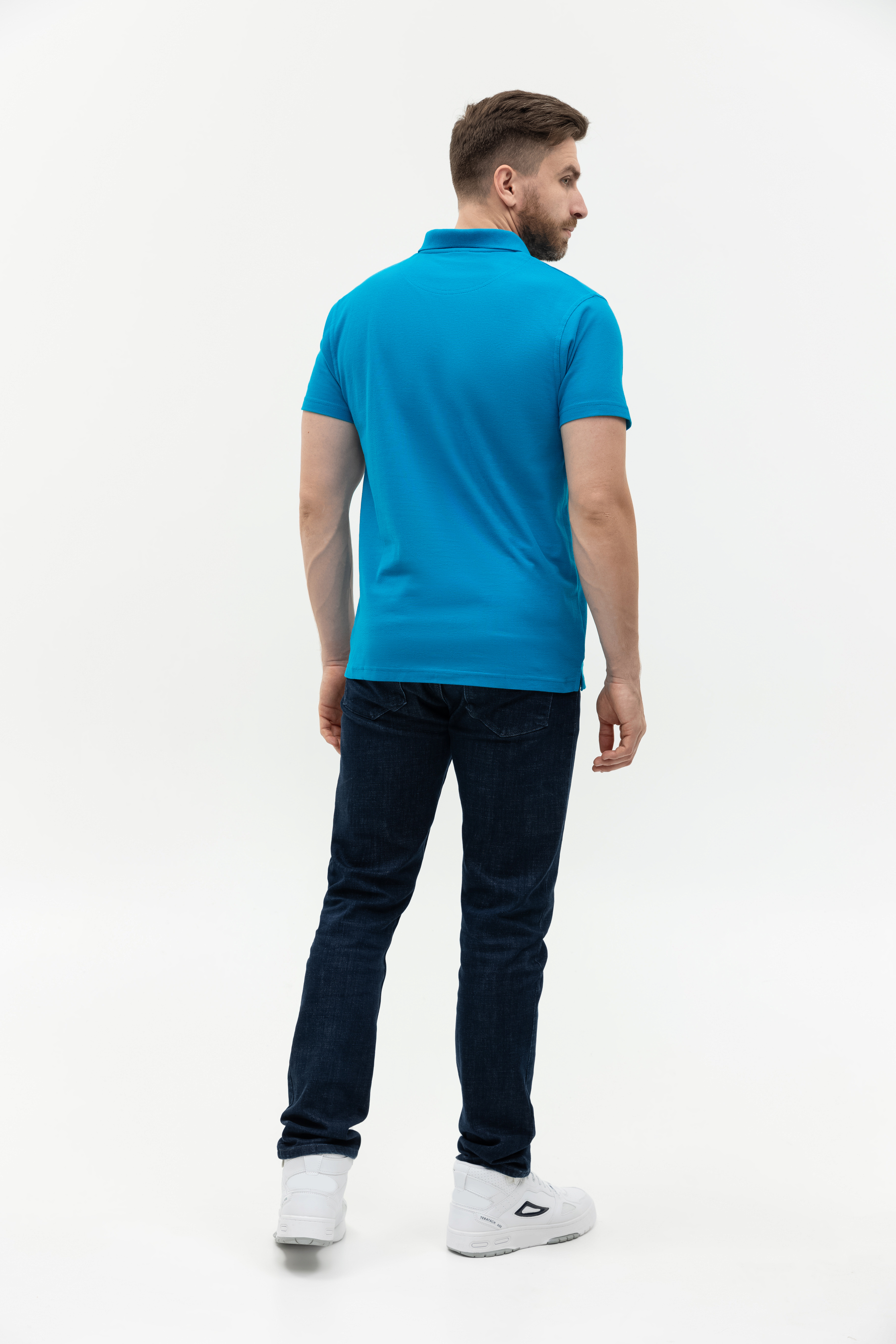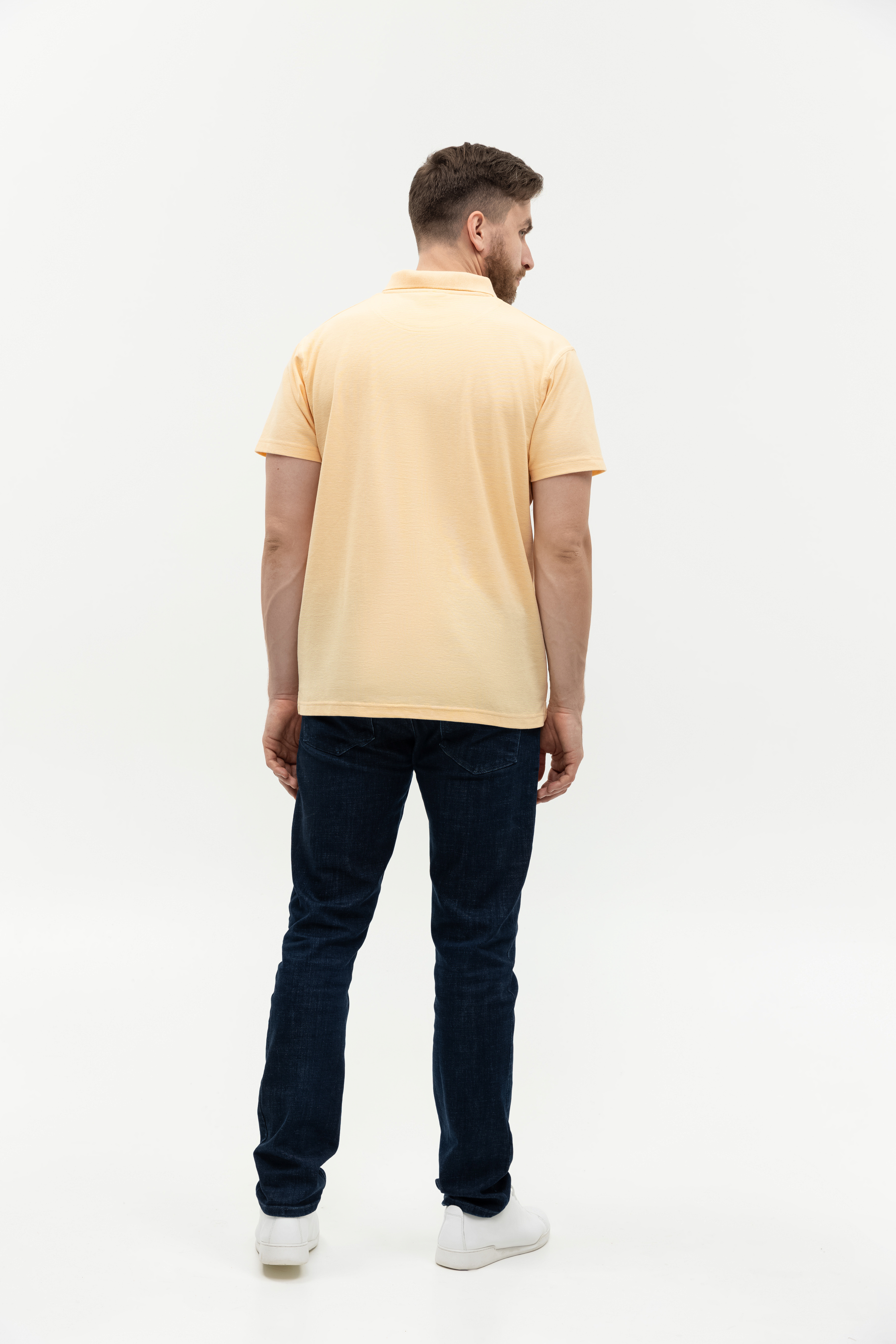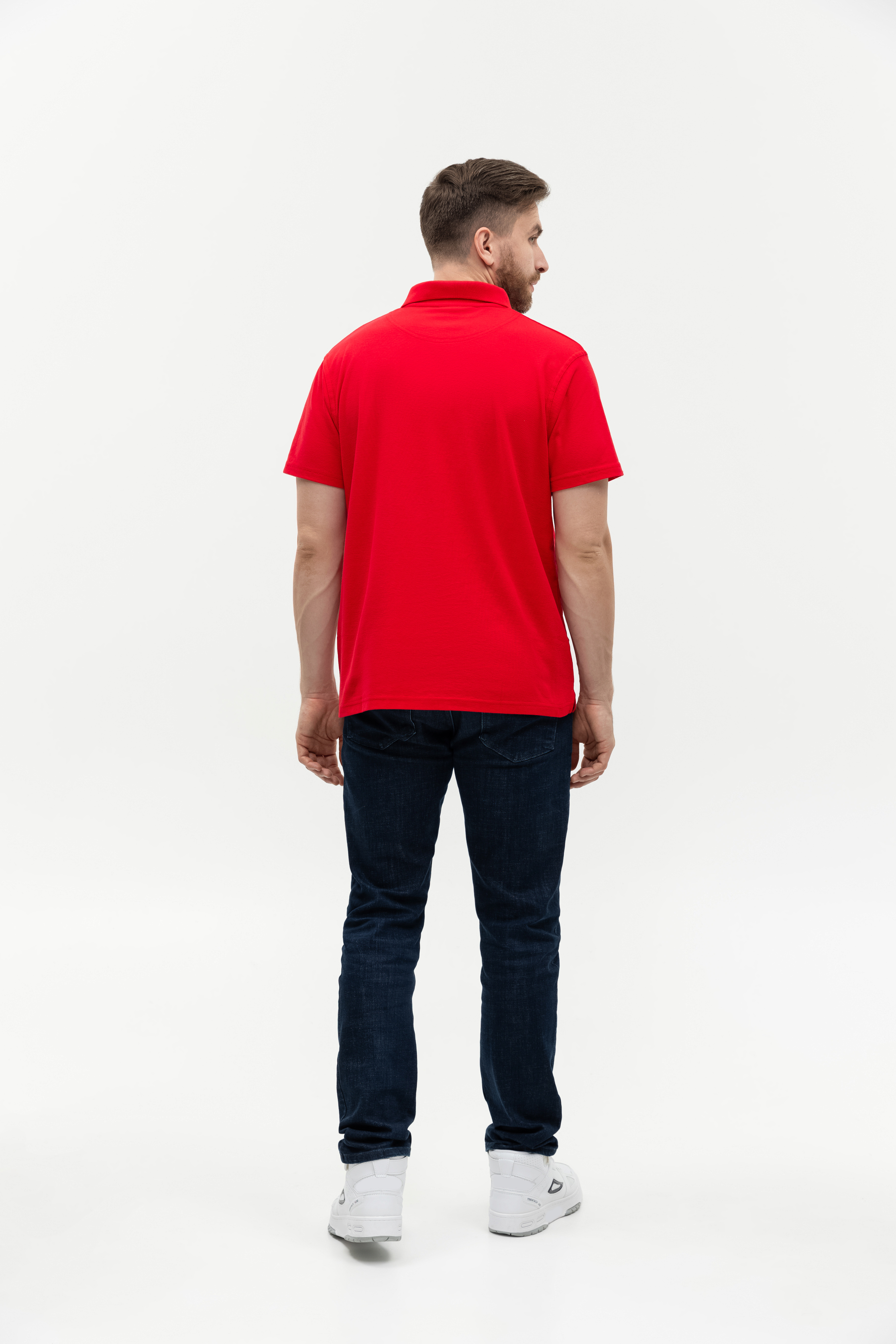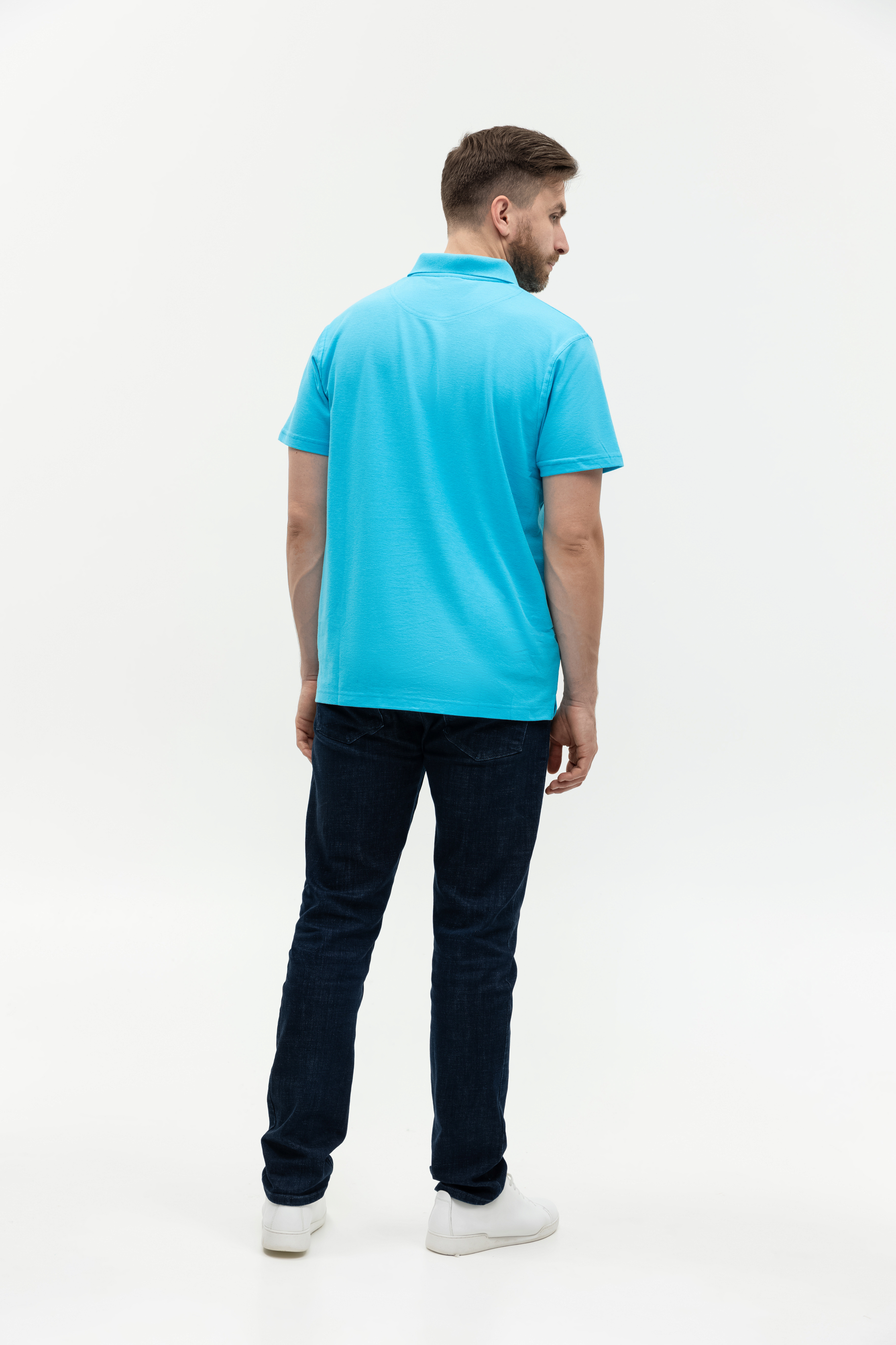 Поло выполнено из фактурной смесового ткани (65% хлопок, 35% полиэстер), благодаря чему изделие хорошо пропускает воздух и практически не мнется.