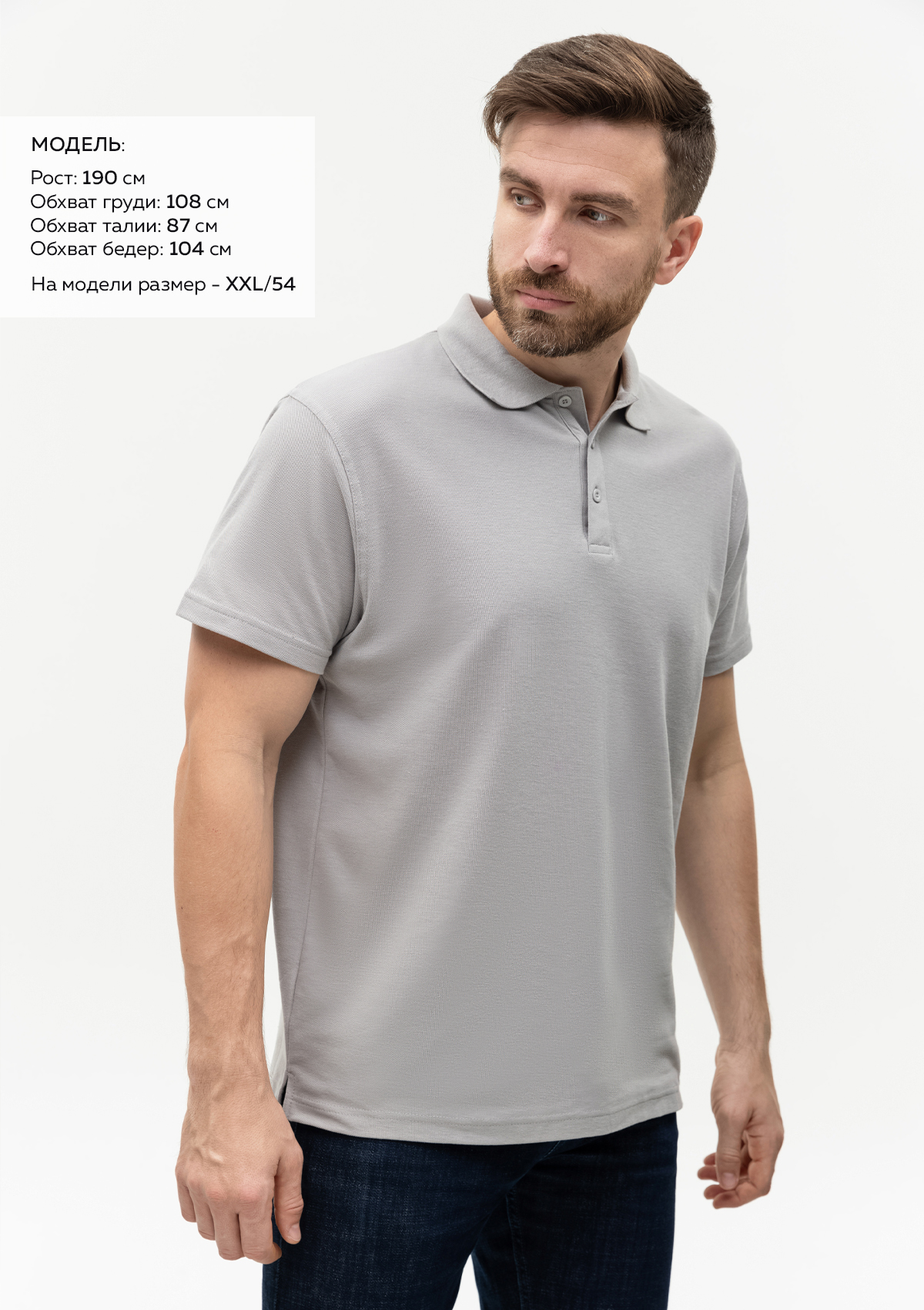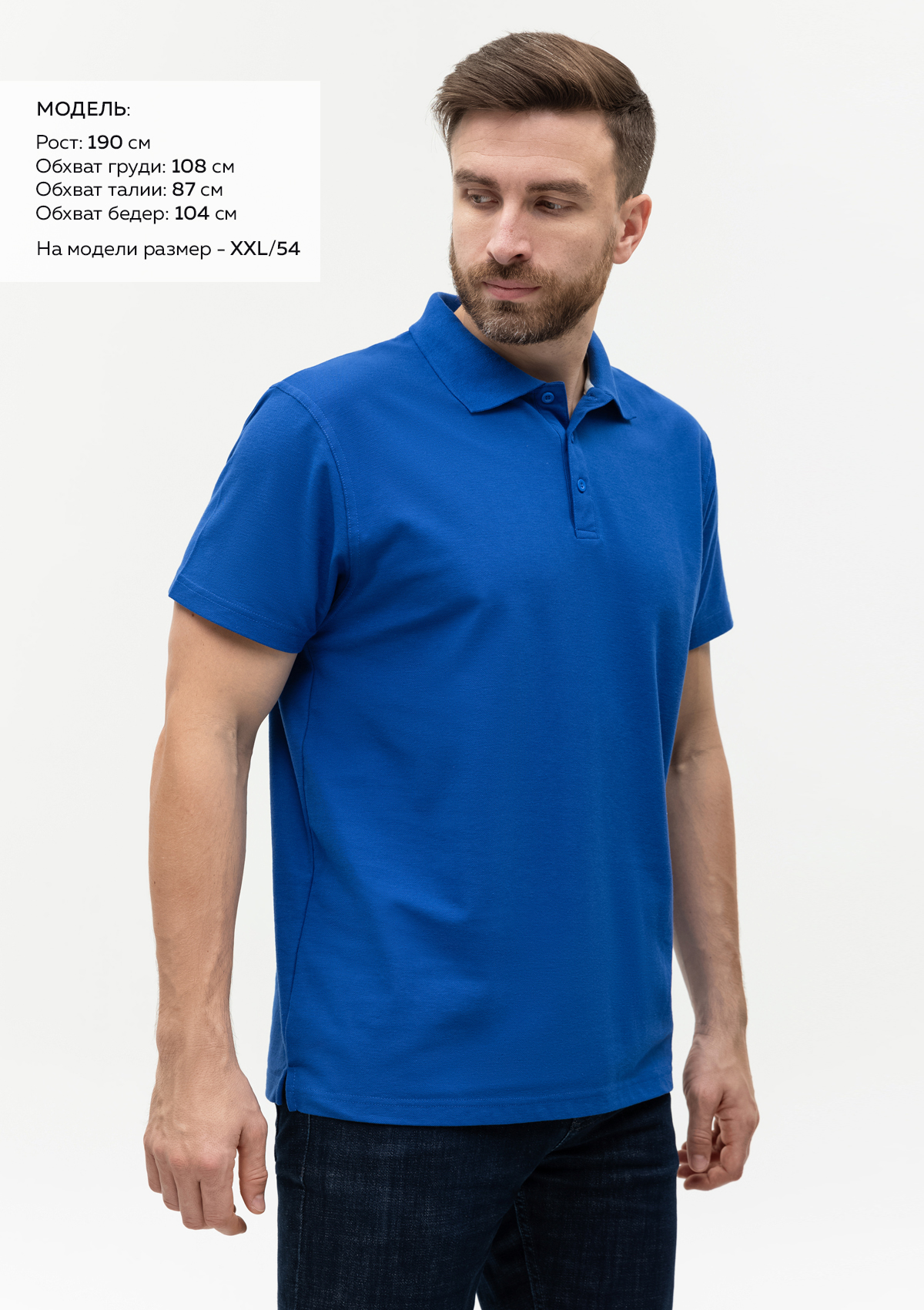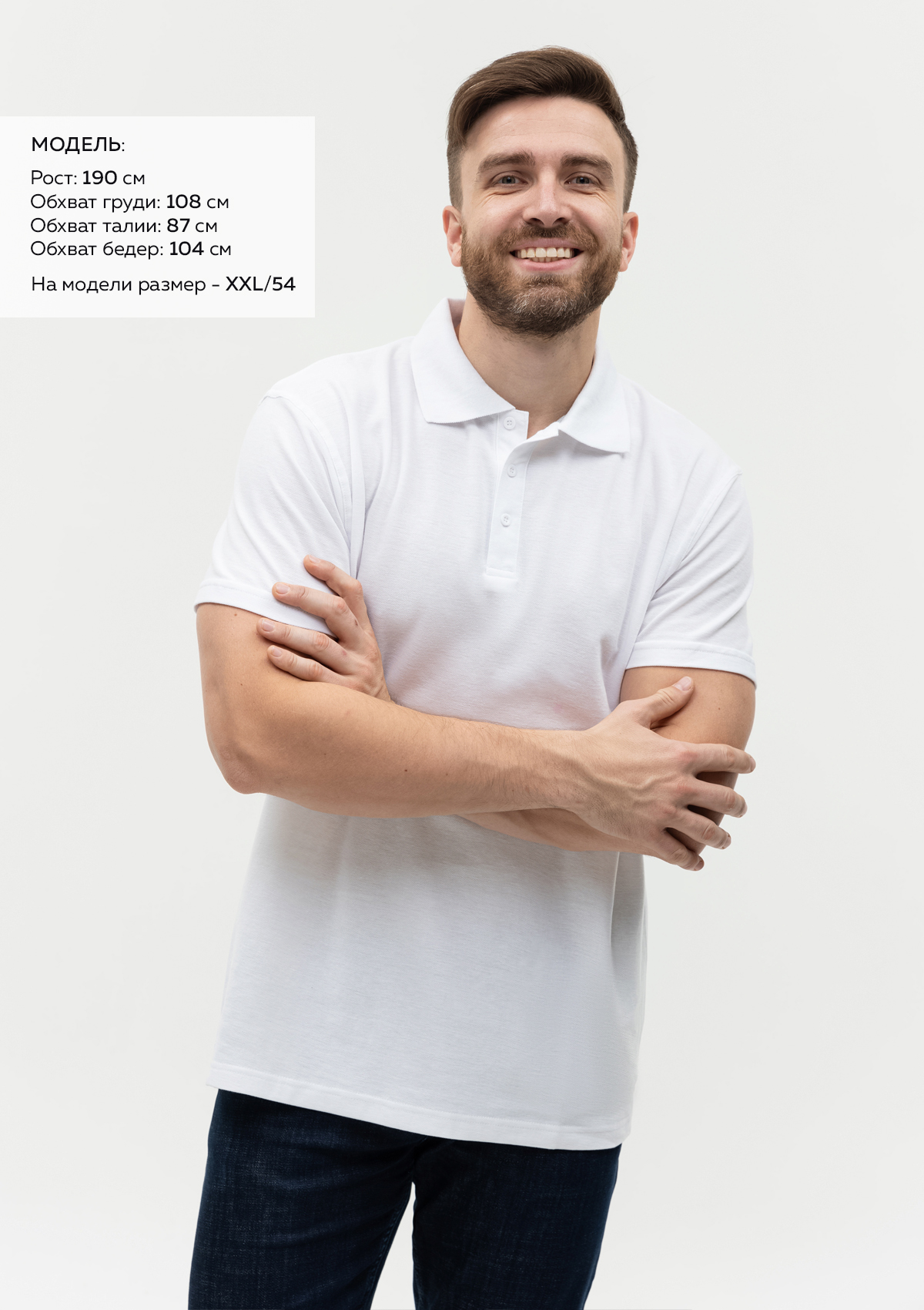 Размер на модели: XXL/54. Параметры модели: рост 190 см.; обхват груди 108 см.; обхват талии 87 см.; обхват бедер 104 см.