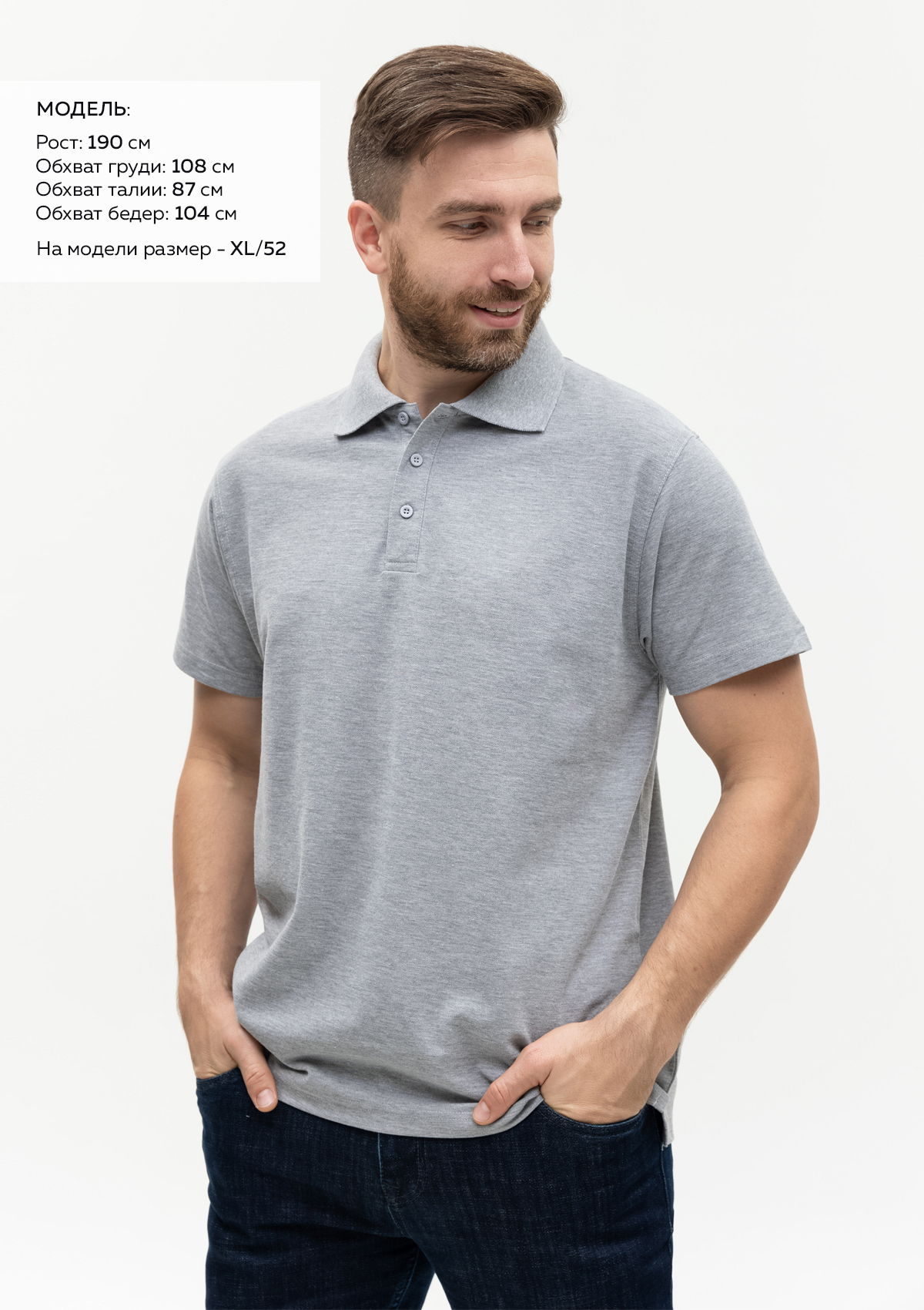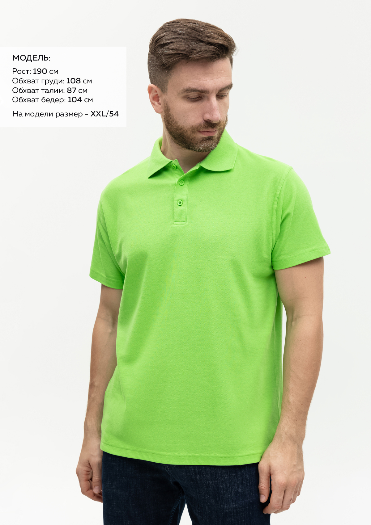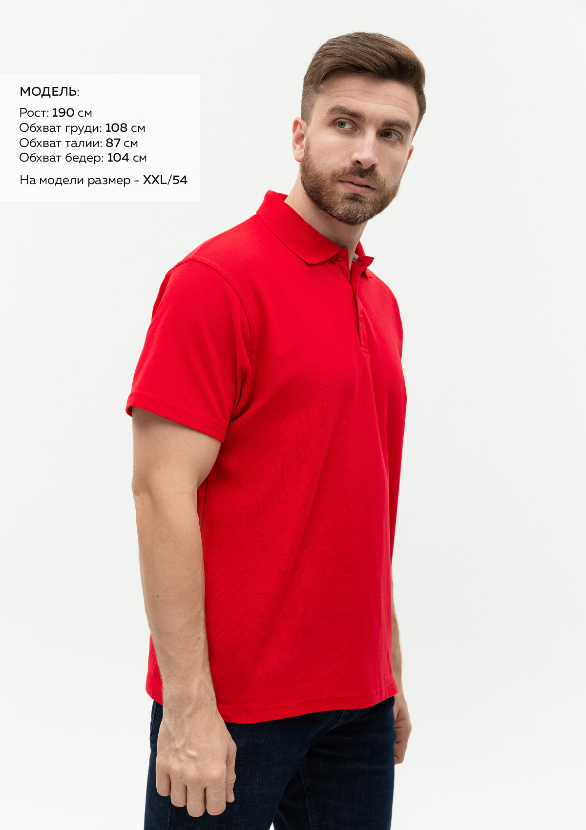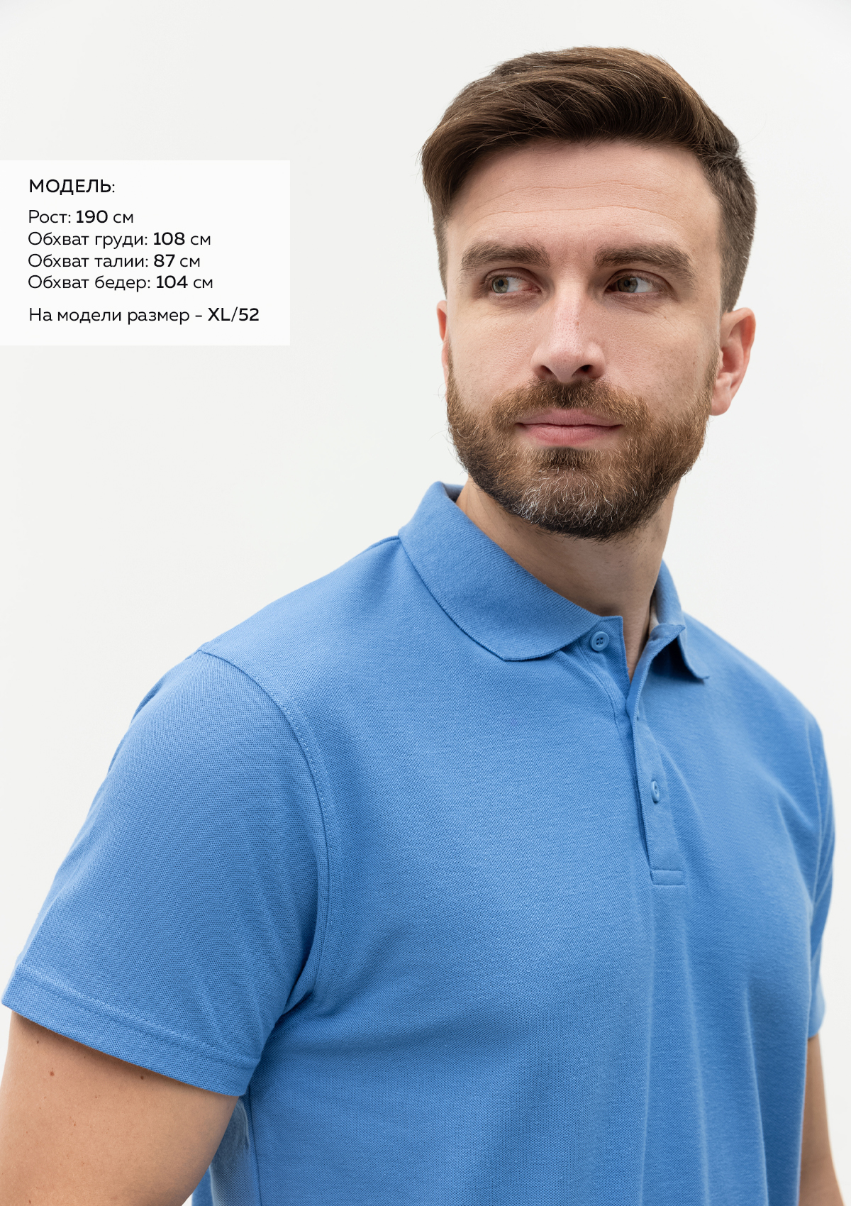 Размер на модели: XXL/54. Параметры модели: рост 190 см.; обхват груди 108 см.; обхват талии 87 см.; обхват бедер 104 см.