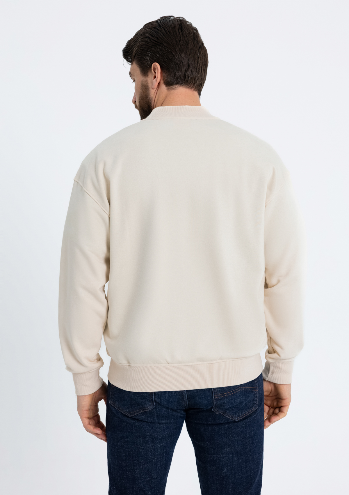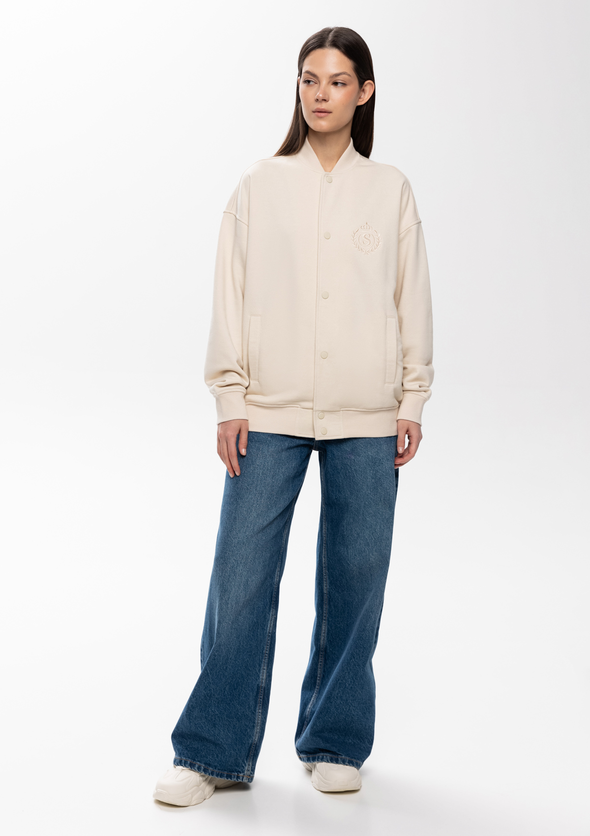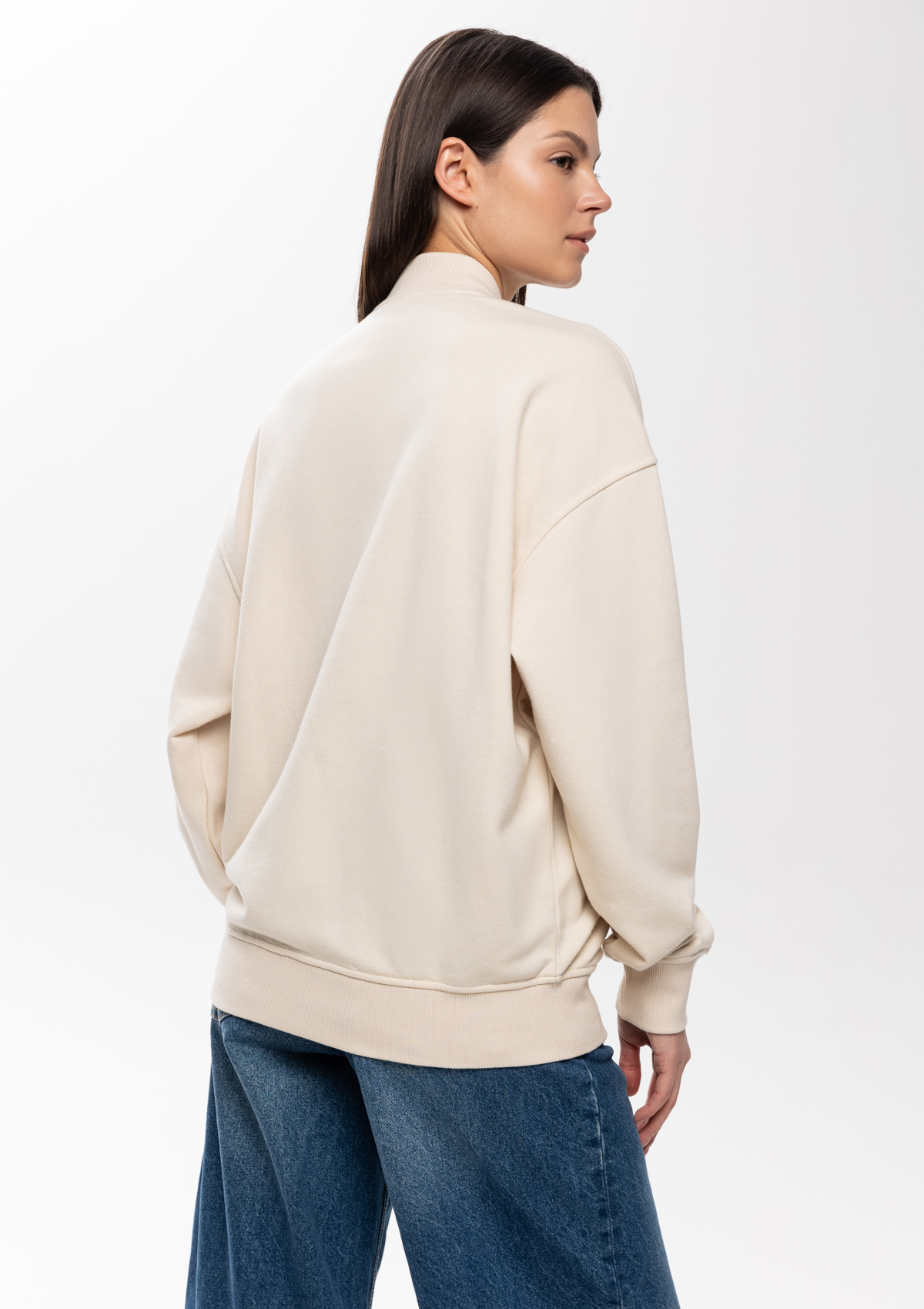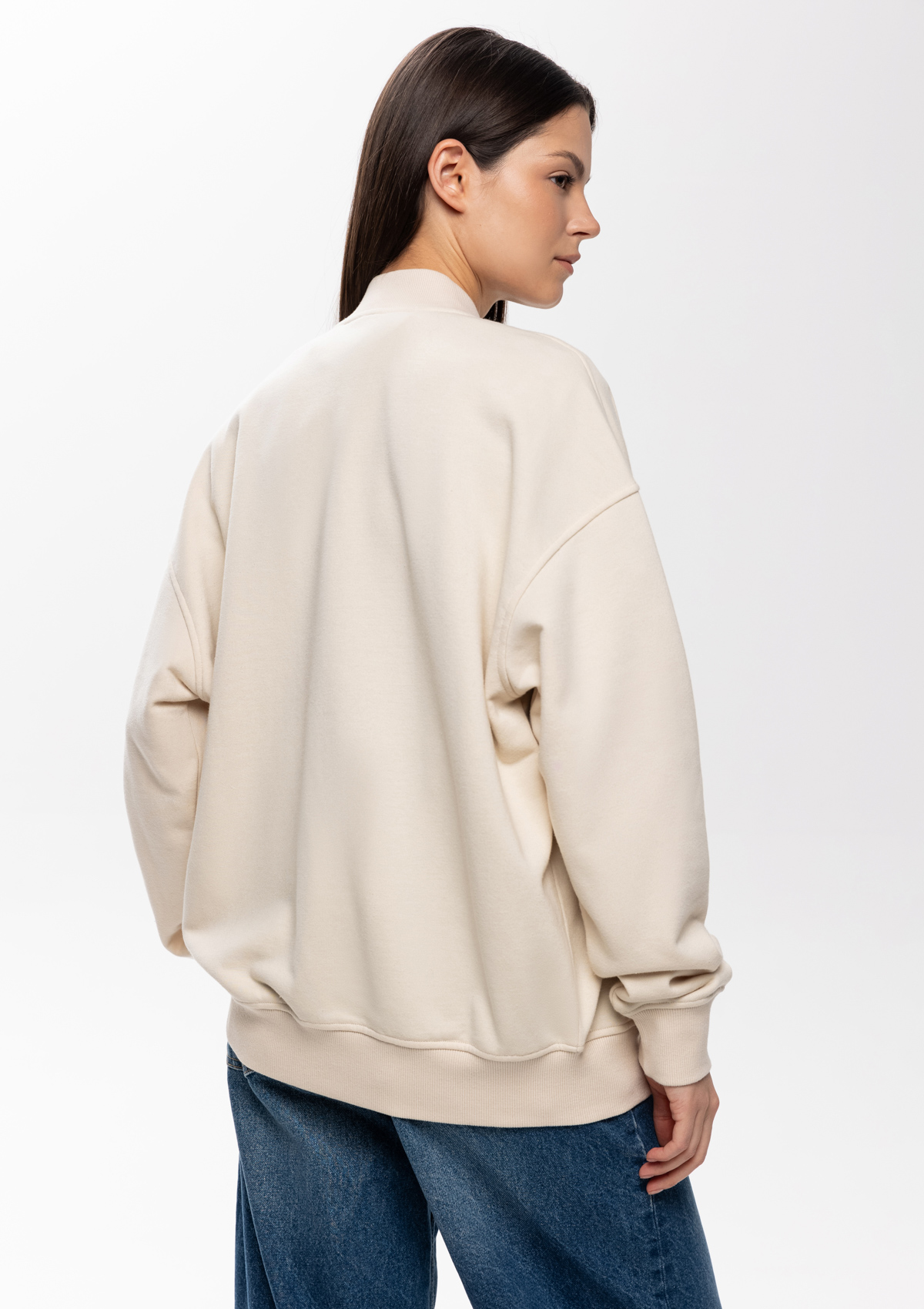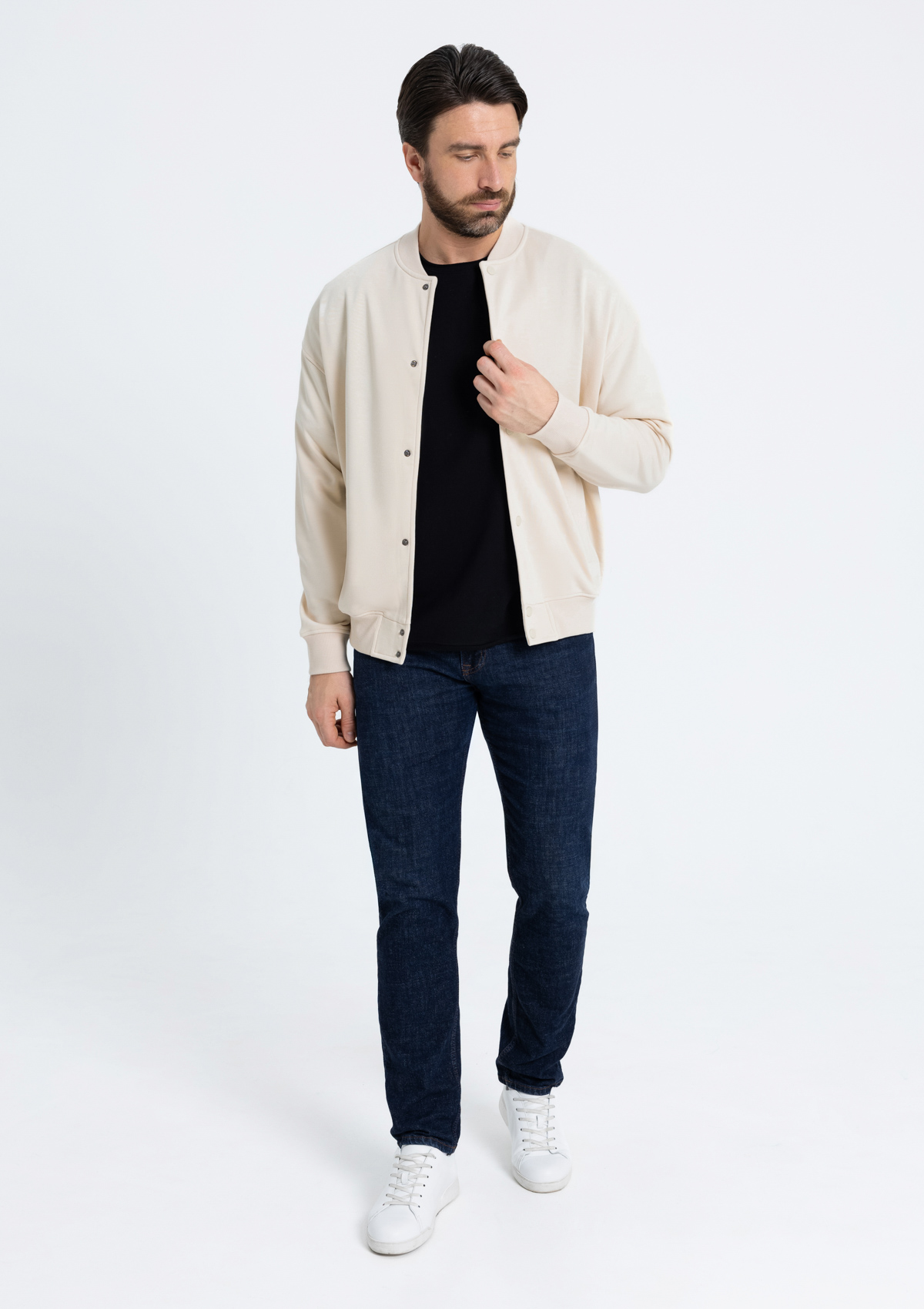 Бомбер выполнен из плотного и приятного к телу материала – футер 3-х нитка (70% хлопок, 30% эластан). Дышащий материал хорошо отводит влагу, сохраняя комфортный микроклимат внутри изделия. Благодаря тройной нити полотно отличается высокой прочностью, что делает его и устойчивым к механическим повреждениям.