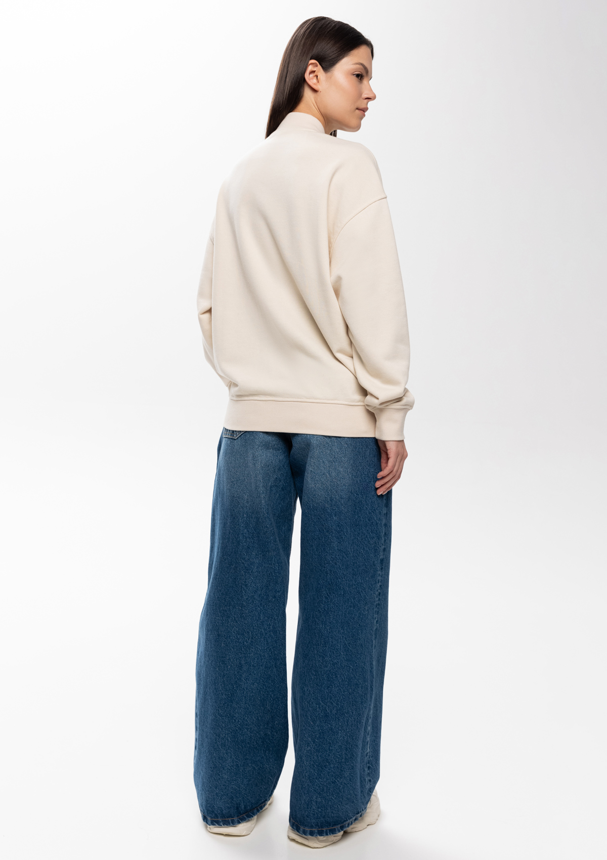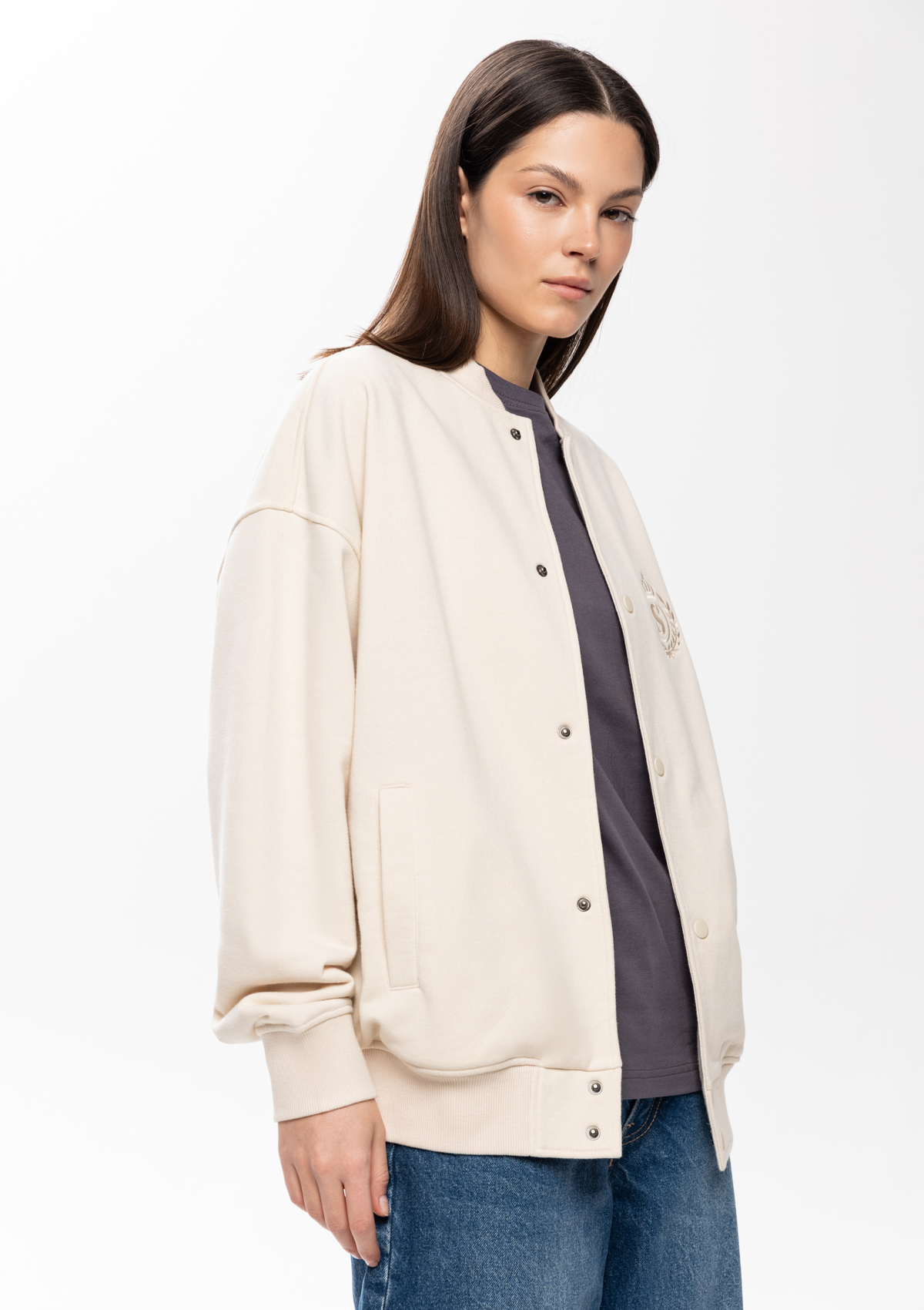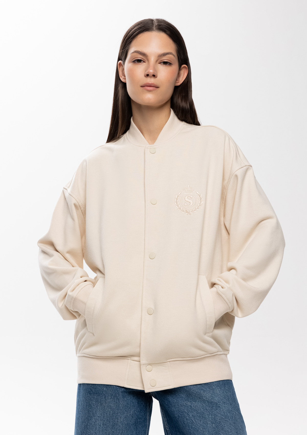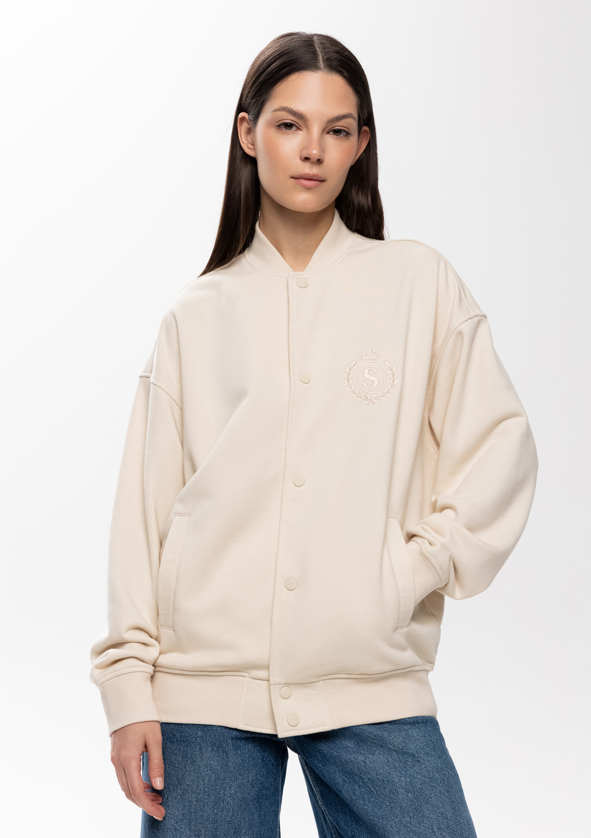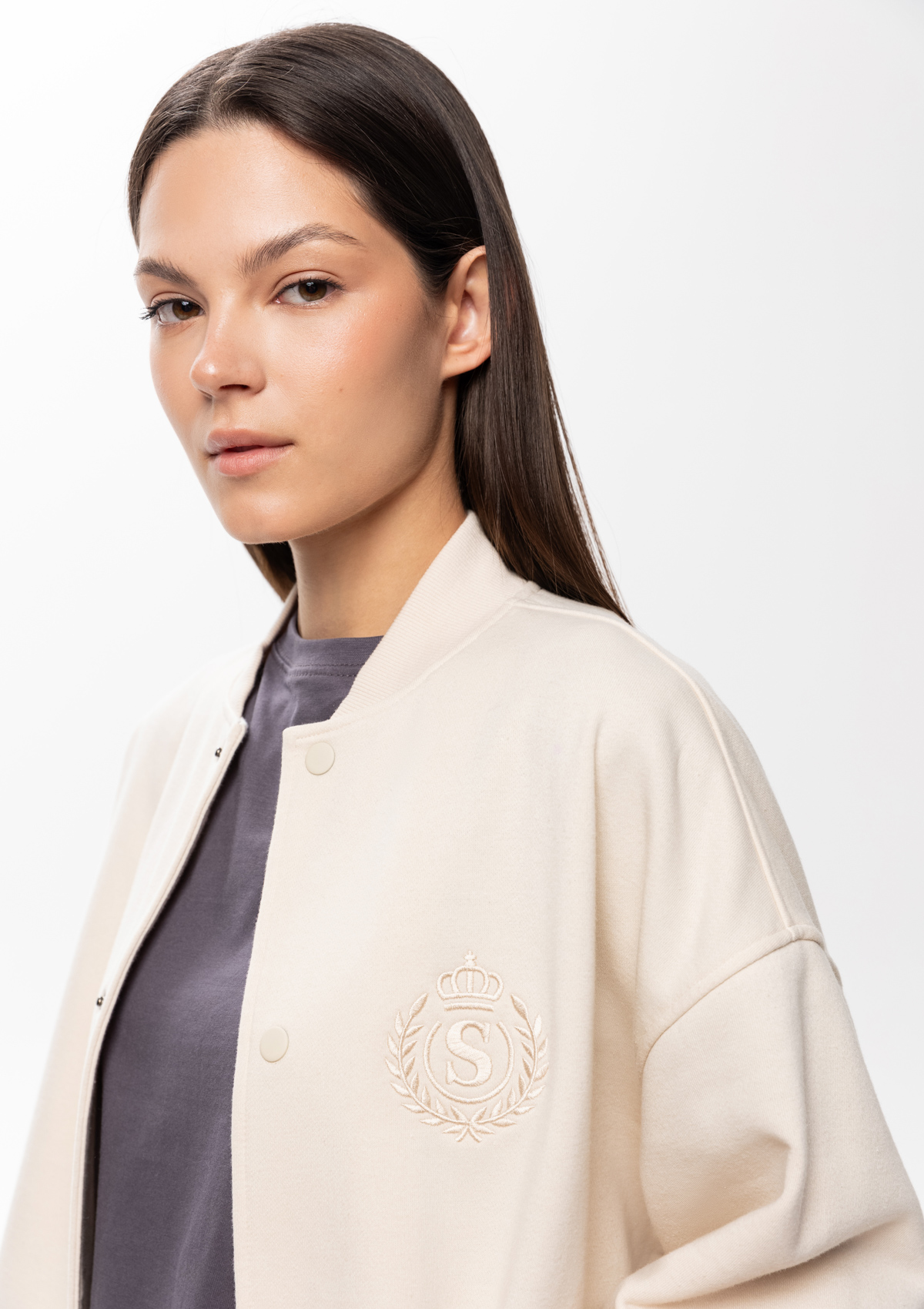 Бомбер выполнен из плотного и приятного к телу материала – футер 3-х нитка (70% хлопок, 30% эластан). Дышащий материал хорошо отводит влагу, сохраняя комфортный микроклимат внутри изделия. Благодаря тройной нити полотно отличается высокой прочностью, что делает его и устойчивым к механическим повреждениям.