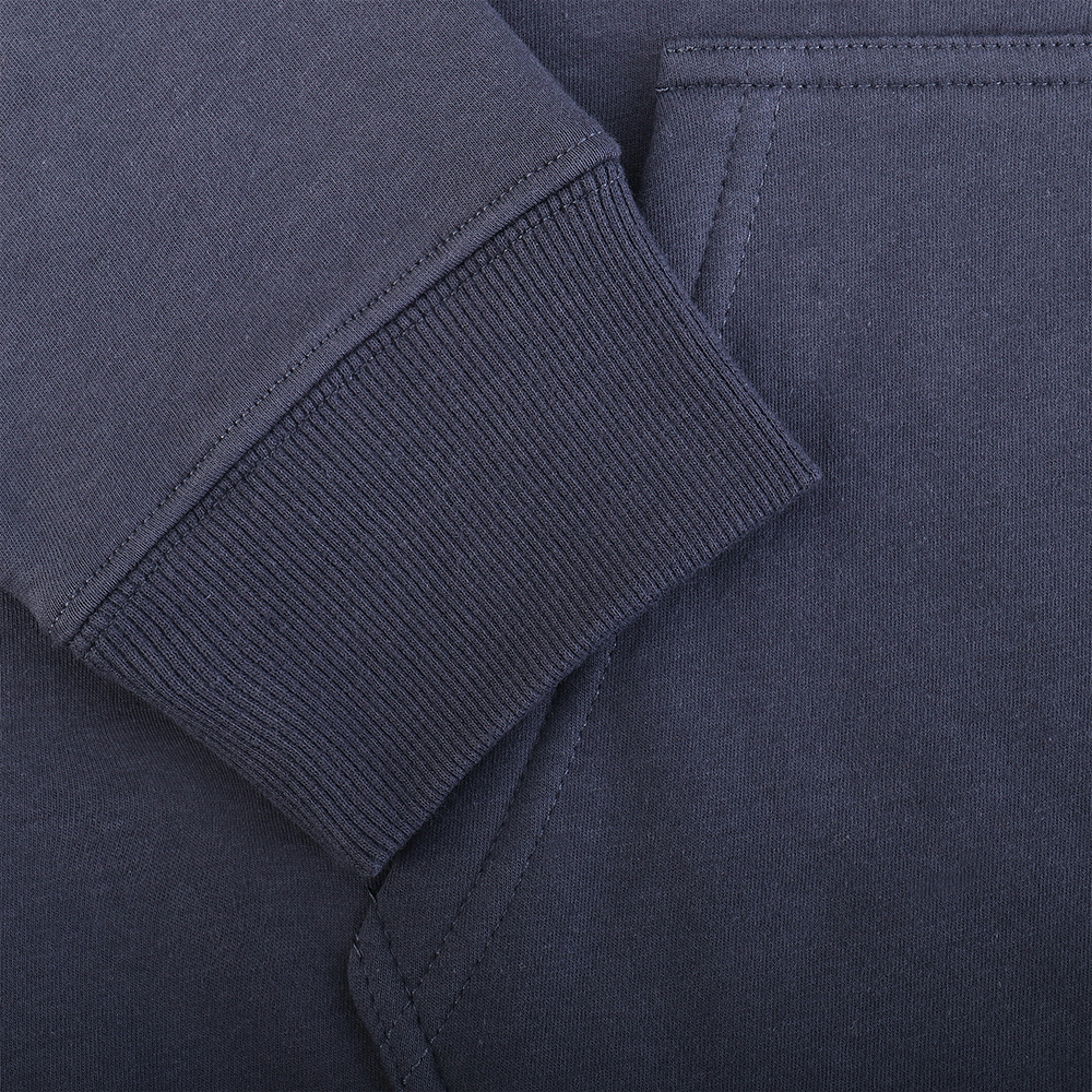 Толстовка изготовлена из двустороннего полотна «сэндвич», где верхний слой — 100% хлопок, а внутренний — мягкий флис из 100% полиэстера. Это сочетание обеспечивает отличную теплоизоляцию и комфорт, что делает изделие особенно привлекательным в холодное время года.