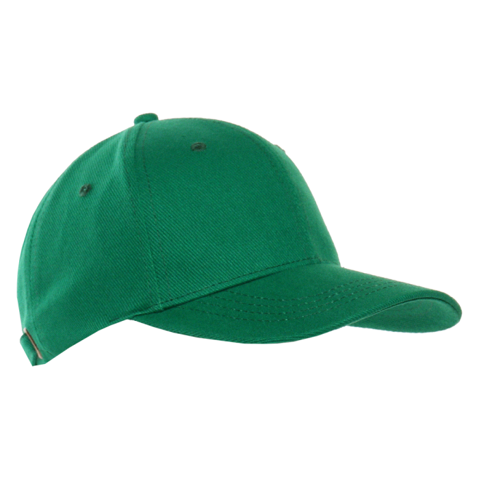 Бейсболка-шестиклинка с изогнутым жестким козырьком, прилегание регулируется ремешком с металлической застежкой.