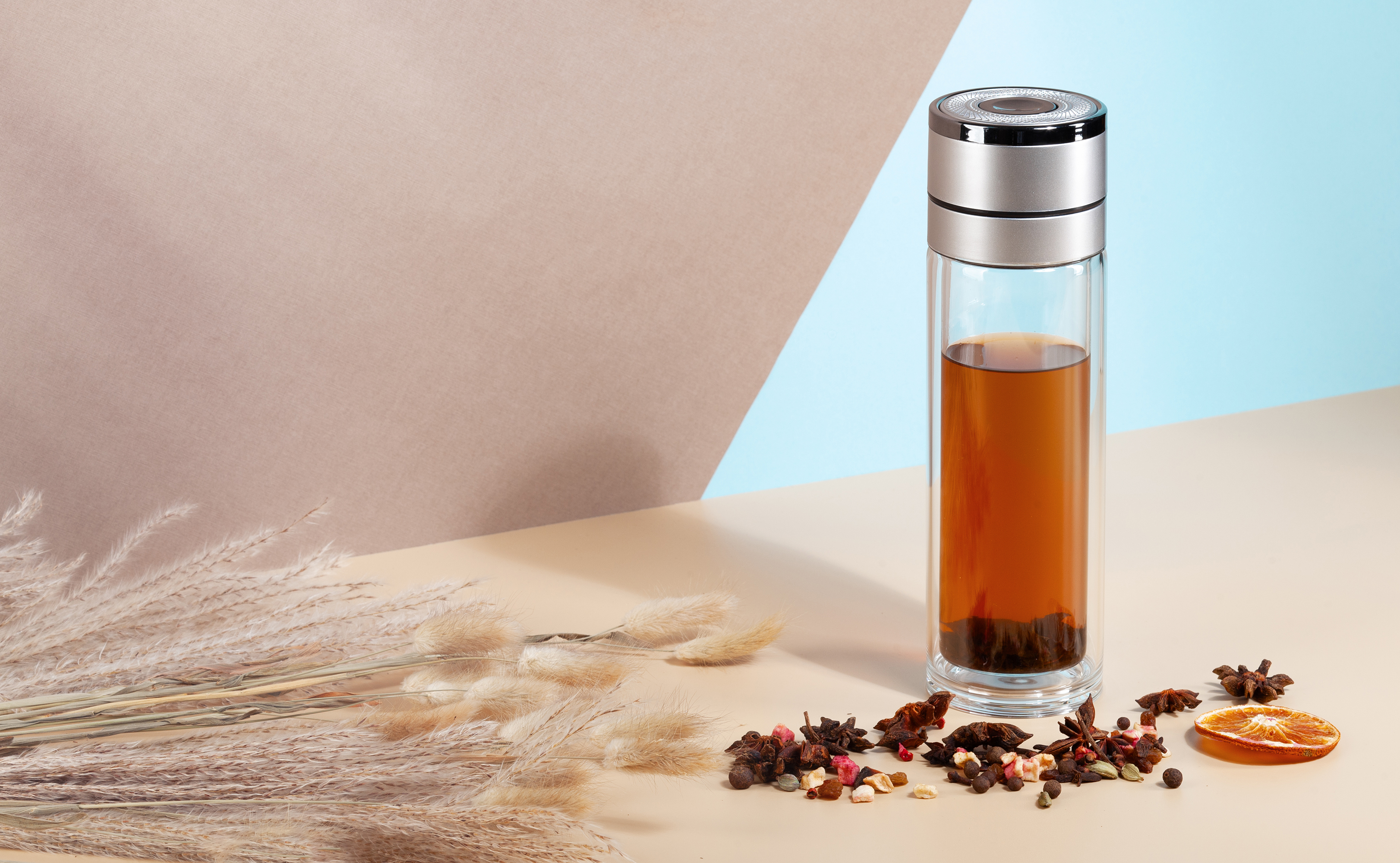 Заварочный термос "Press" 400 мл с удобной крышкой, которая открывается нажатием кнопки, для закрытия достаточно слегка надавить на нее до щелчка. Сито из 304 стали для фильтрации содержимого. Двустенная колба из боросиликатного стекла идеально подходит для горячих напитков, внешняя стенка не нагревается, комфортно держать в руках. Стекло не имеет посторонних запахов, напитки сохраняют вкус.