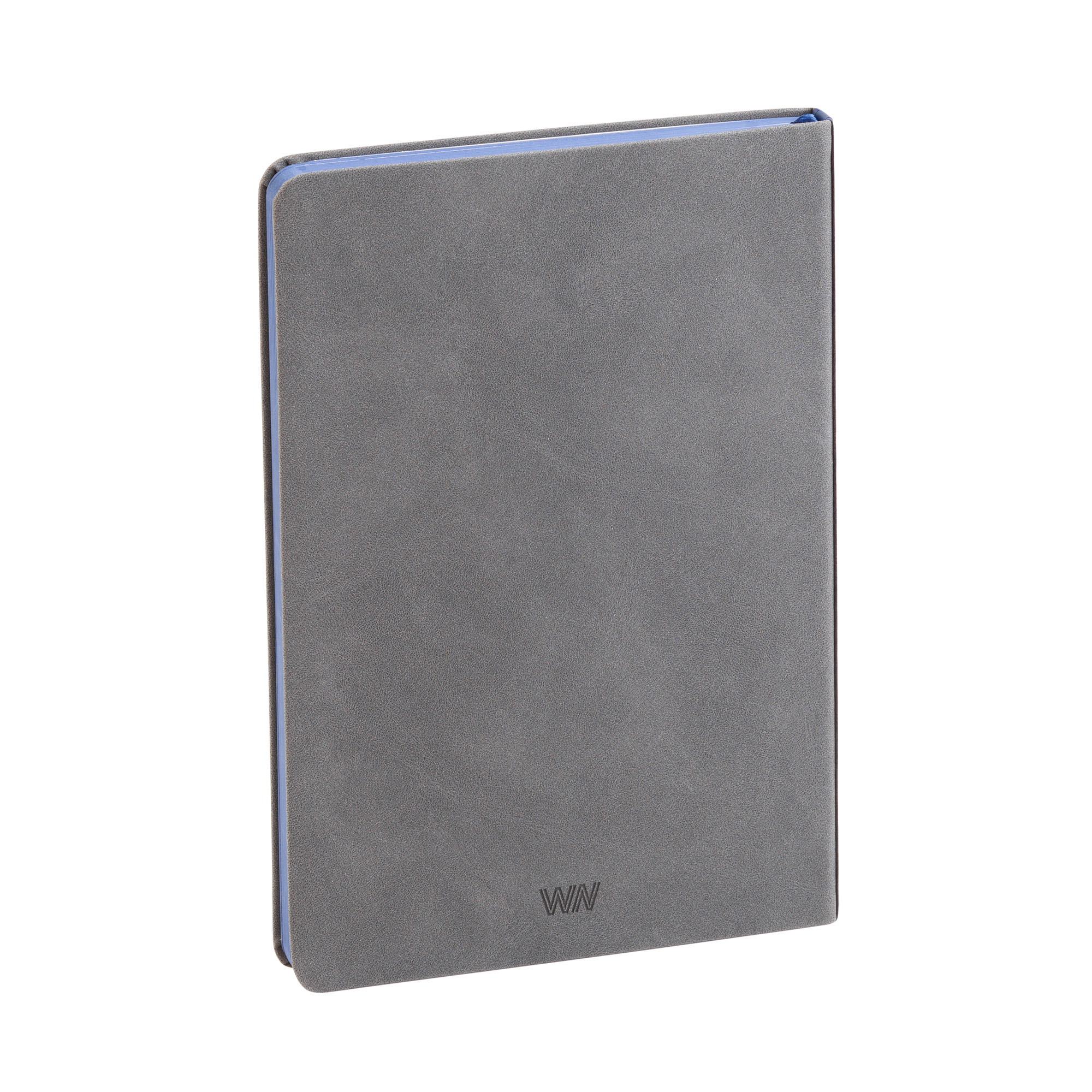 Ежедневник "Турин" в универсальном сером цвете с контрастной вставкой в корешке, придающей корпоративную идентичность. Стильный образ завершает цветной срез и ляссе в цвет вставки.