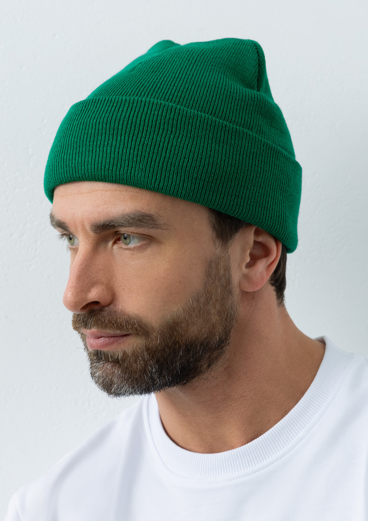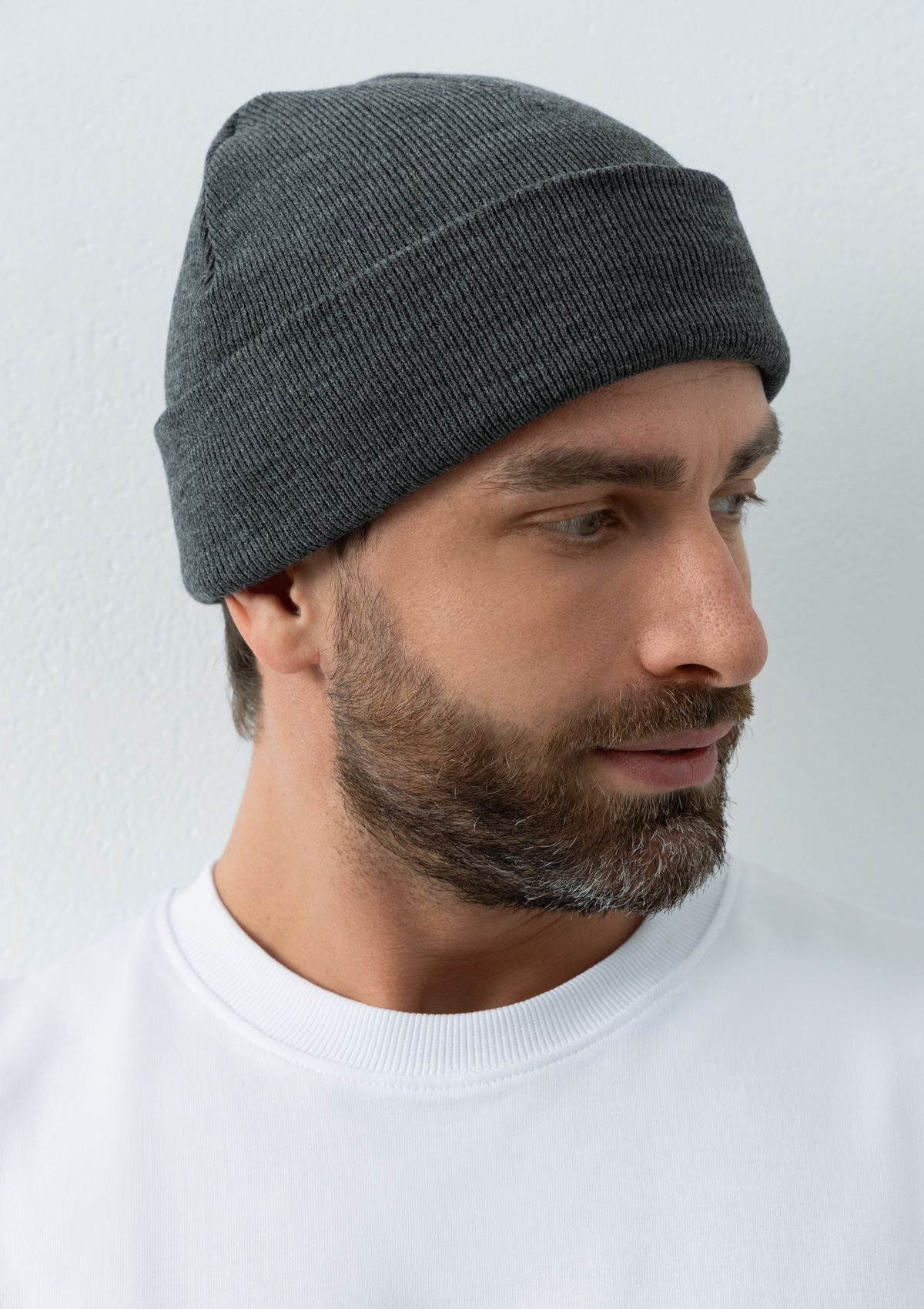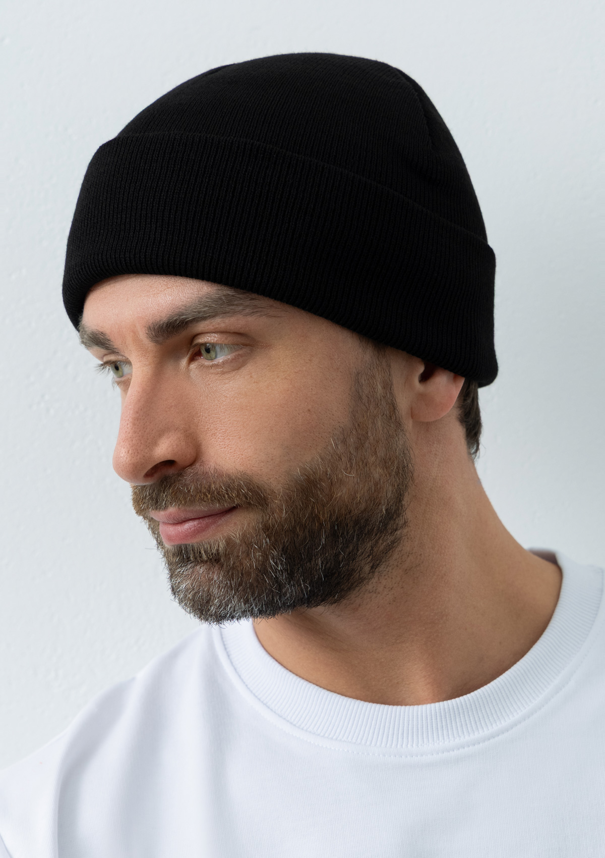 Шапка выполнена из 100% акрила двухслойной вязки 1*1, идеального для влажной снежной погоды. Материал не мнется и хорошо сохраняет тепло.