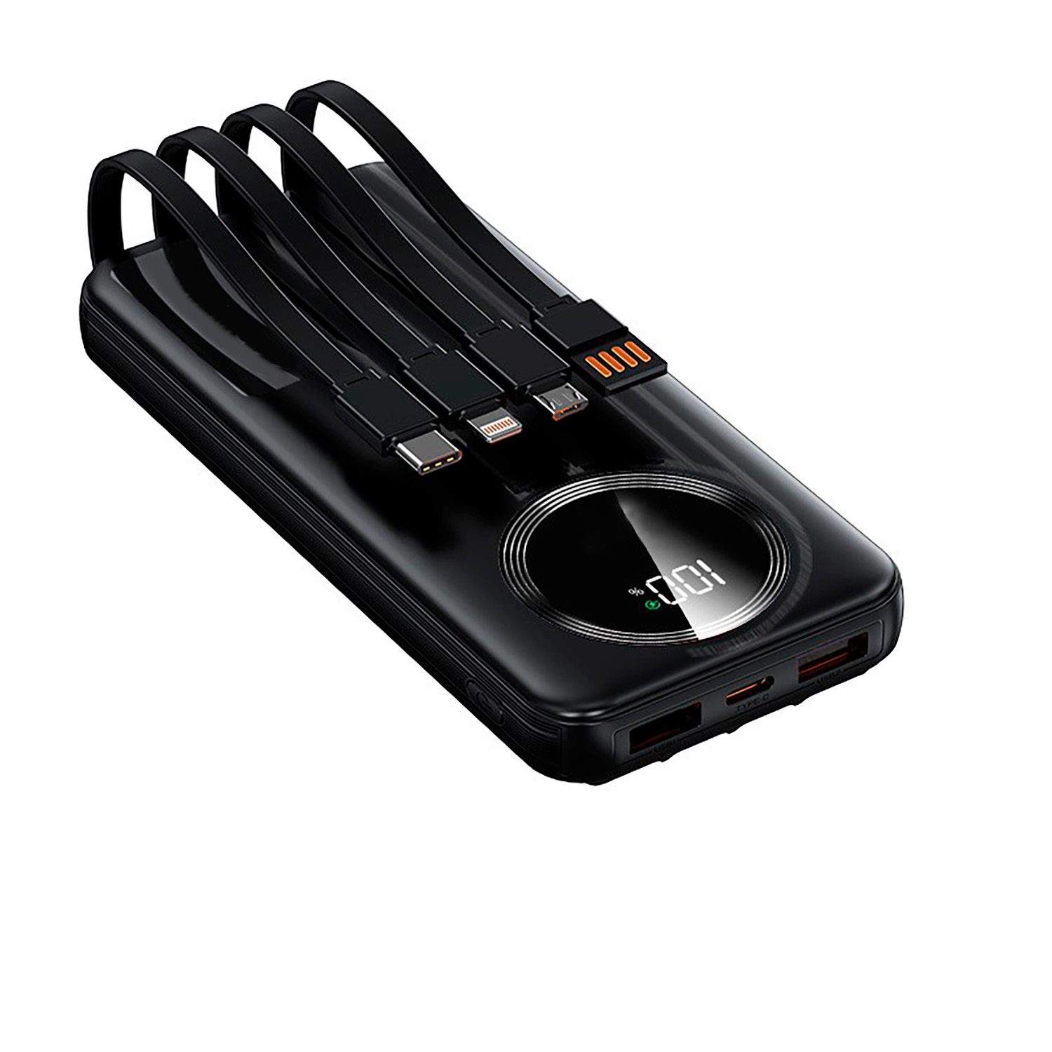 Помимо привлекательной цены в арсенале Phantom'a есть все необходимые кабели как для зарядки любых гаджетов, так и для пополнения самого пауэрбанка. Удобная дополнительная опция - цифровая индикация оставшегося уровня заряда.