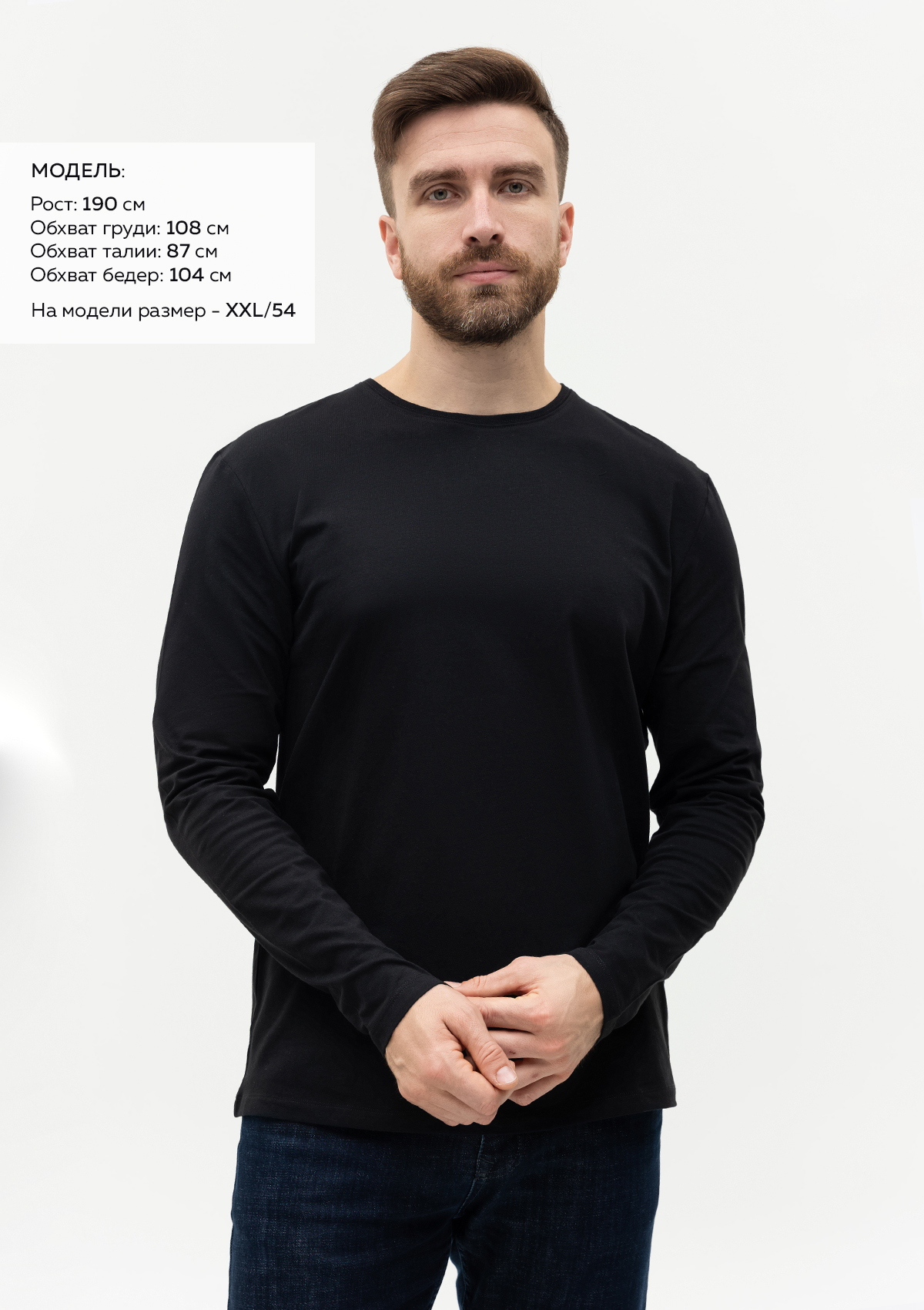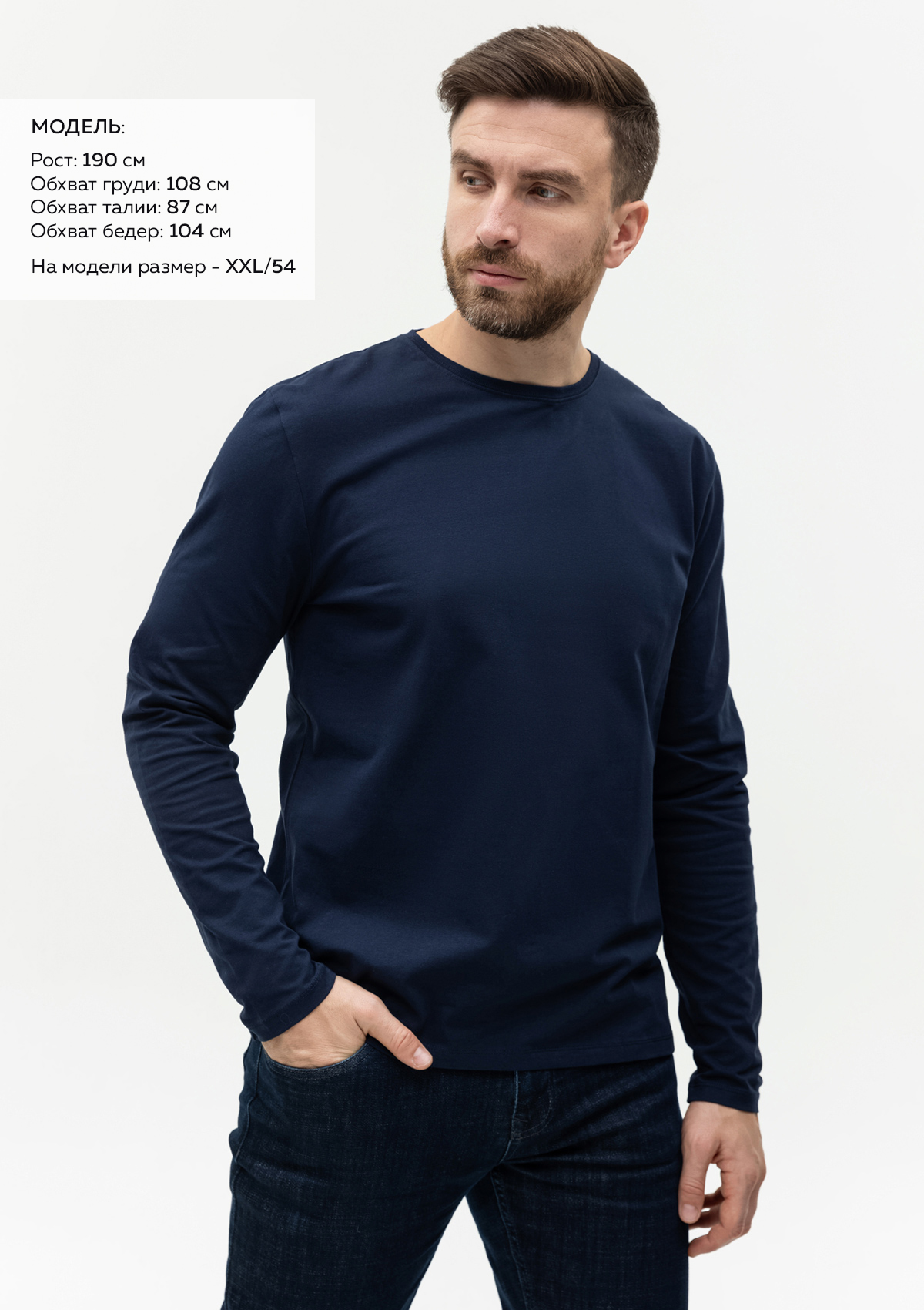 Размер на модели: XXL/54. Параметры модели: рост 190 см.; обхват груди 108 см.; обхват талии 87 см.; обхват бедер 104 см.