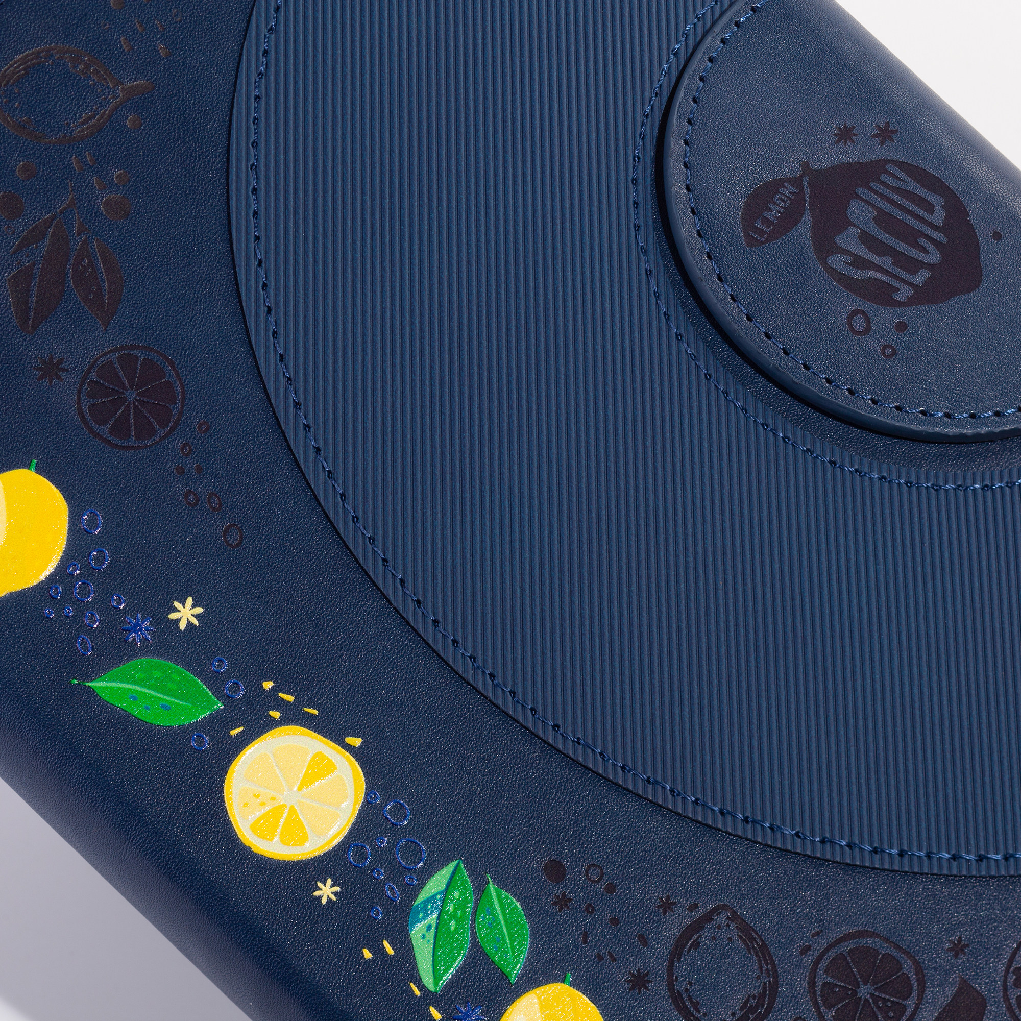 Новинка в коллекции Wownote с оригинальной сшивкой под магнитный хлястик. Основной материал гладкий мелкозернистый с глянцем, имитирует фактуру натуральной кожи. Матовая вставка с диагональным направлением рисунка в тон основного материала. Большой магнитный хлястик, который можно использовать под нанесение.