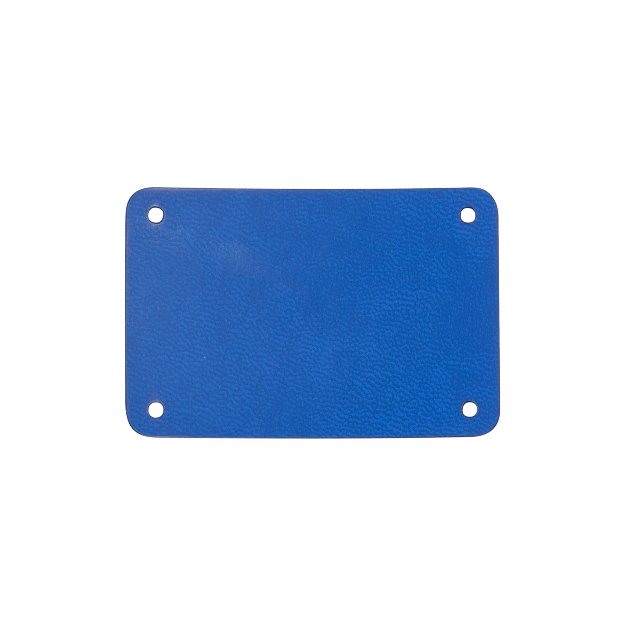 Шильд 4 х 6 см для кастомизации пледов и других изделий. Матовый материал с гладной фактурой и однородным цветом, подходит для тиснения и гравировки (CO). Установка производится на металлические хольнитены (заклепки) по углам.