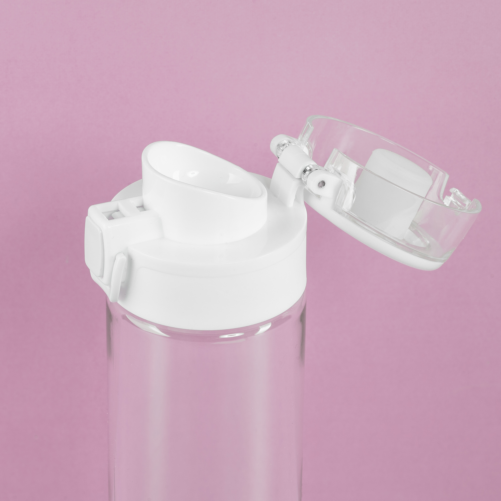 Объем 600 мл оптимален для занятий спортом и прогулок. Комфортный вес для взрослых и детей. В крышку встроена складная ручка.