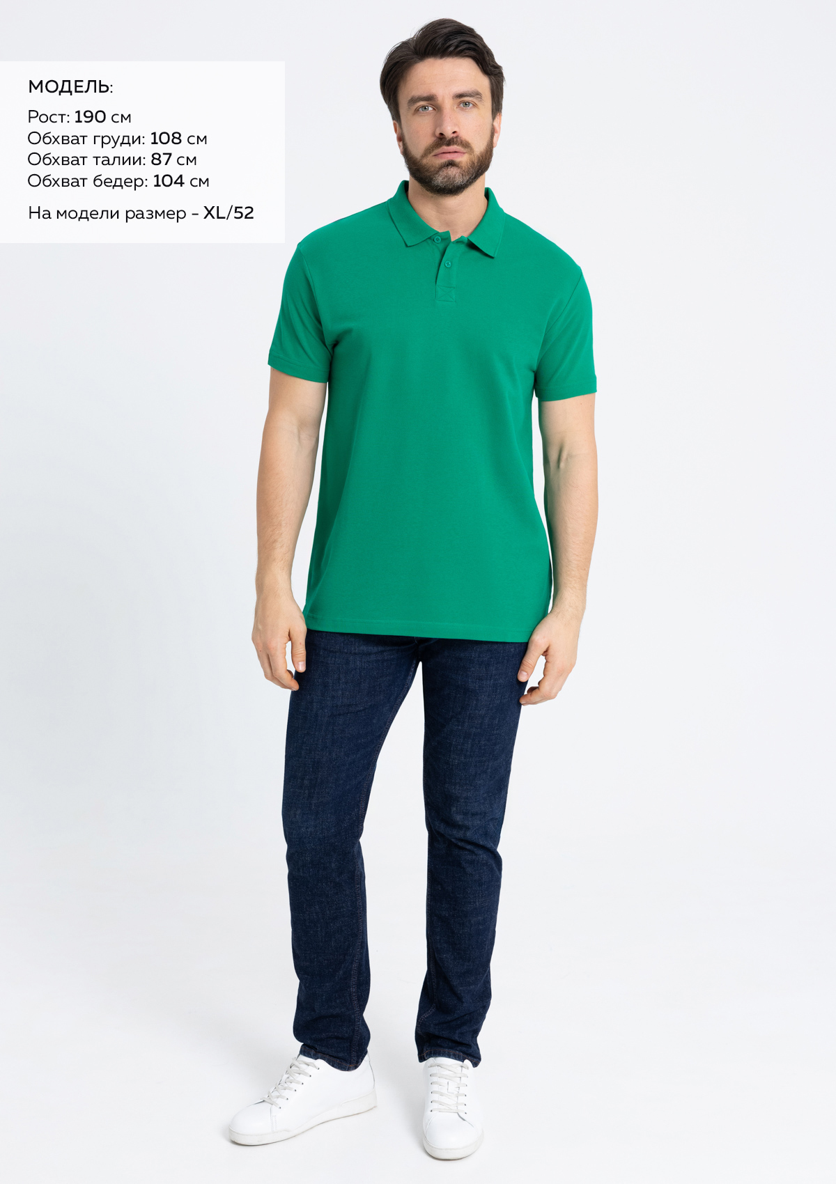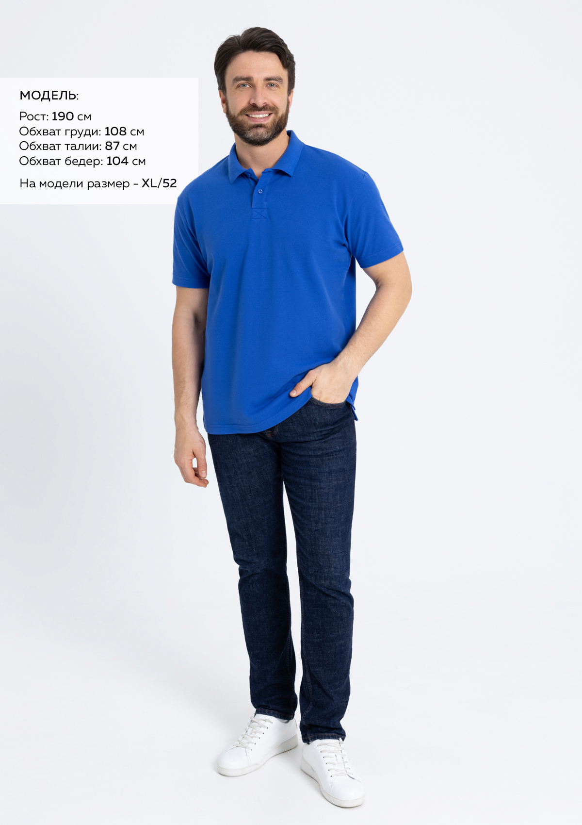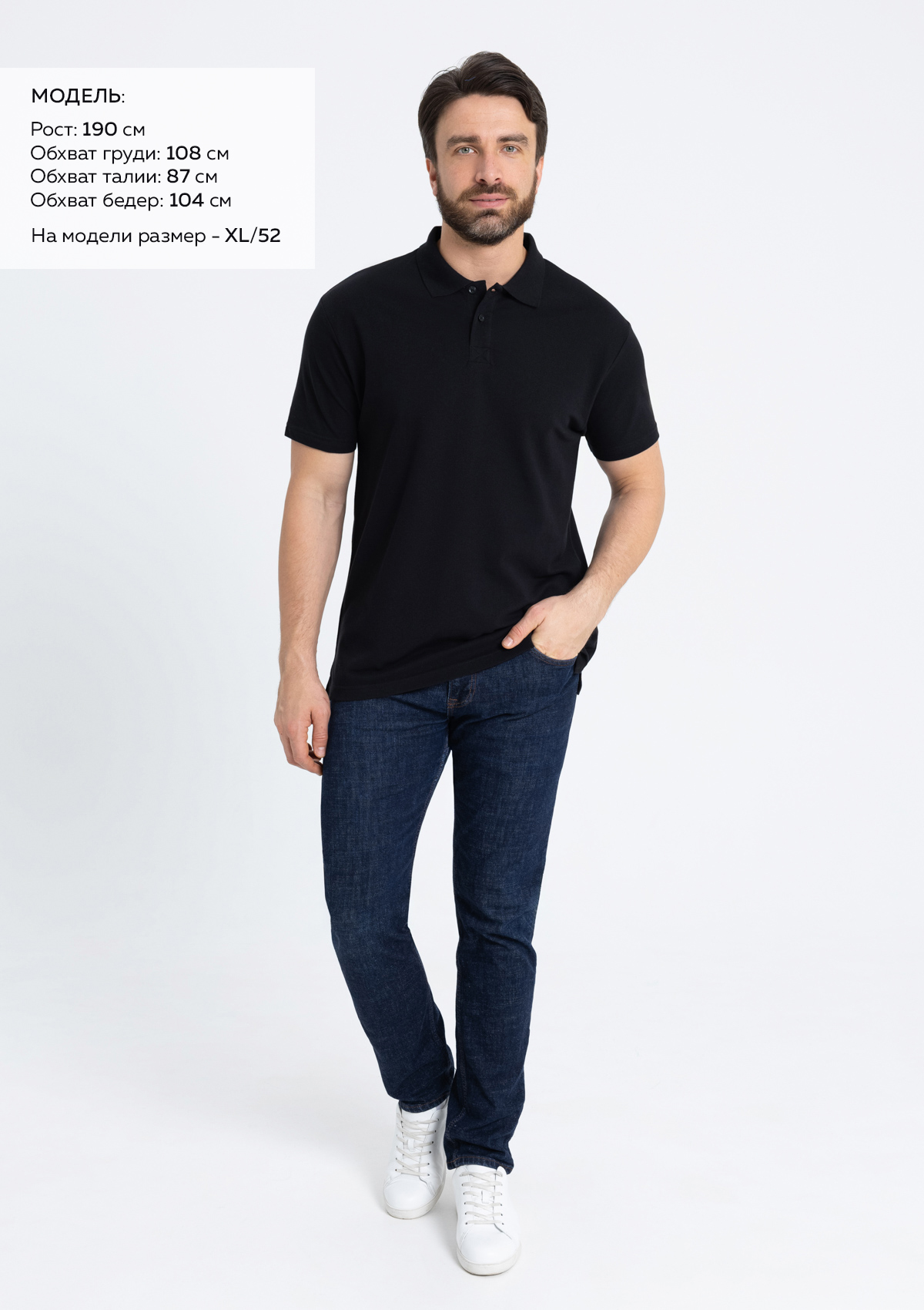 Размер на модели: XL/52. Параметры модели: рост 190 см.; обхват груди 108 см.; обхват талии 87 см.; обхват бедер 104 см.