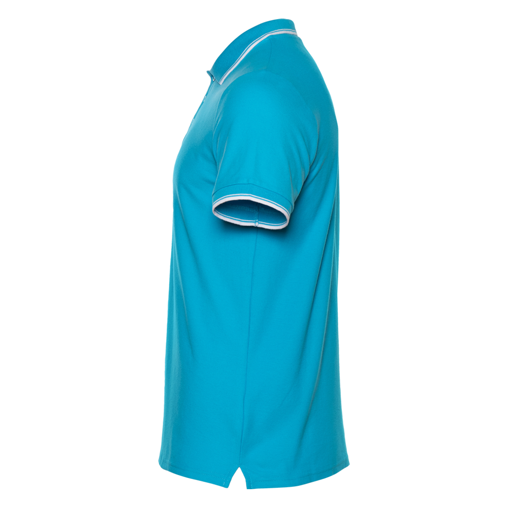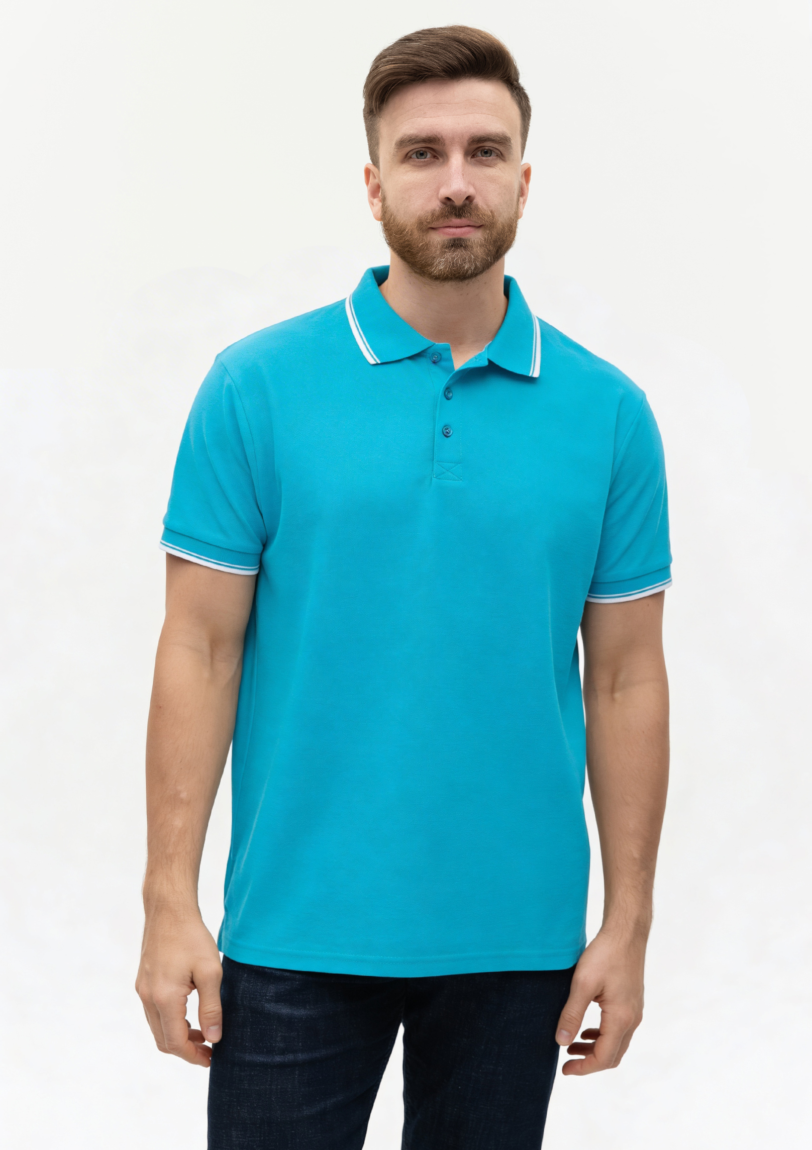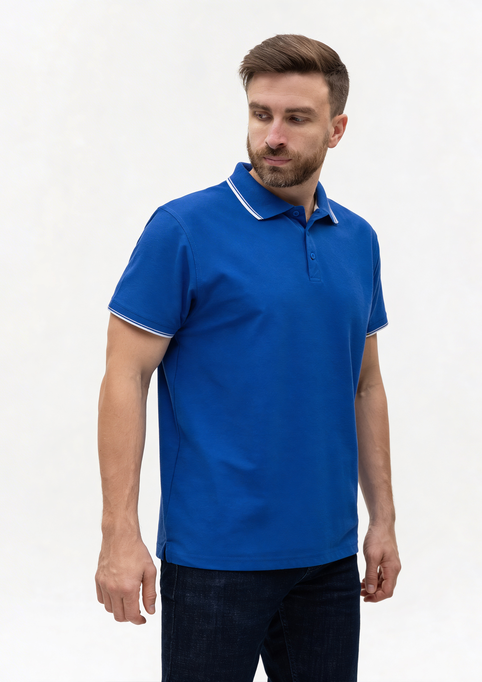 Поло выполнено из пластичного и приятного к телу трикотажного пике (80% хлопок 20% полиэстер). Ткань хорошо пропускает воздух и впитывает влагу. Благодаря добавлению синтетического волокна изделие практически не мнется.