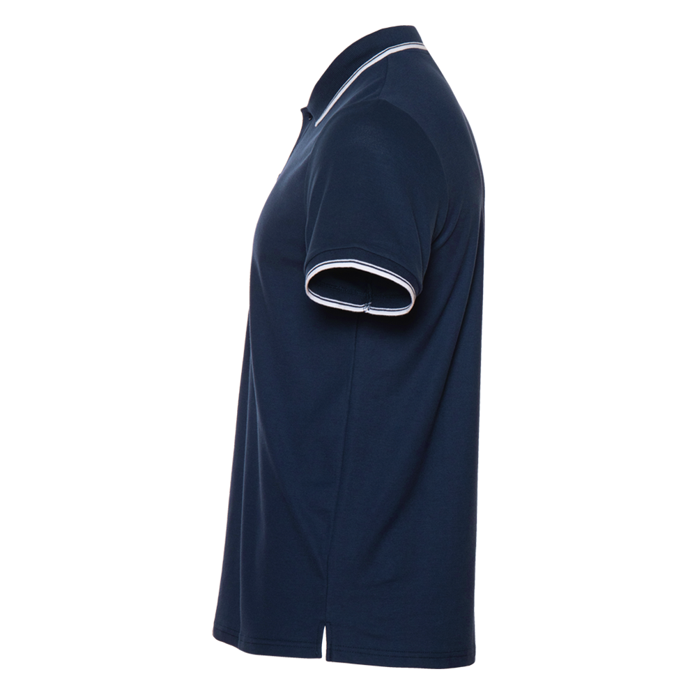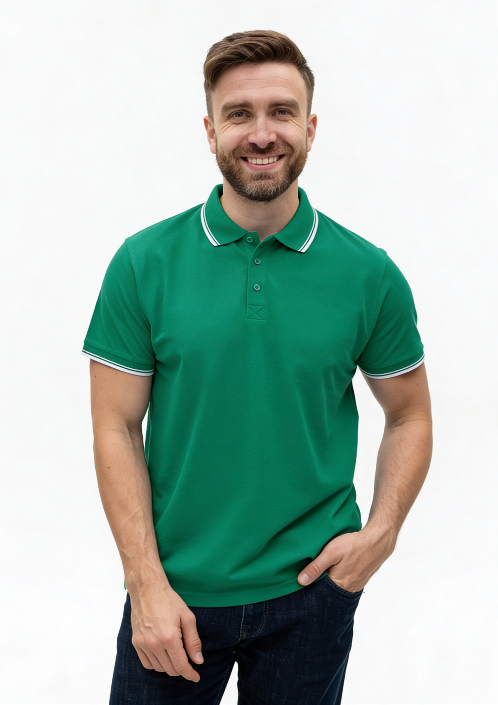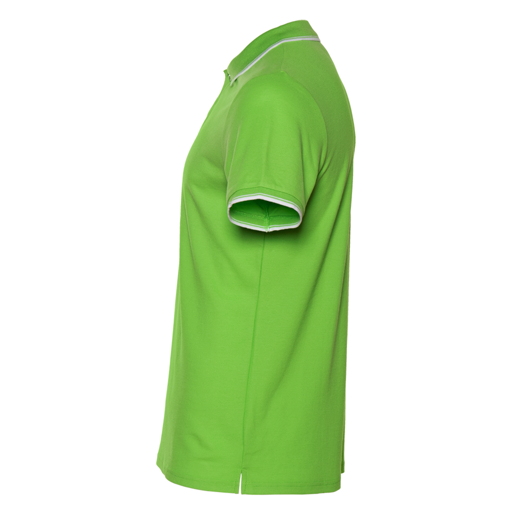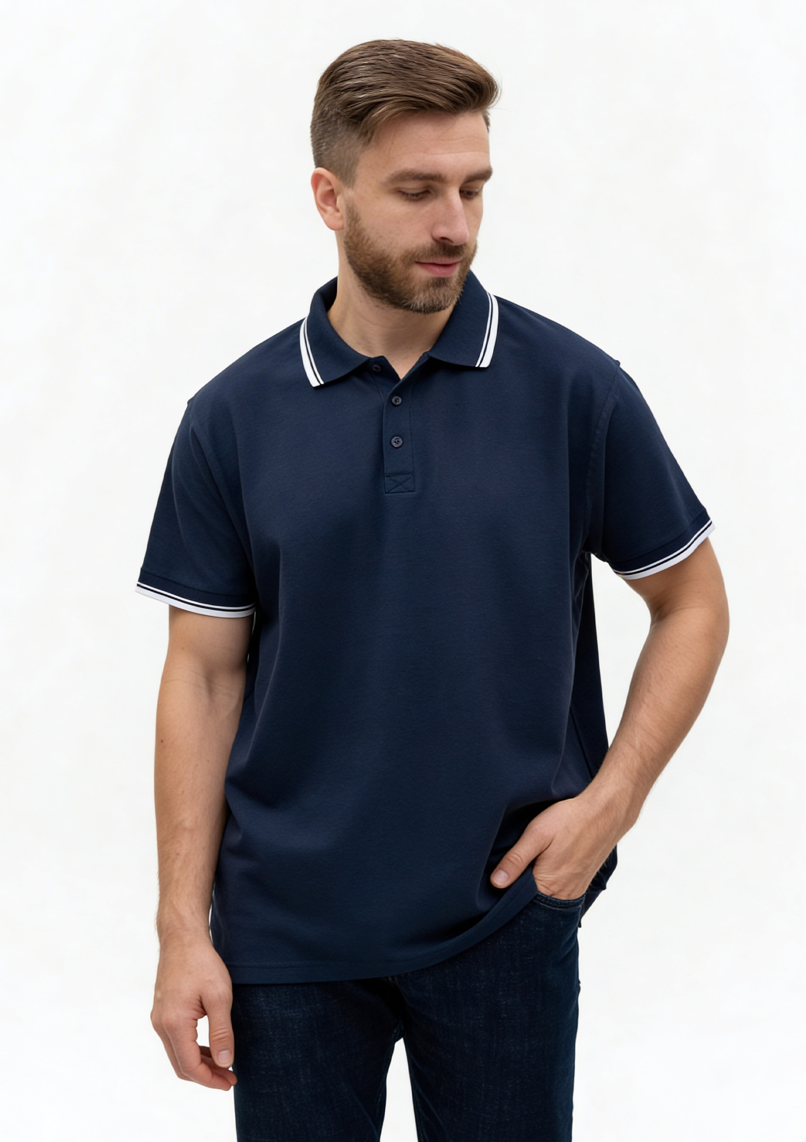 Поло выполнено из пластичного и приятного к телу трикотажного пике (80% хлопок 20% полиэстер). Ткань хорошо пропускает воздух и впитывает влагу. Благодаря добавлению синтетического волокна изделие практически не мнется.