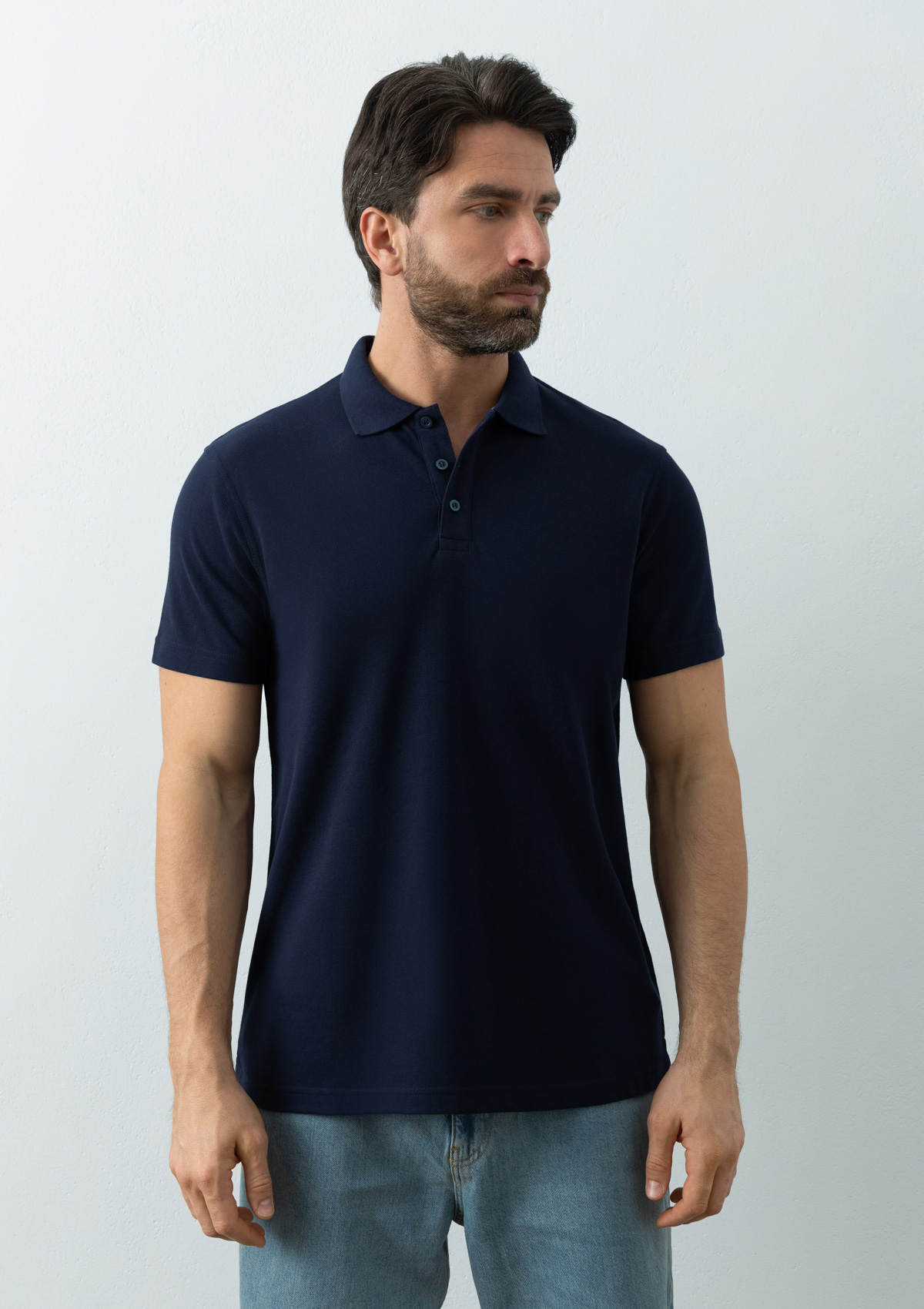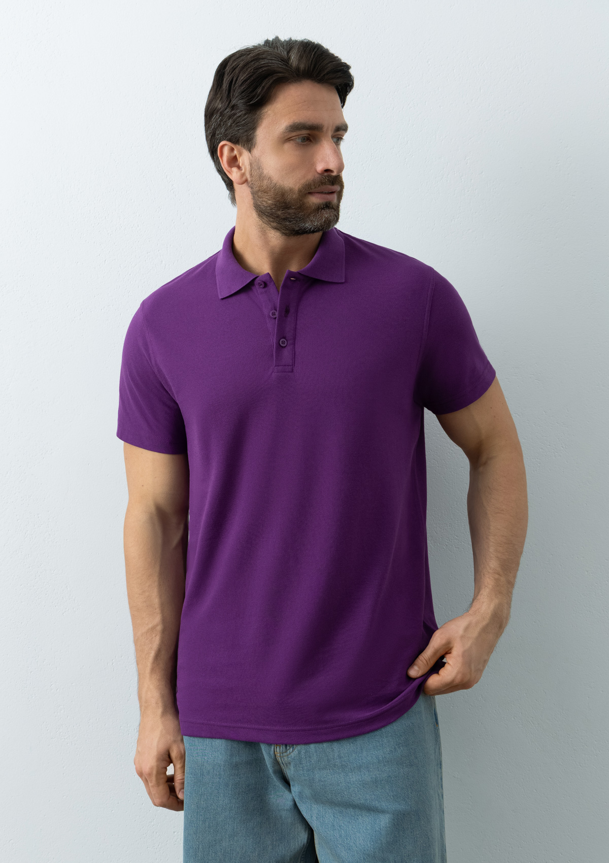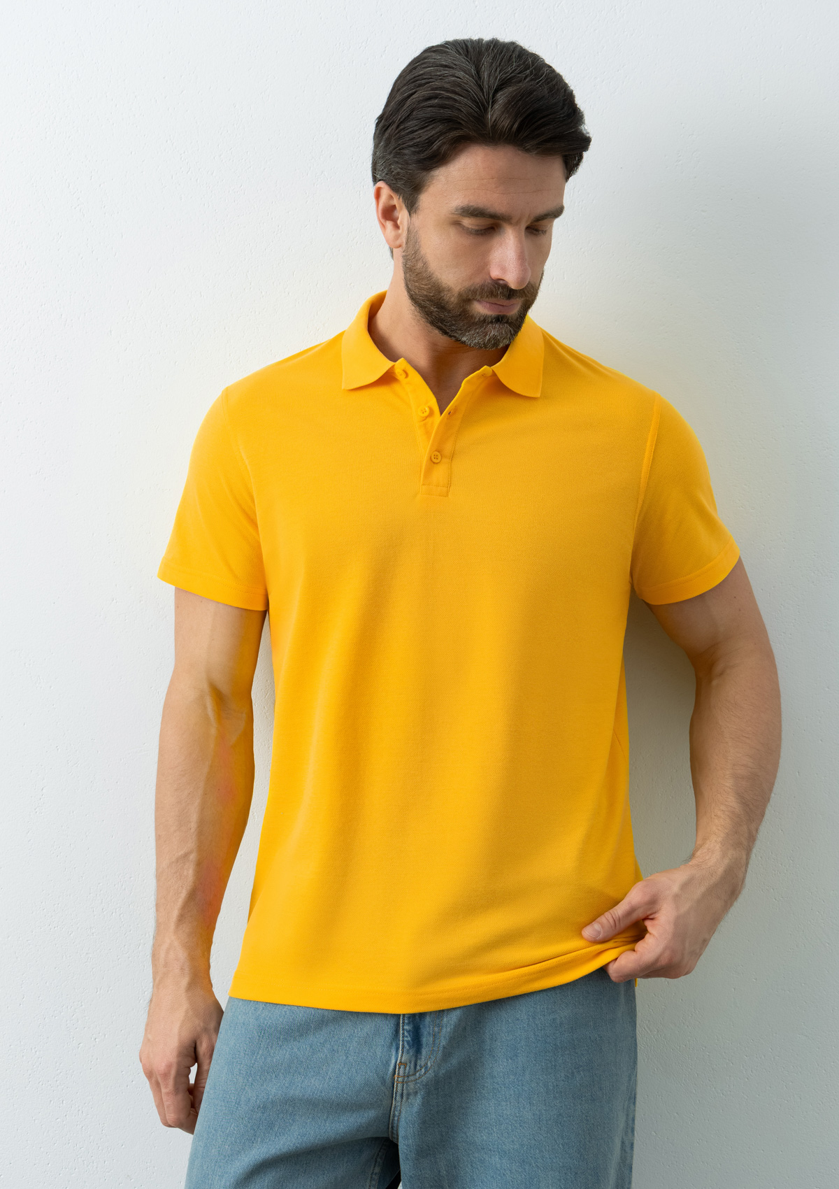 Поло выполнено из трикотажного пике с характерной фактурой. Износостойкое полотно имеет плотную и эластичную структуру, хорошо пропускает воздух и устойчиво к истиранию.