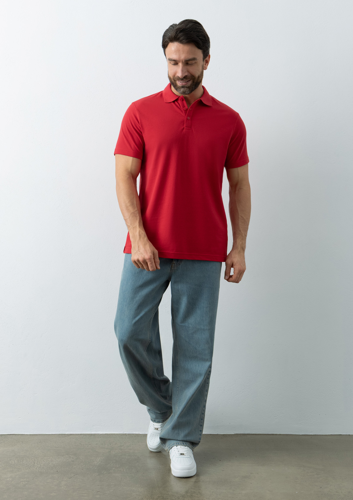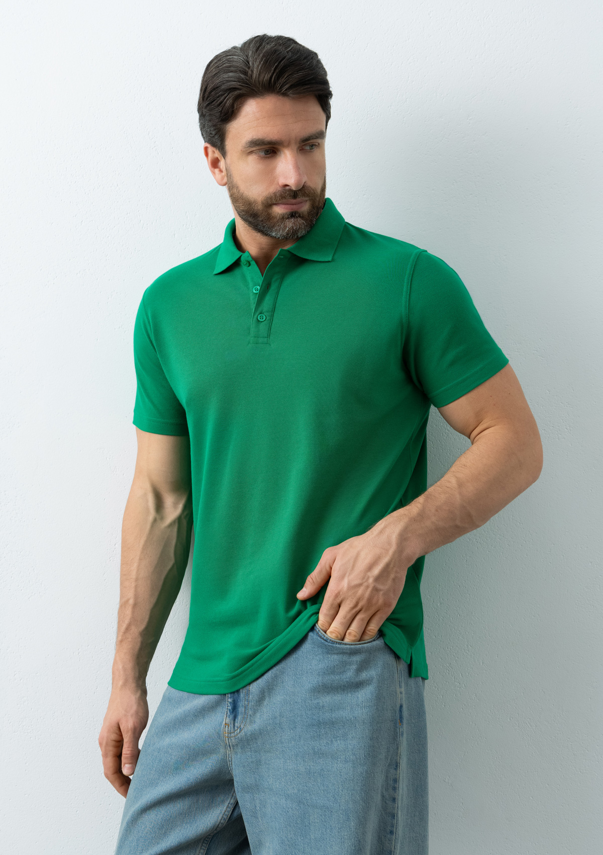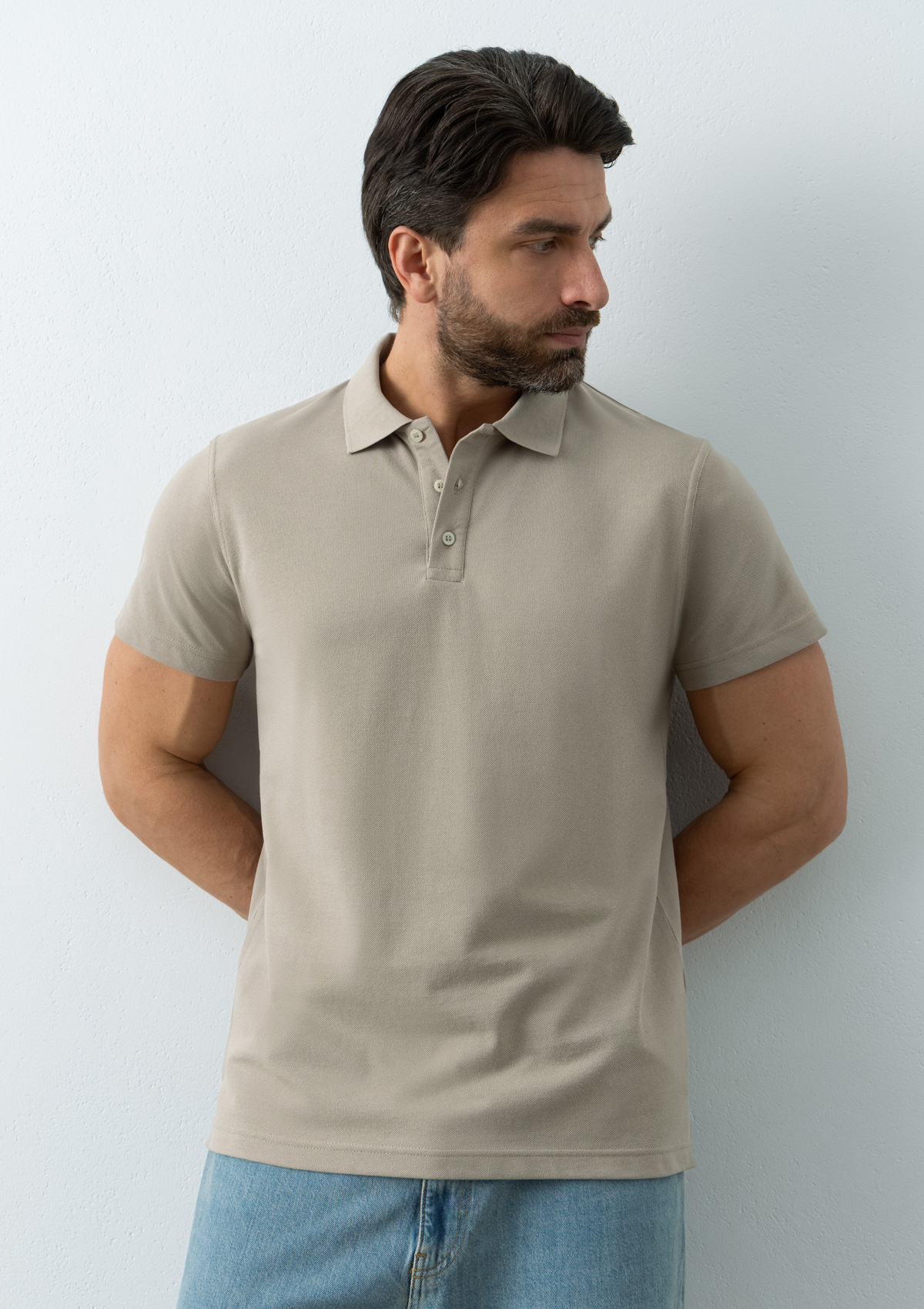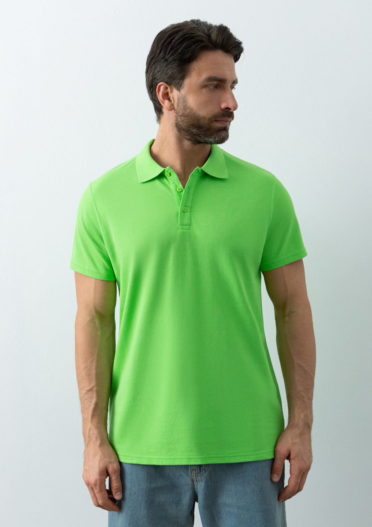 Поло выполнено из трикотажного пике с характерной фактурой. Износостойкое полотно имеет плотную и эластичную структуру, хорошо пропускает воздух и устойчиво к истиранию.