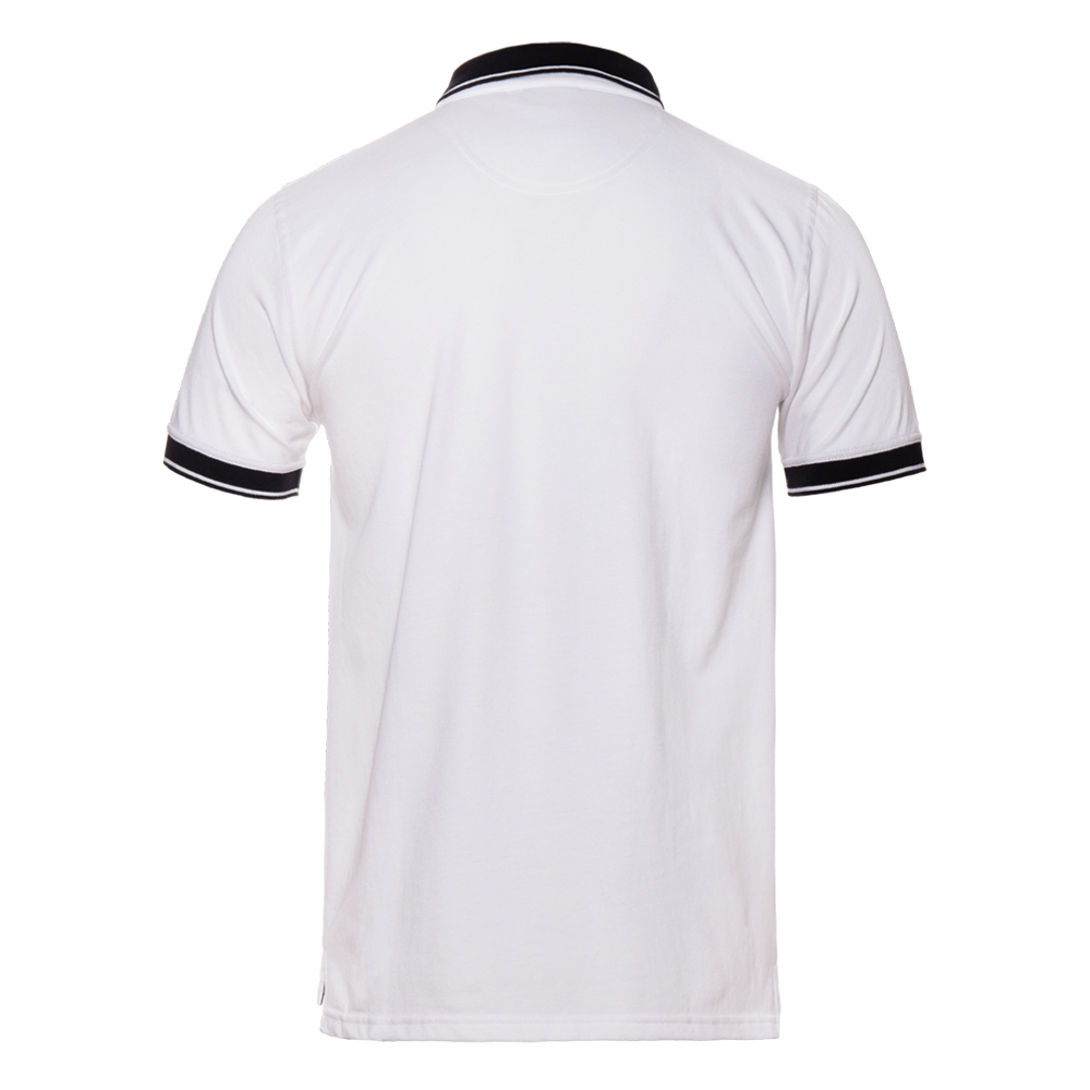 Мужская рубашка поло прямого силуэта с контрастным отложным воротником и манжетом, втачным коротким рукавом и застежкой на пуговицы. Асимметричный крой гарантирует свободу движения и защиту от продувания ветром.