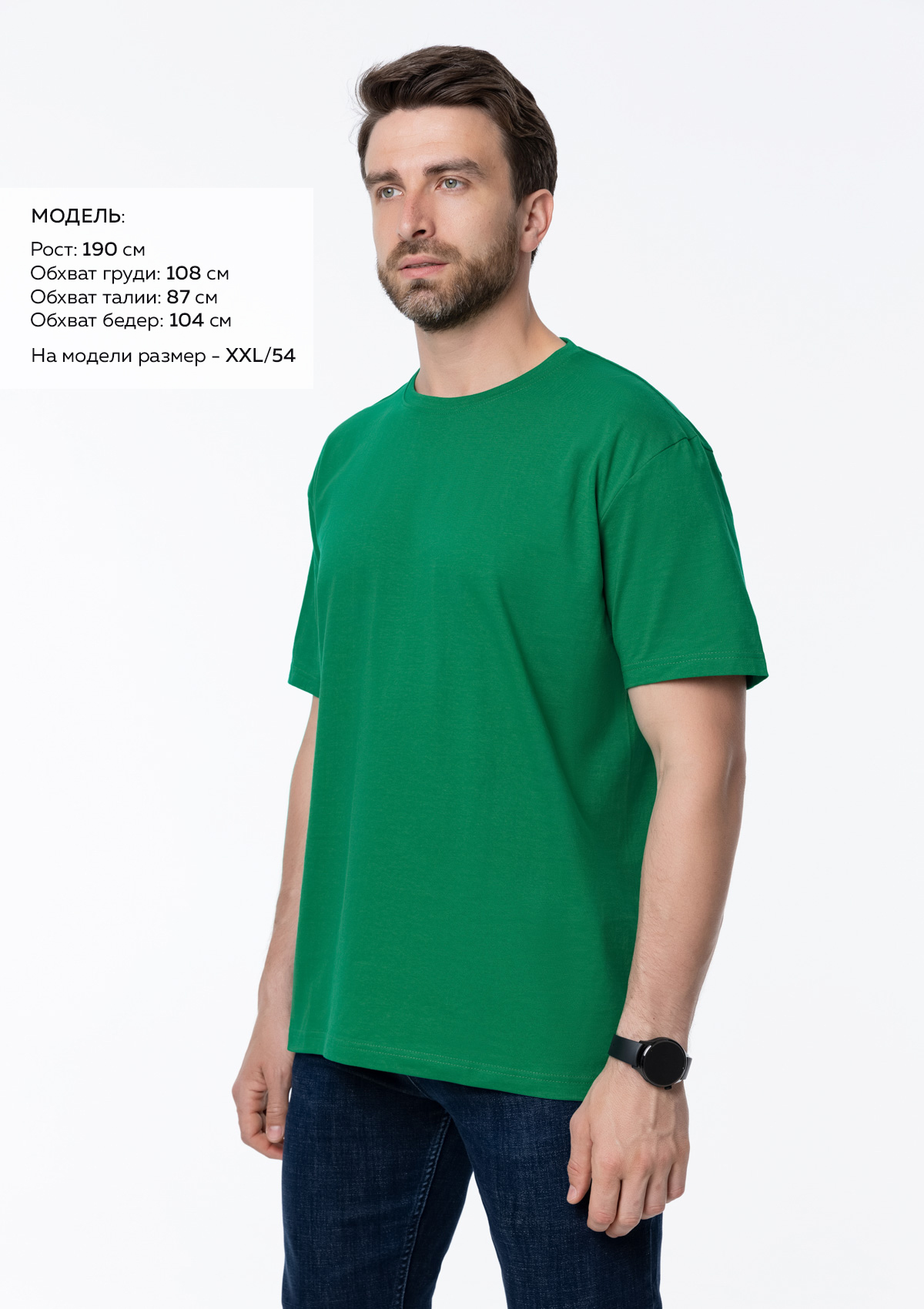 Размер мужской футболки: XXL/54. Параметры модели: рост 190 см.; обхват груди 108 см.; обхват талии 87 см.; обхват бедер 104 см.