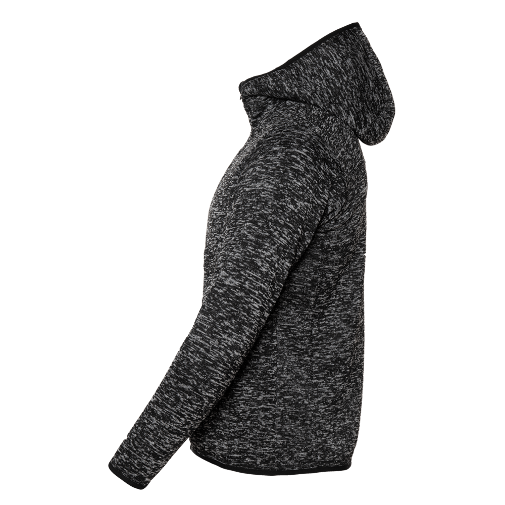Утеплённая толстовка выполнена из вязаного флиса в цвете меланж. Невесомый материал обладает высокой степенью воздухопроницаемости и гигроскопичности, не требует особого ухода.
