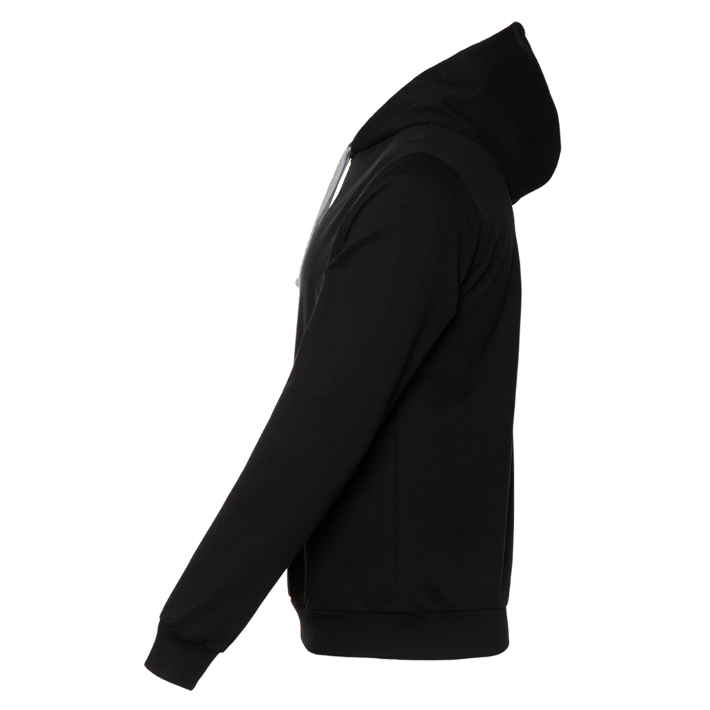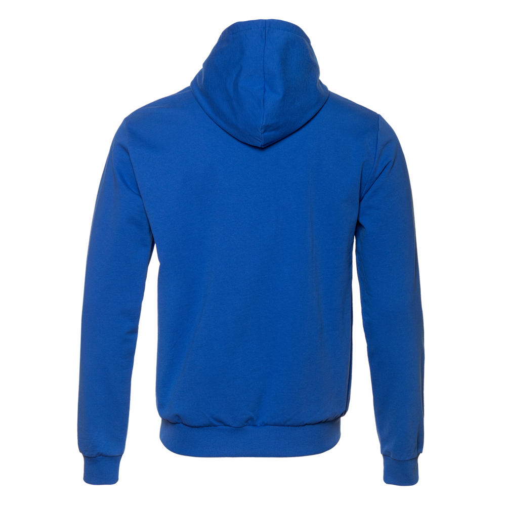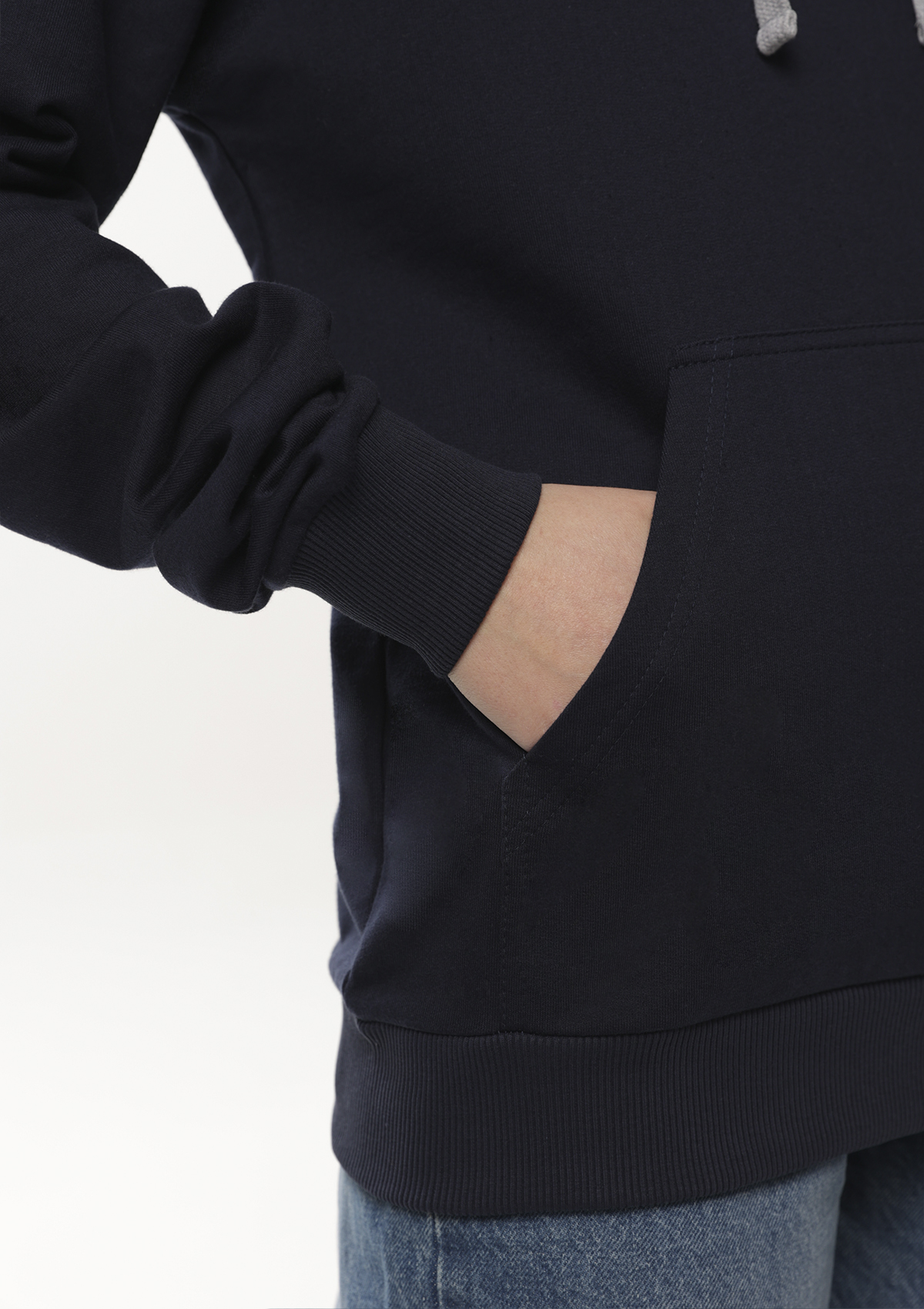 Толстовка без начеса выполнена из мягкого футера (100% хлопок), подклад – кулирная гладь (100% хлопок). Оба материала устойчивы к механическому воздействию и вытяжению, практически не поддаются пилингу.