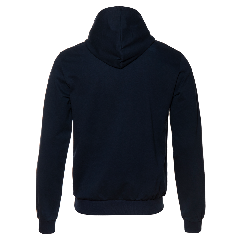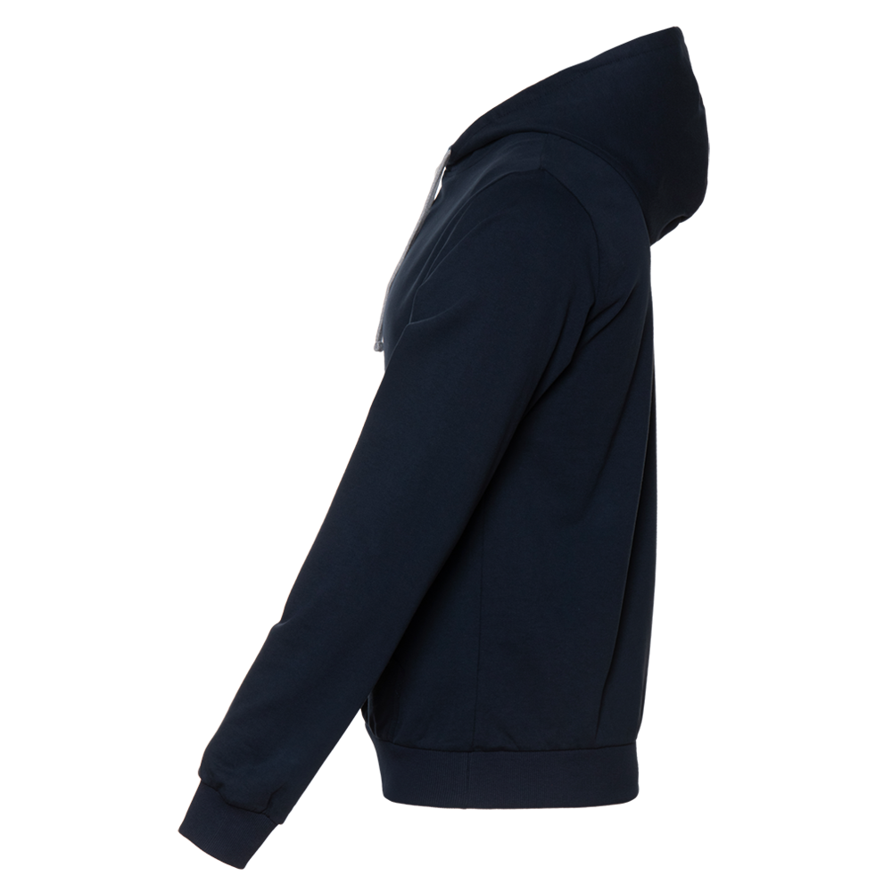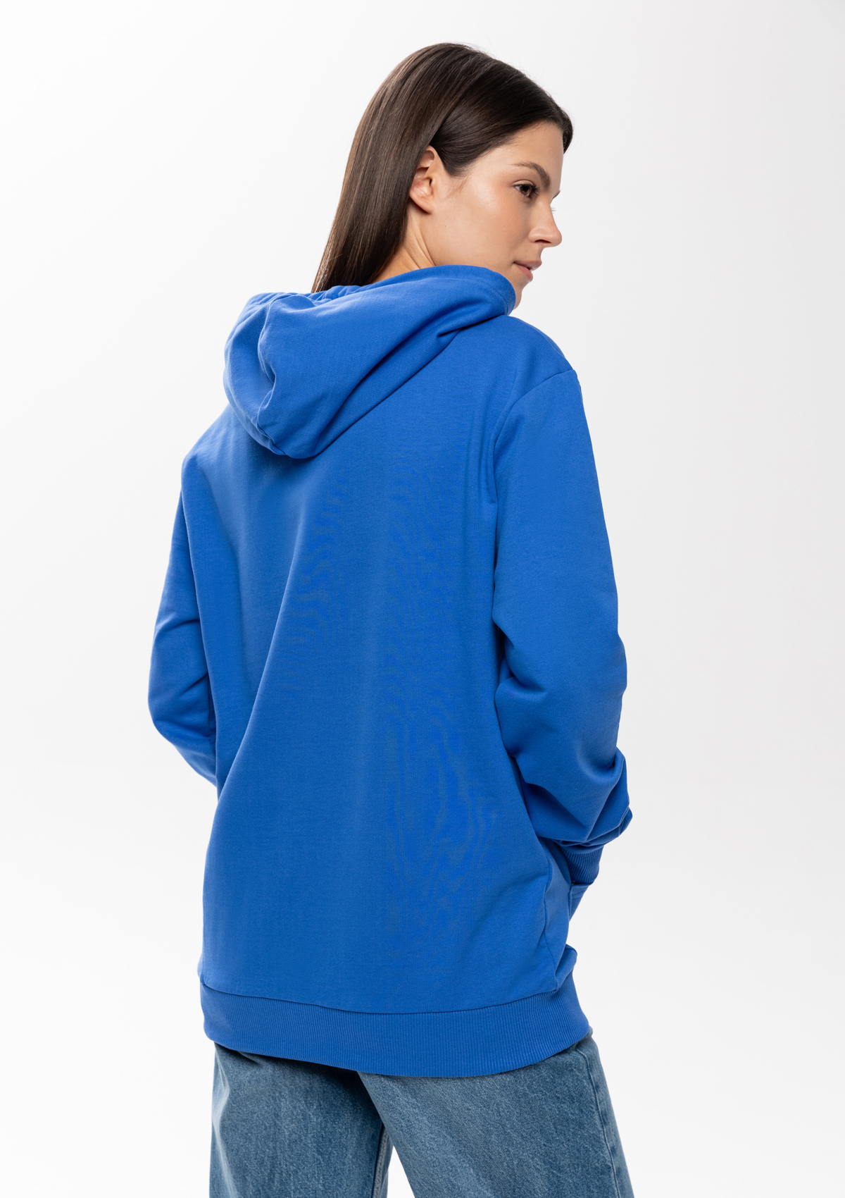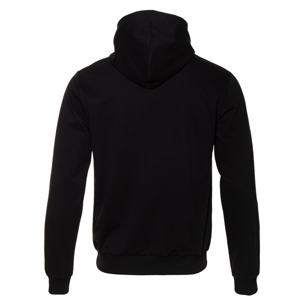 Толстовка без начеса выполнена из мягкого футера (100% хлопок), подклад – кулирная гладь (100% хлопок). Оба материала устойчивы к механическому воздействию и вытяжению, практически не поддаются пилингу.