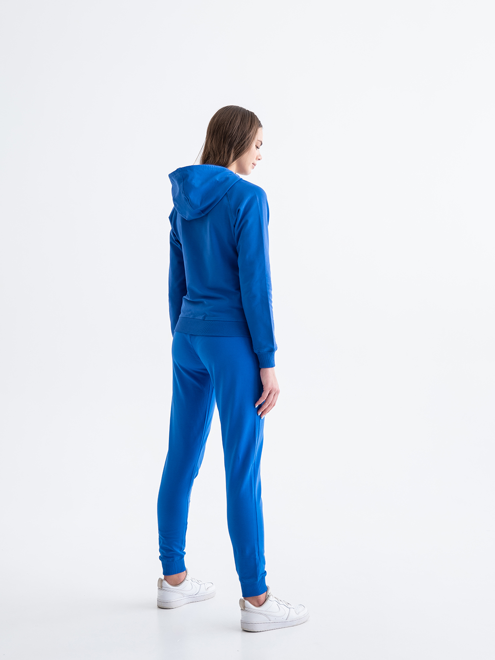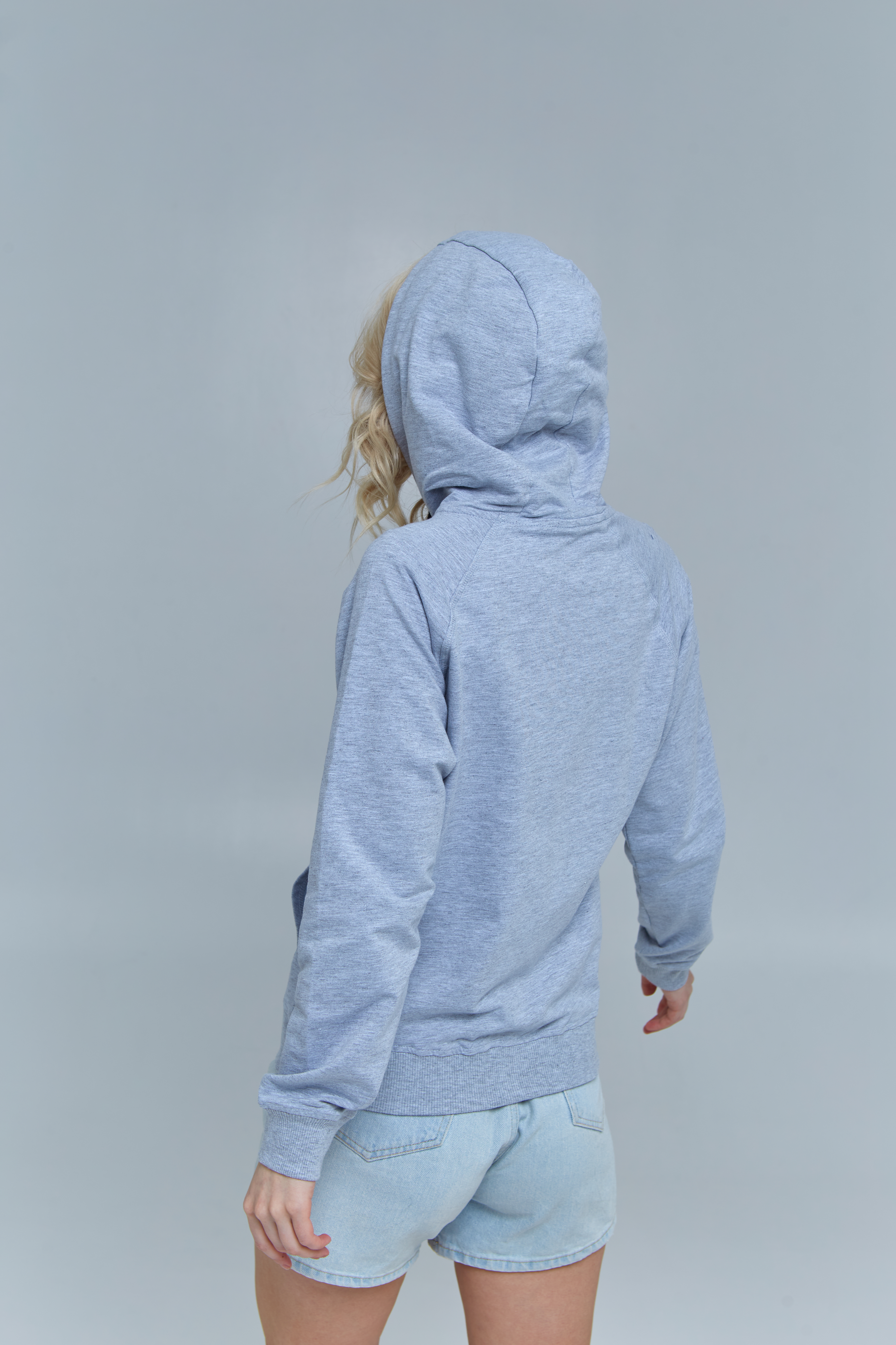 Женская олимпийка прямого силуэта с капюшоном комфортной глубины, рукавом-реглан, накладным карманом и застежкой на контрастную молнию. Капюшон дополнен шнурком для регулирования прилегания, манжет и низ изделия оформлены широкой эластичной резинкой.