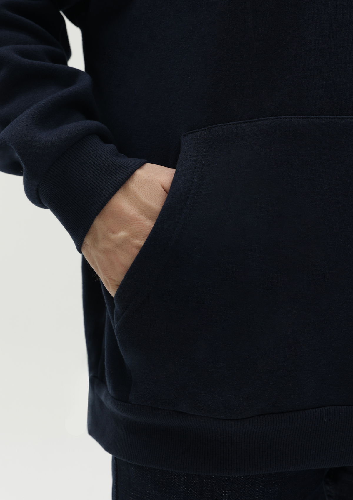 Толстовка выполнена из мягкого и плотного хлопкового футера 3-х нитка с фактурной изнанкой. Благодаря добавлению прочного эластичного полиэстера материал хорошо сохраняет форму и цвет.