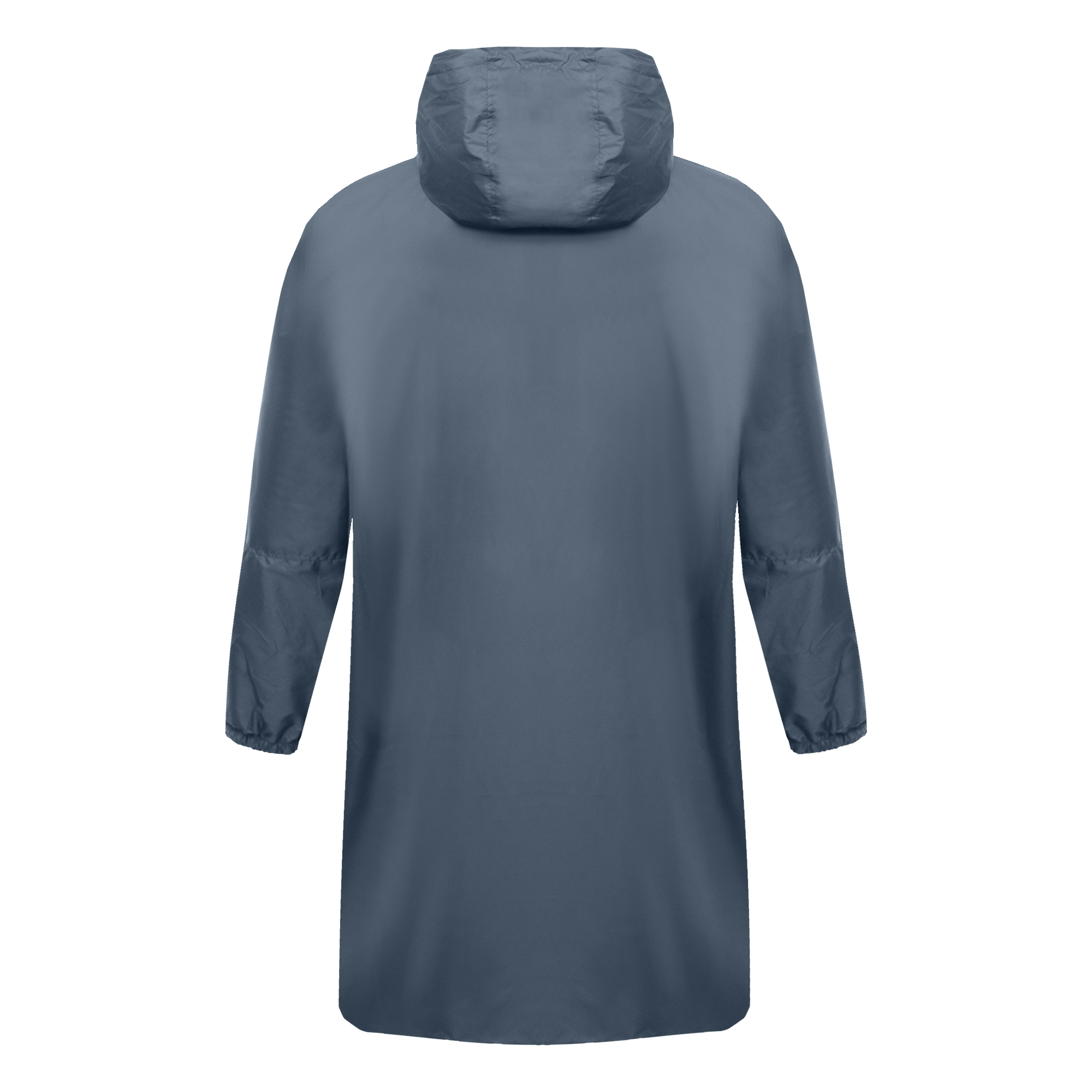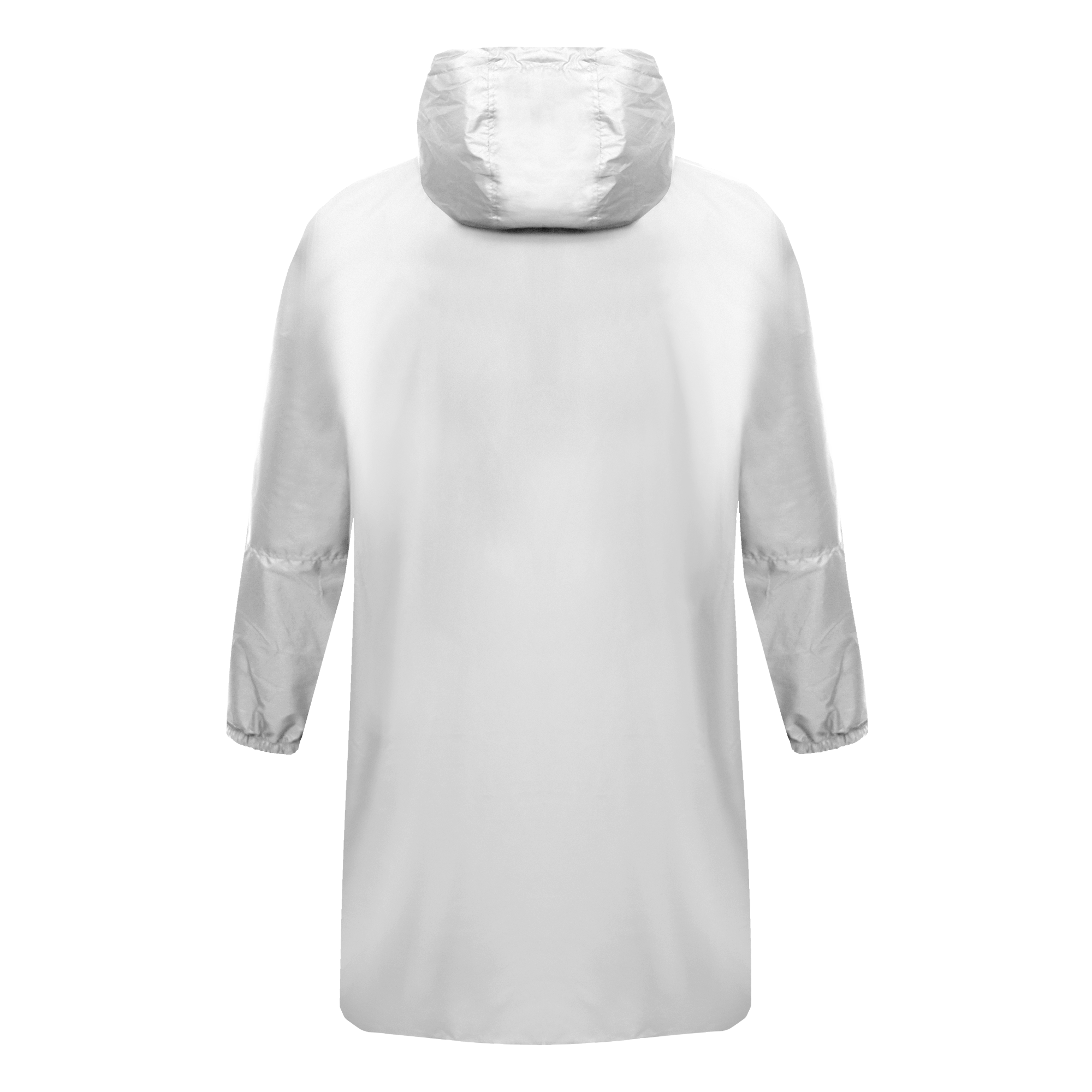 Цельнокроеный дождевик прямого силуэта со спущенным плечом, застежкой на молнию и глубоким прорезным карманом. Для дополнительной защиты от ветра и дождя капюшон дополнен кулисой с резинкой на фиксаторе, а манжет рукава укреплен эластичной резинкой.